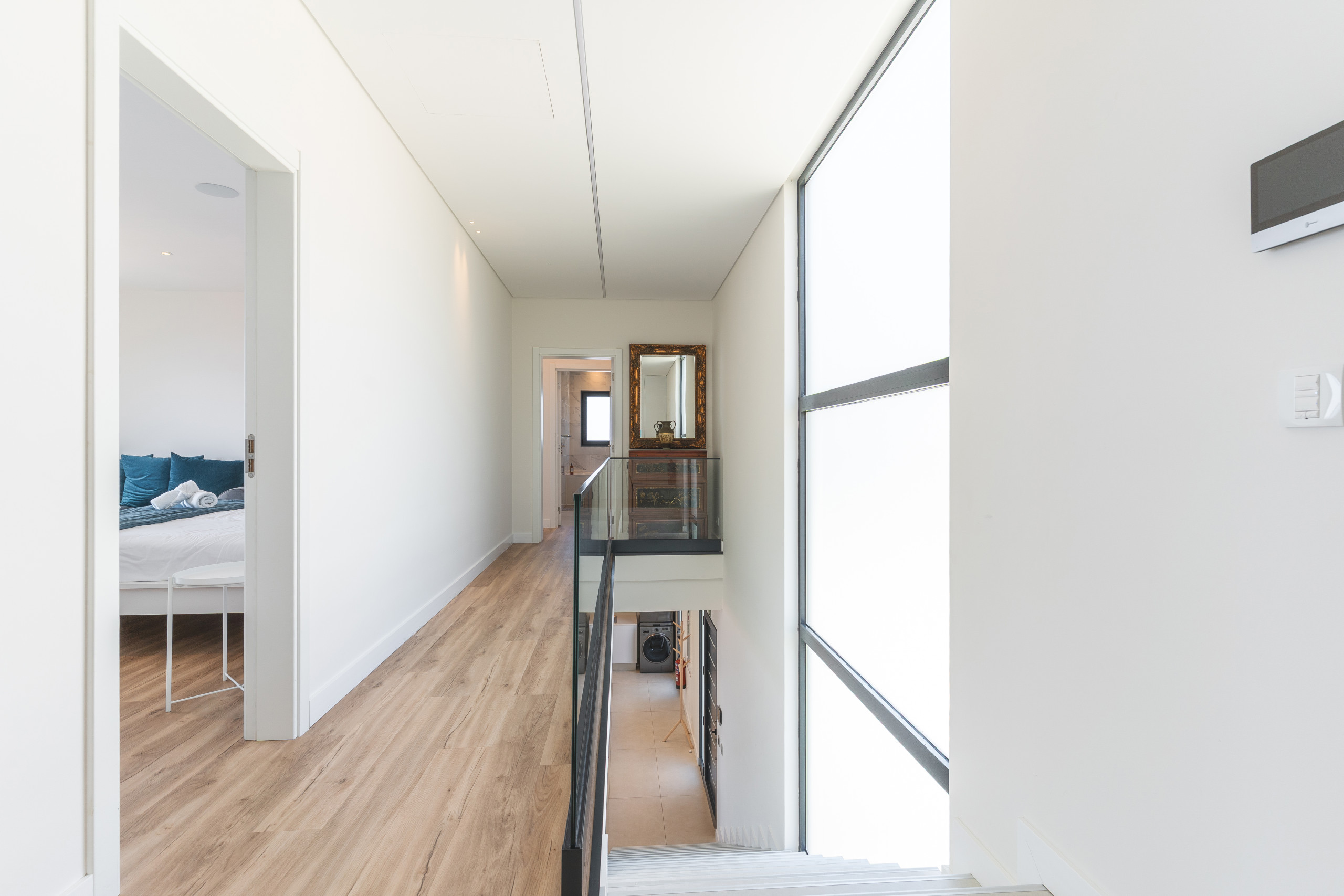 The fully equipped kitchen includes all essentials for cooking. The house is also equipped with a dryer and washing machine, and a hairdryer is available.