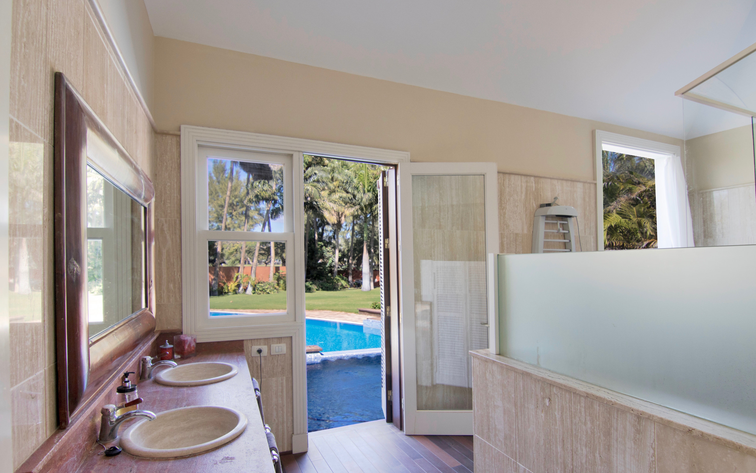 Independent design kitchen with Siematic furniture, Miele appliances, central island and dining room with views of the swimming pool.