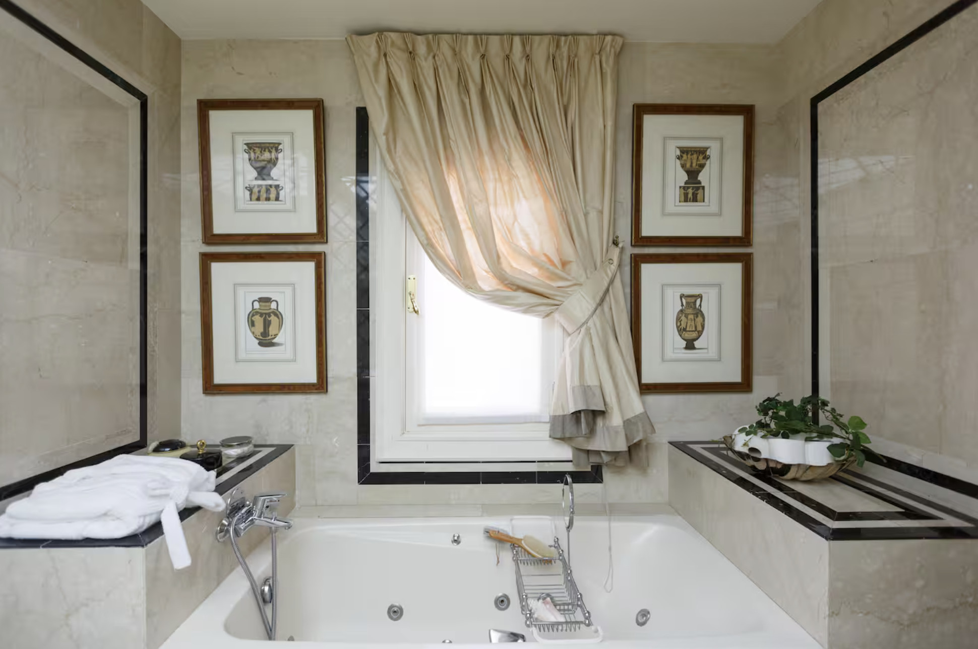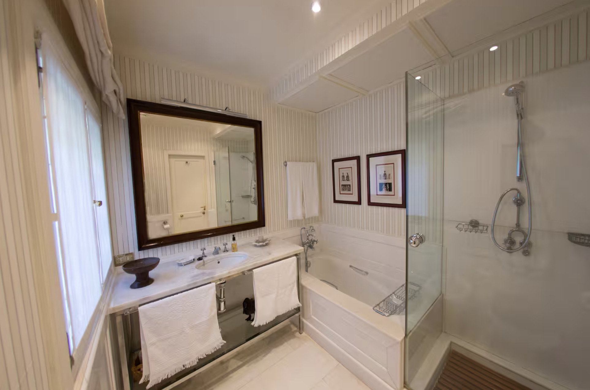 4 elegant suites with double bed and private bathroom with bathtub and shower,