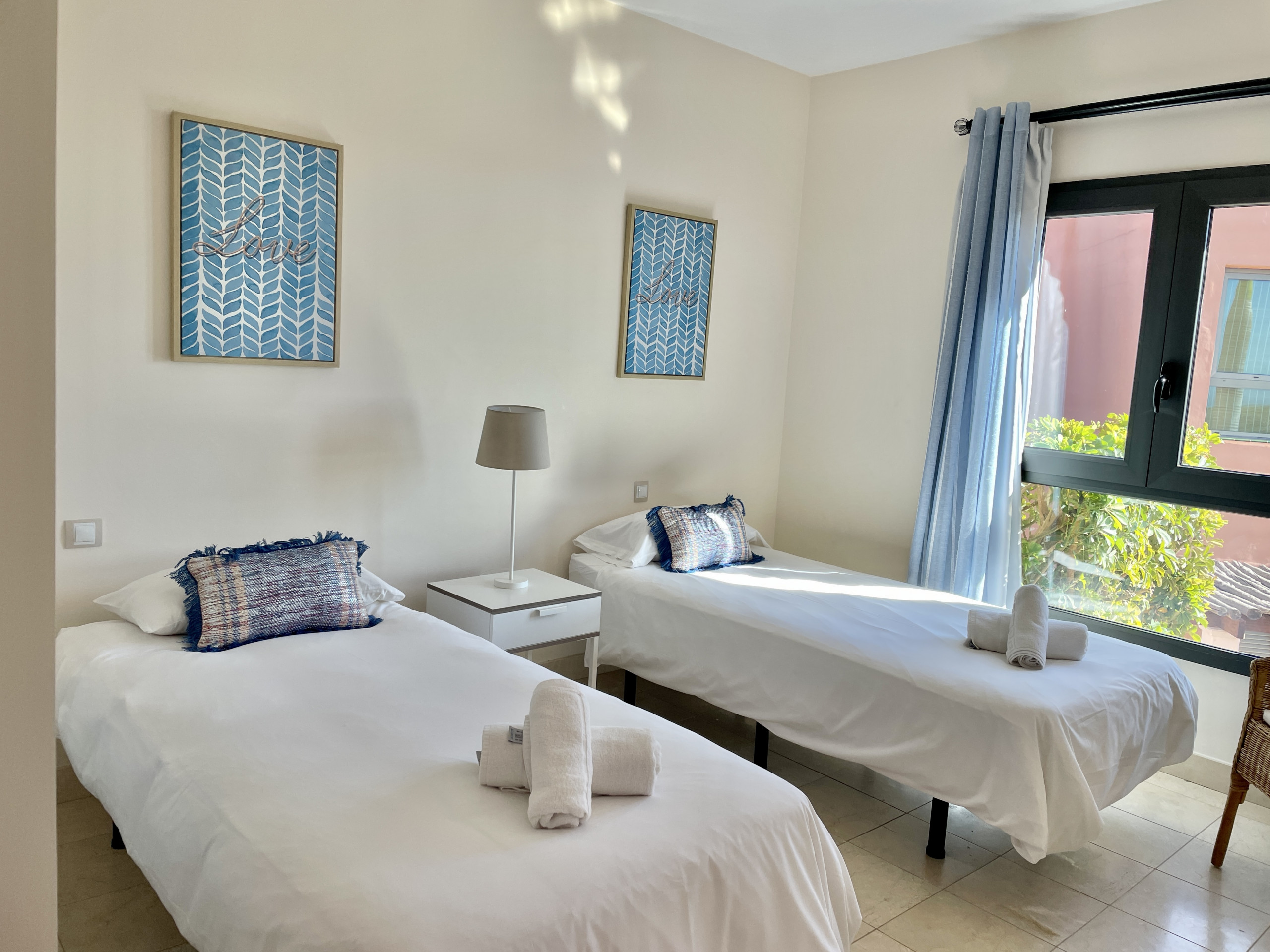 On this floor there are 2 bedrooms, one double with terrace and views to the golf course, private bathroom with shower and dressing room; the other bedroom has two single beds and a bathroom with outdoor bathtub.