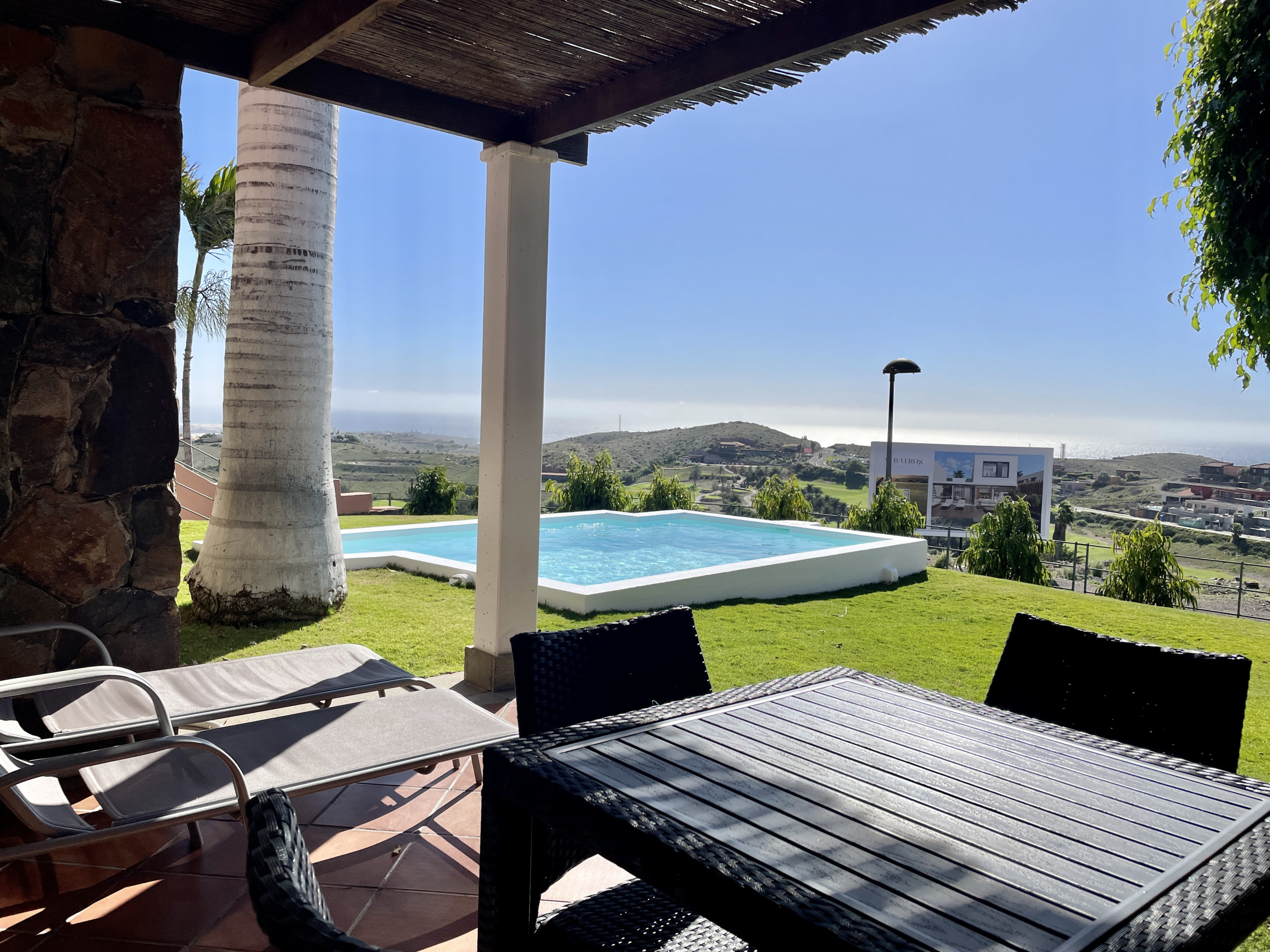 Our villa of 240 m² is located in Salobre Golf in a private urbanisation. It has 3 bedrooms and can accommodate up to 6 people. It has a private swimming pool with the possibility of air conditioning and beautiful views of the golf course, the mountains and the sea. On the other hand, the complex also has a large communal swimming pool.