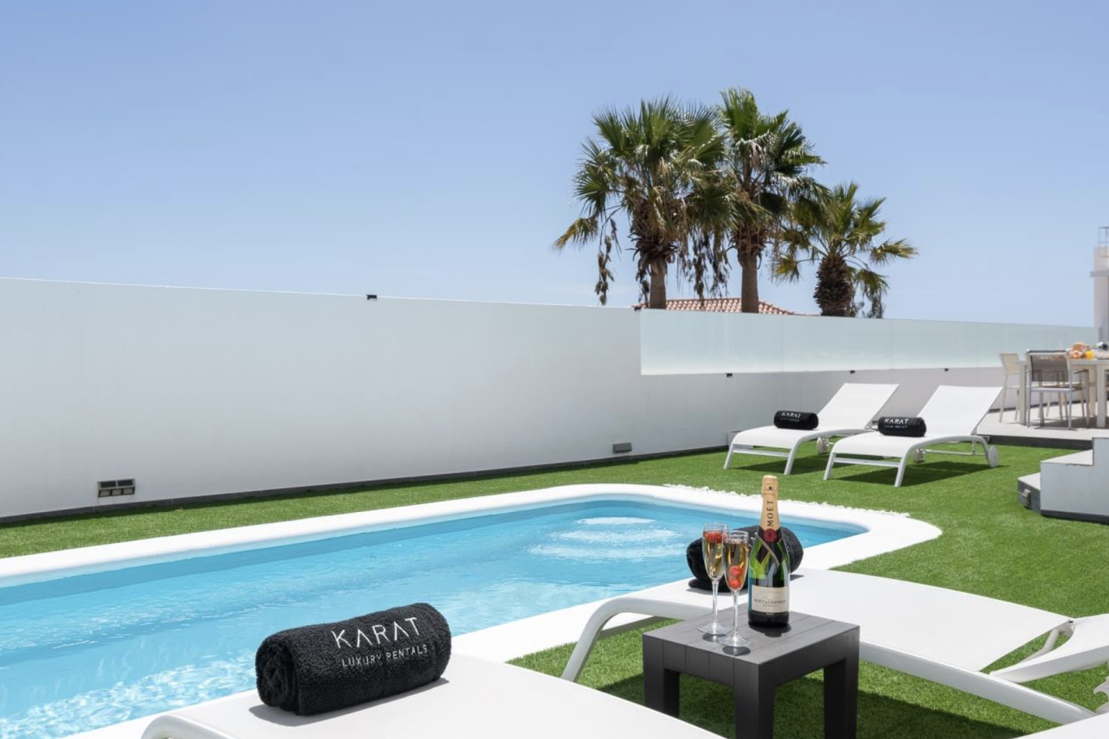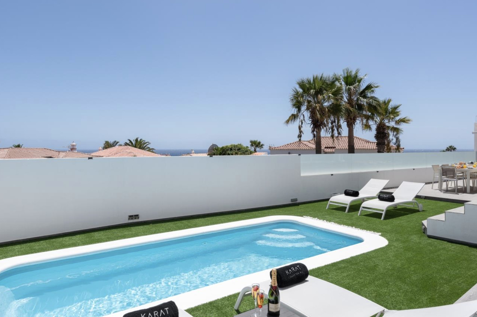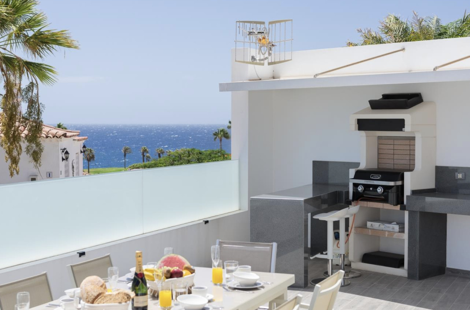 The exterior is pure inspiration: a heated private pool to enjoy throughout the year, barbecue area, solarium and a fully equipped terrace where time seems to stop under the sun of southern Tenerife.