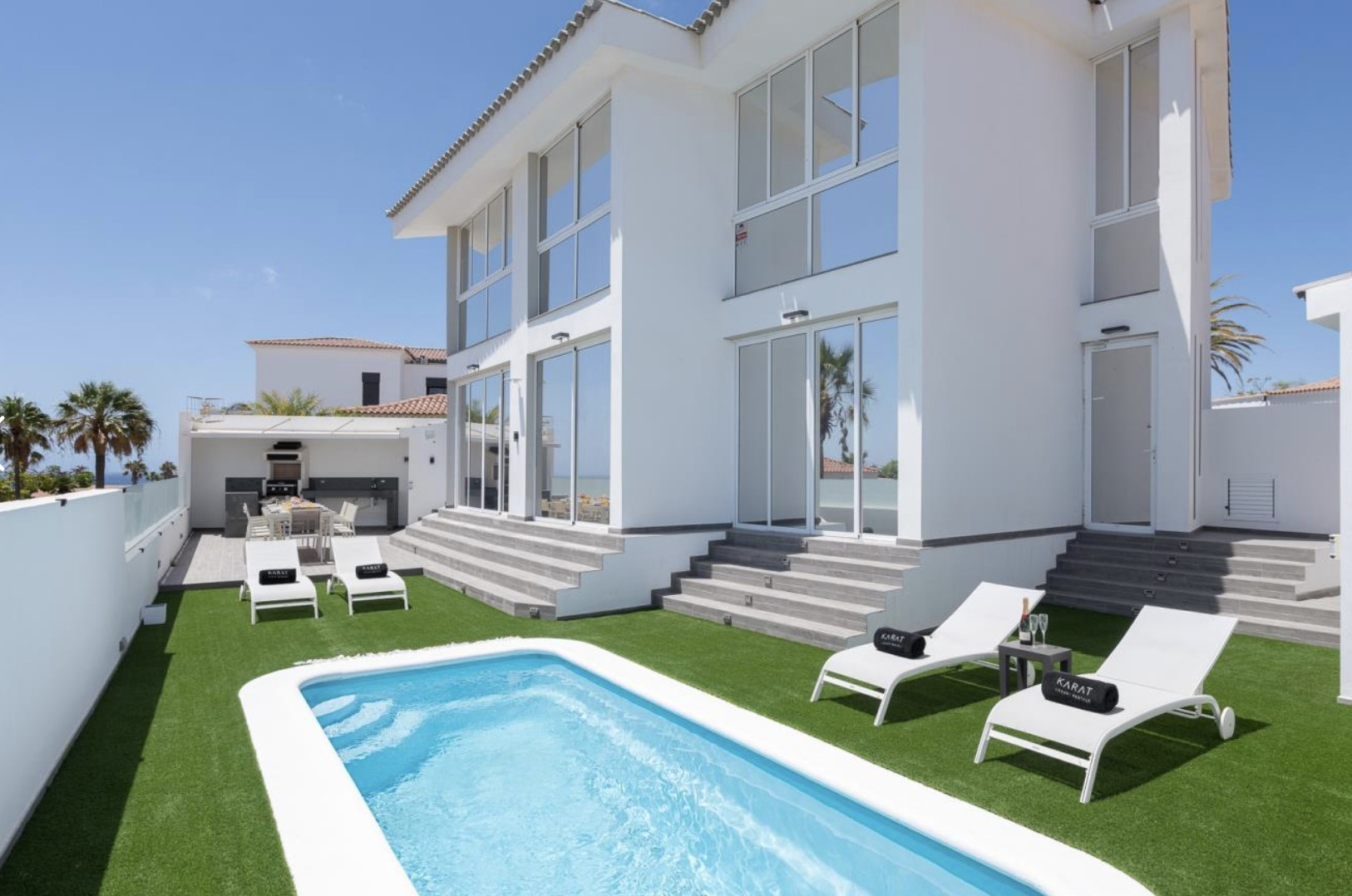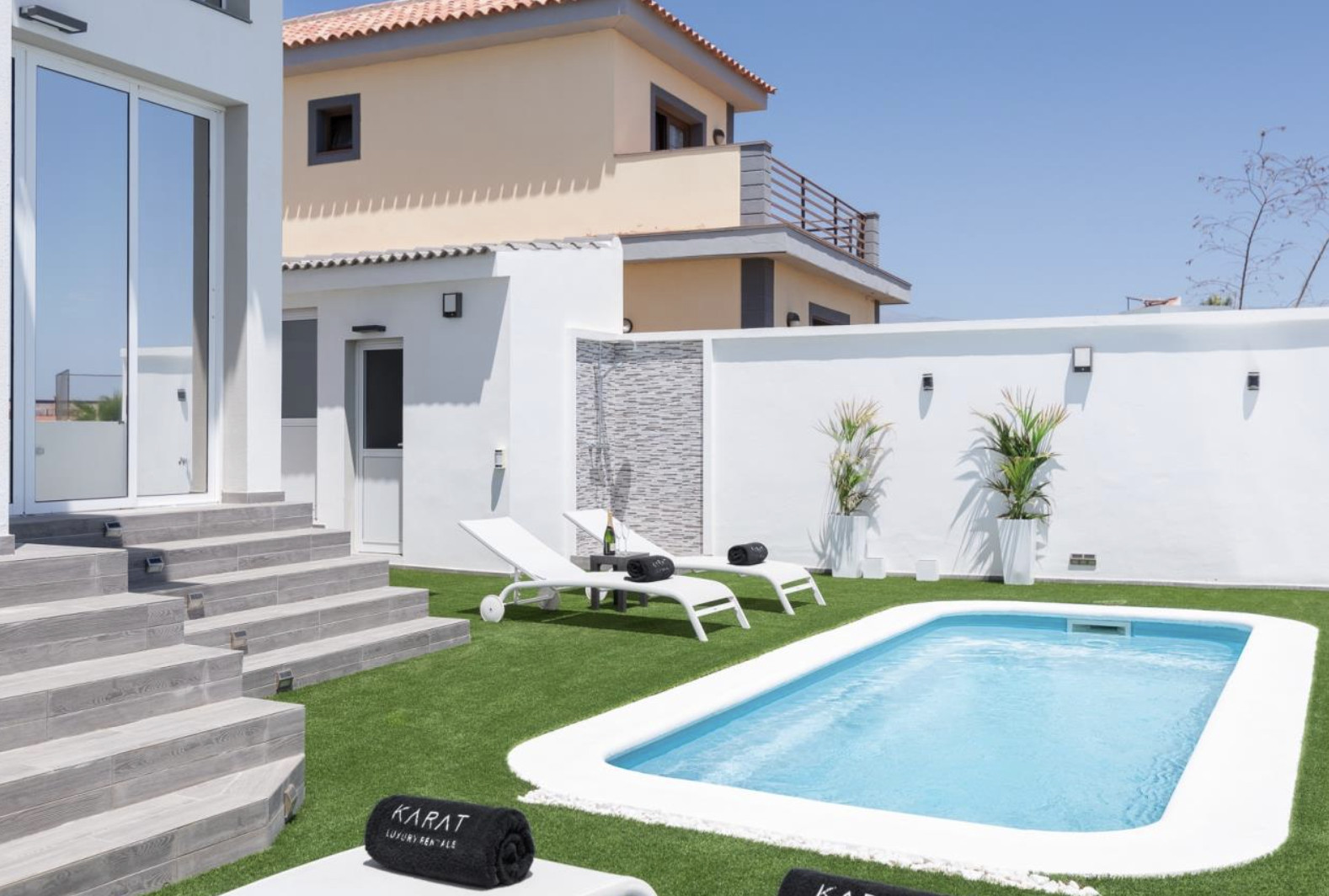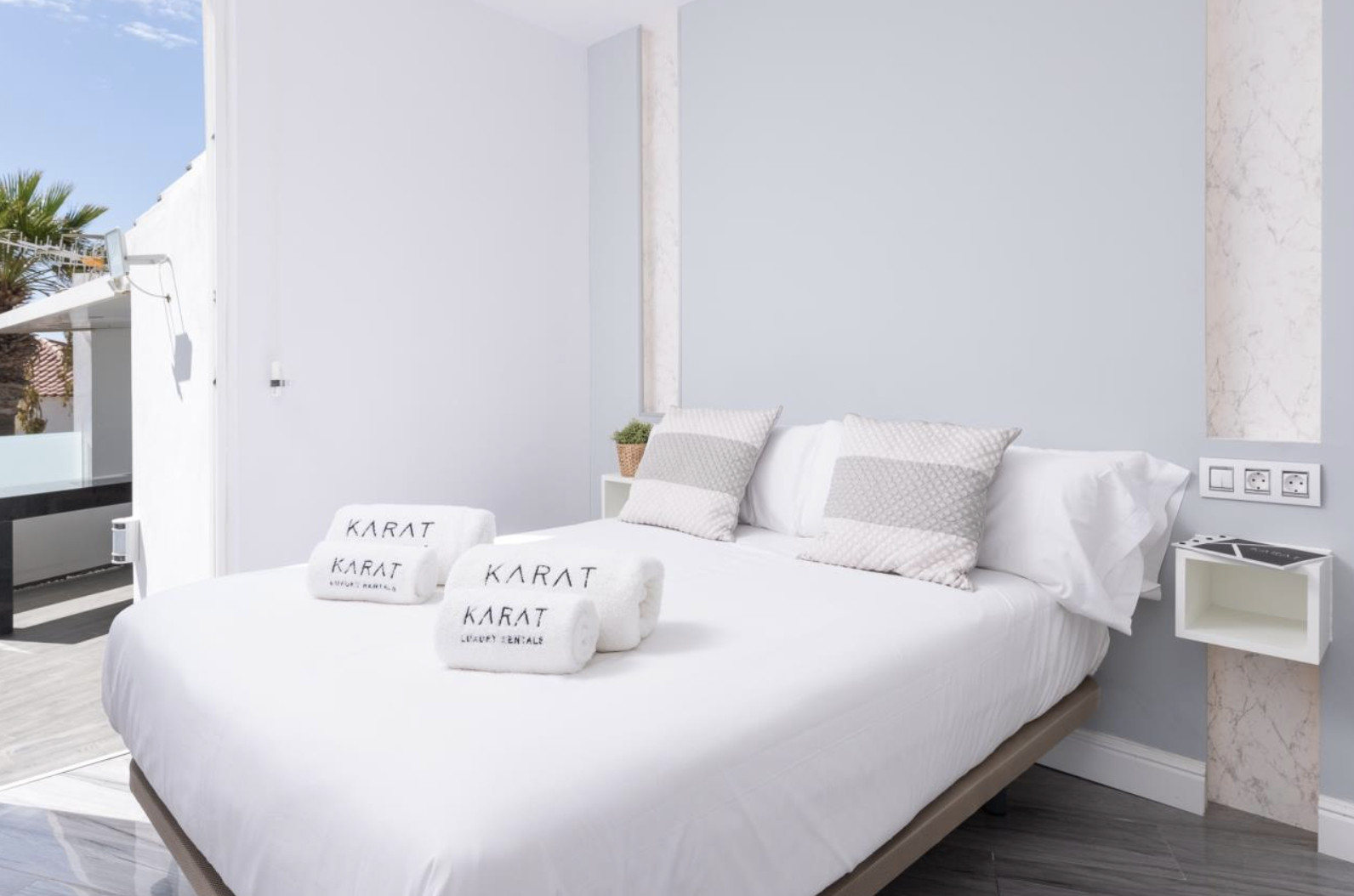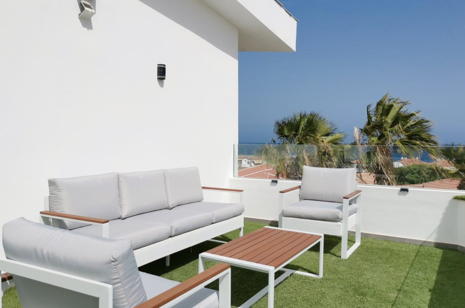 The exterior is pure inspiration: a heated private pool to enjoy throughout the year, barbecue area, solarium and a fully equipped terrace where time seems to stop under the sun of southern Tenerife.