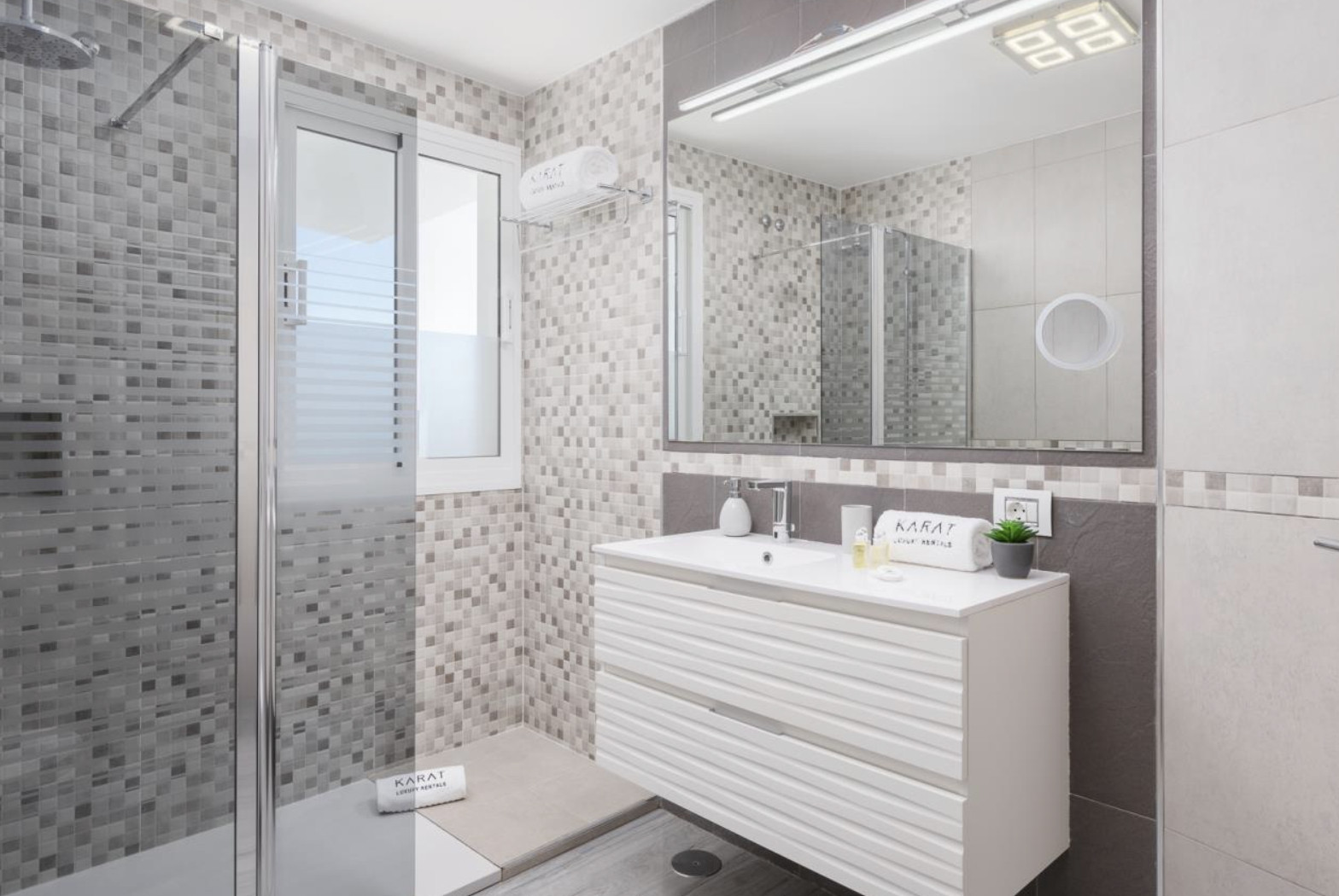 Distributed across three elegant floors, this modern architecture villa has been designed to offer a premium experience from the very first moment. Its four spacious double bedrooms with en-suite bathrooms offer privacy, style, and tranquillity to all guests, making it the perfect place to share unforgettable moments with family or friends.