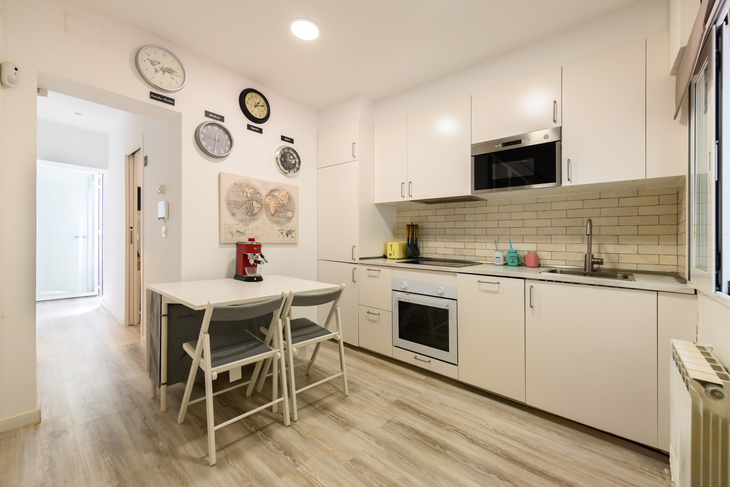 Nuestros servicios incluidos: Alarma en toda la vivienda, Cocina complete con horno, microondas, vitrocerámica, nevera grande, campana extractora, cubertería, vajilla, Terraza lounge, Climatización de última generación, Lavadora–Secadora– Zona de Limpieza, Limpieza semanal zonas comunes, Wifi–LAN en toda la casa-habitacion y Cerraduras inteligentes.