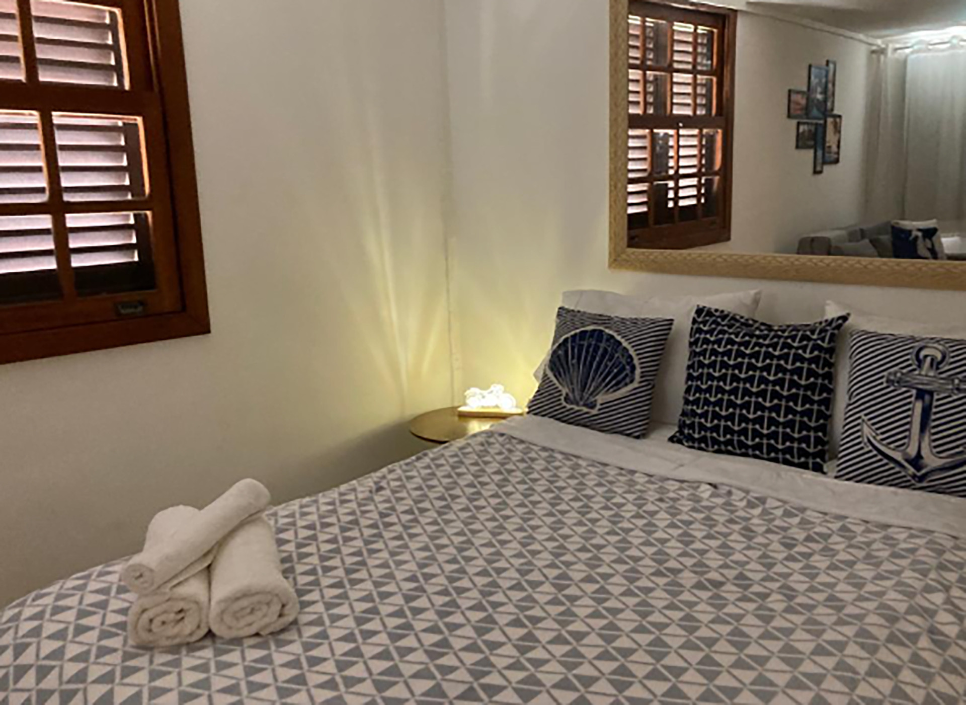 - Quarto com 1 cama de casal, 1 colchão extra de solteiro, 1 sofá-cama, armário, cobertor, protetor de colchão e ventilador de teto