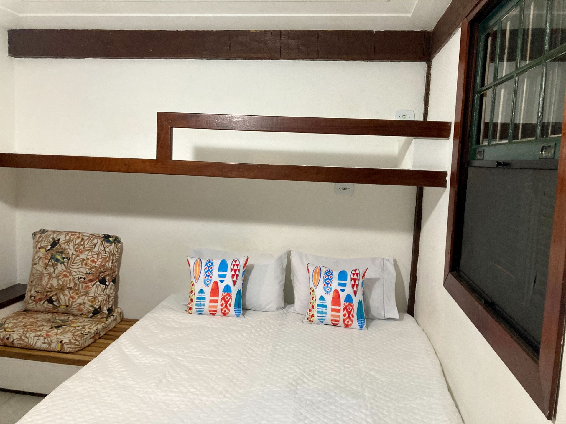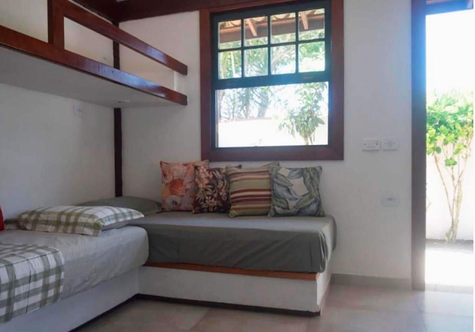 - Quarto com 1 cama de solteiro, 1 cama de casal (reversível, pode virar 2 camas de solteiro), 2 colchões extra de solteiro, armário, cobertor, protetor de colchão, espelho e ventilador de teto