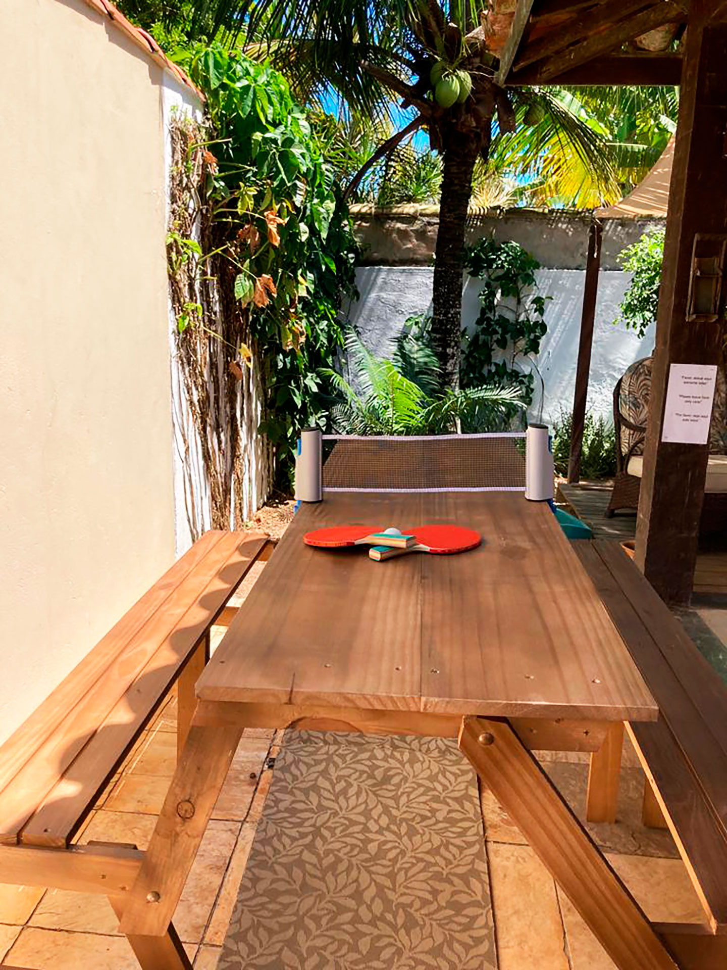- Mesa de ping-pong, jogo de dardos e canto para leitura