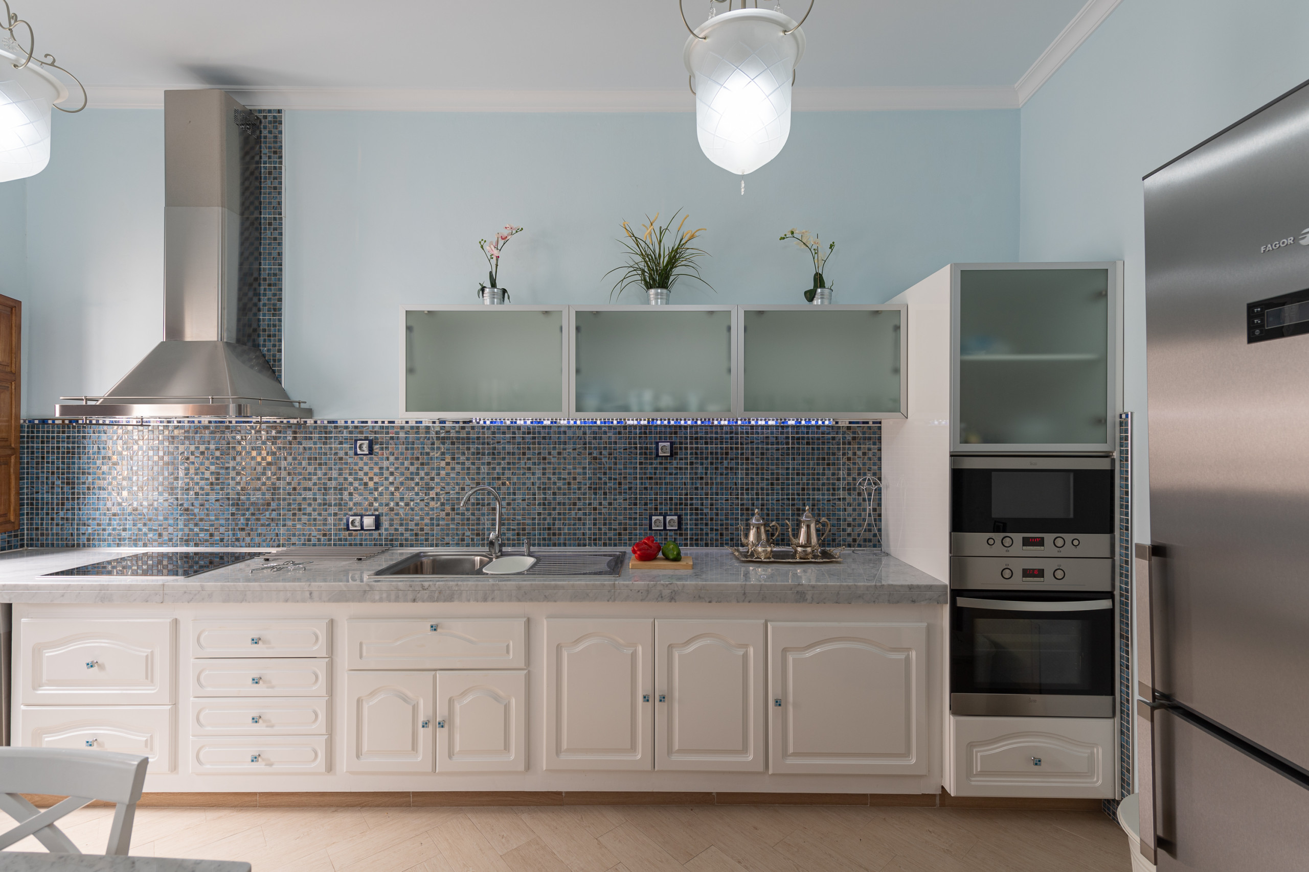 Una cocina independiente totalmente equipada, perfecta para quienes disfrutan de la gastronomía. Dispone de vitrocerámica, nevera, horno, congelador, lavavajillas, lavadora, secadora, vajilla/cubertería, utensilios de cocina, cafetera, freidora, tostadora, hervidor de agua y exprimidor. Todo lo necesario para sentirse como en casa.