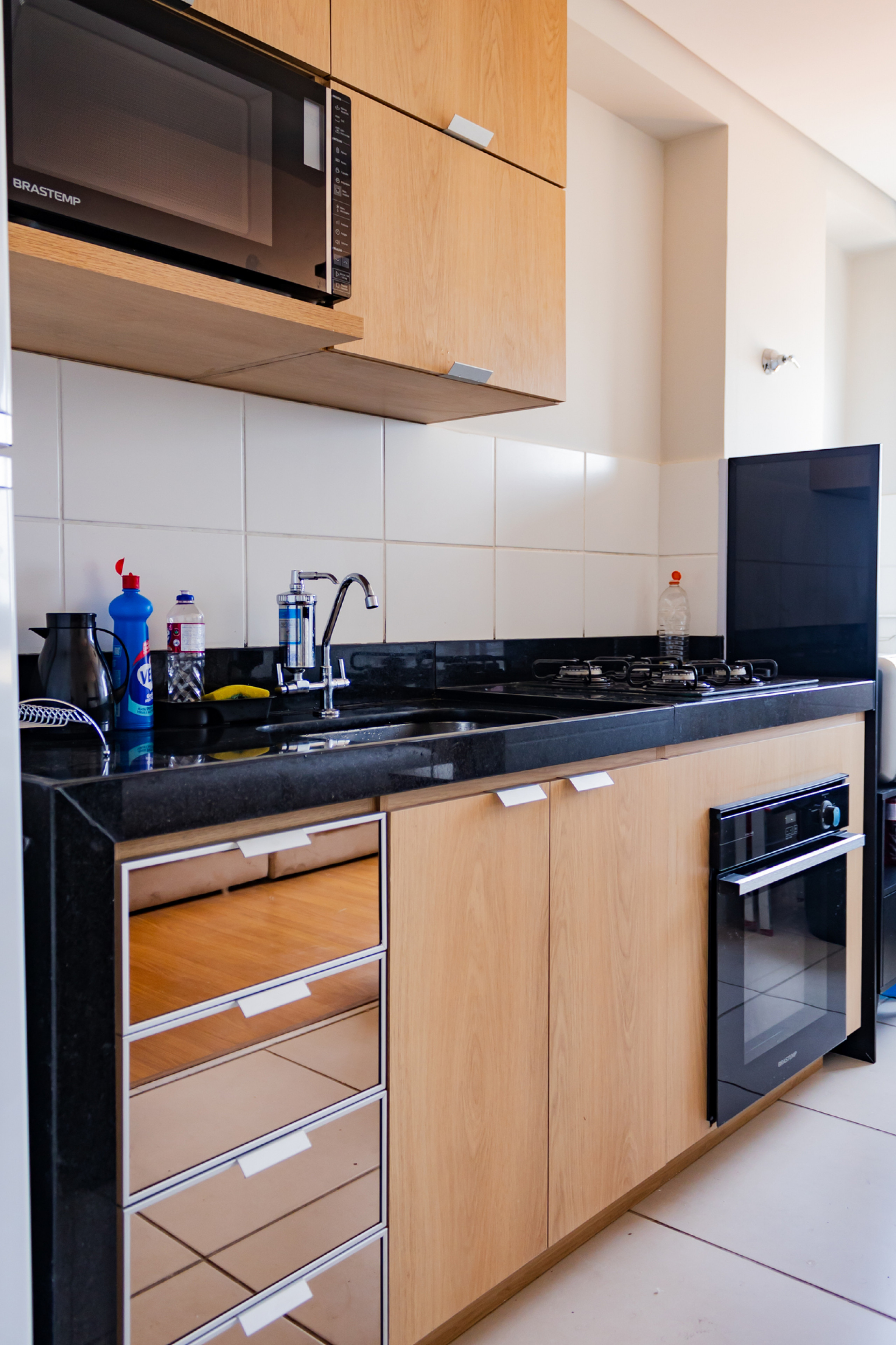 - Altamente equipada, la cocina tiene diversos utensilios, incluyendo congelador, cocina, horno, refrigerador, licuadora, microondas