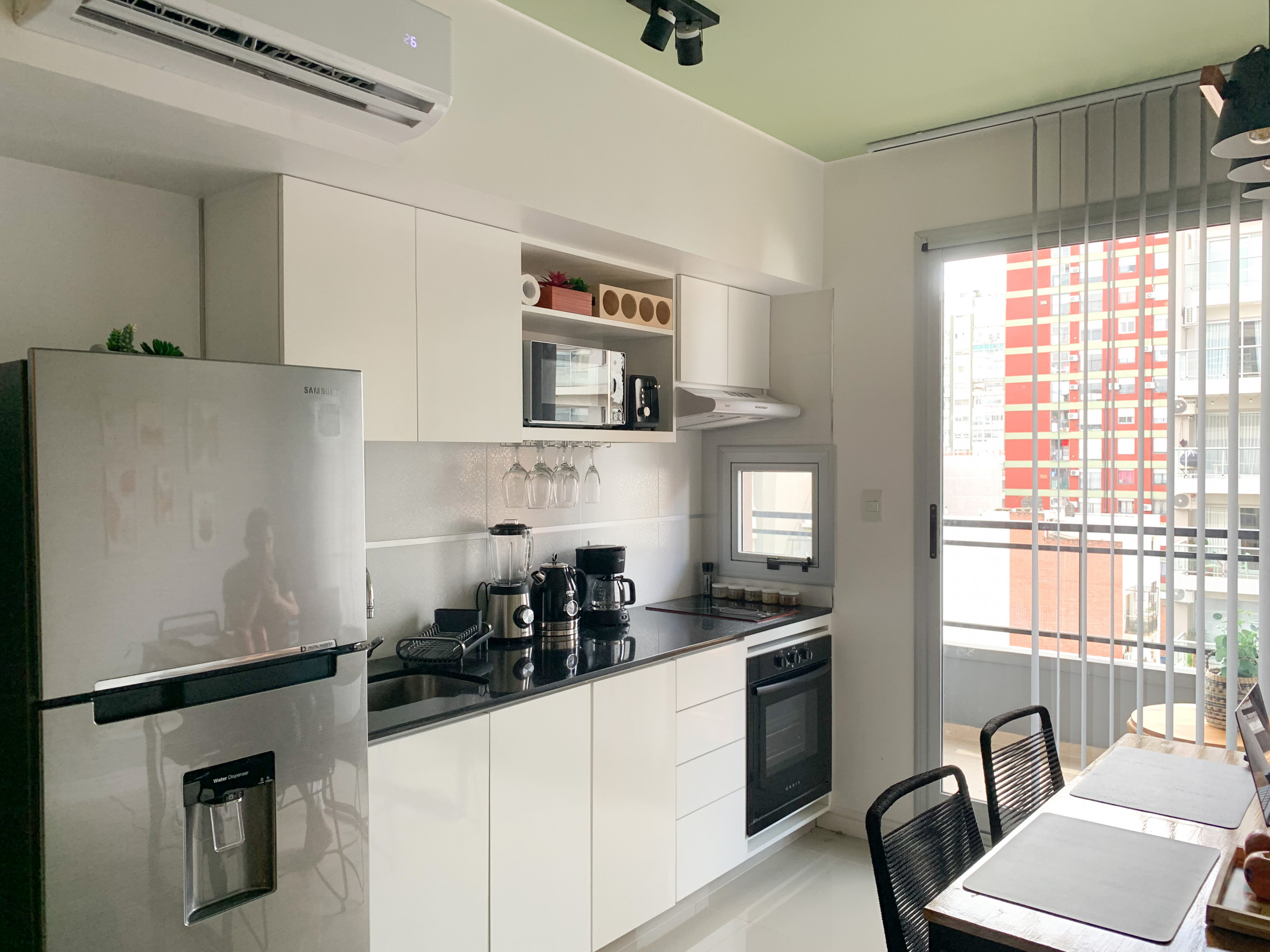 Este apartamento compacto es la elección perfecta para aquellos que buscan comodidad y conveniencia en Buenos Aires. Con una cómoda cama de matrimonio, sala de estar con televisión, aire acondicionado y mesa de comedor, tendrás todo lo que necesitas para una estancia agradable. La cocina completa te permite cocinar tus propias comidas y disfrutar de un desayuno en el balcón soleado. Y para esos días calurosos de verano, la piscina es el lugar perfecto para relajarse y refrescarse.
