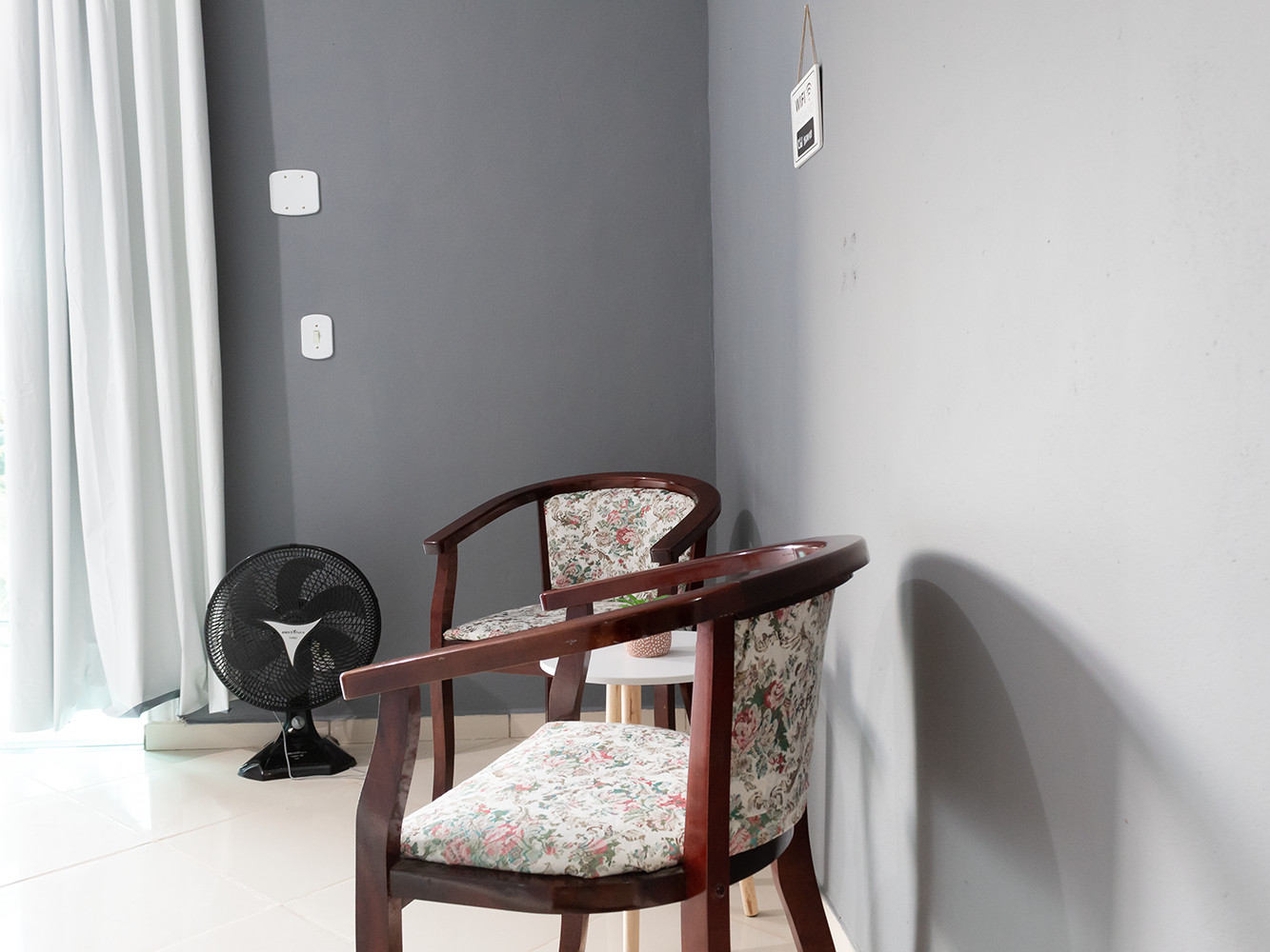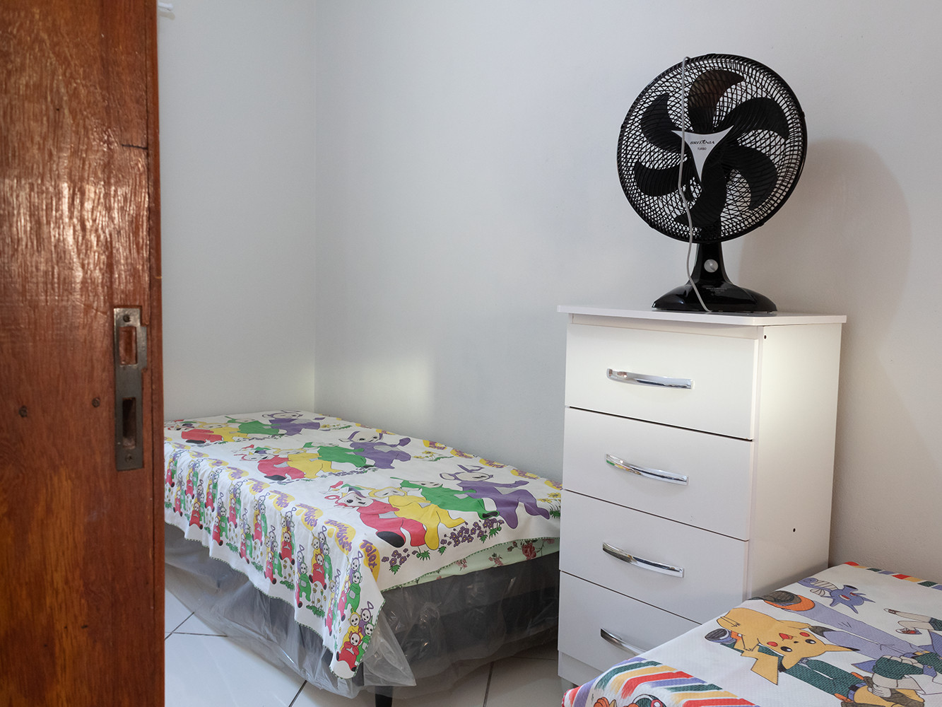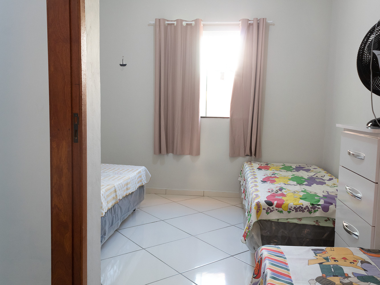 - Dormitórios com cortina blecaute, cômoda, espelho e ventilador de chão
