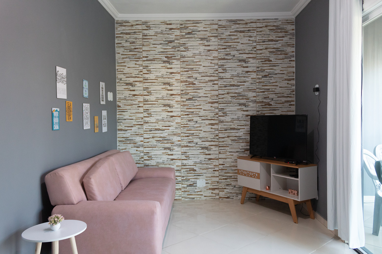 - Sala com Smart TV com Claro TV, rack, sofá e 2 poltronas