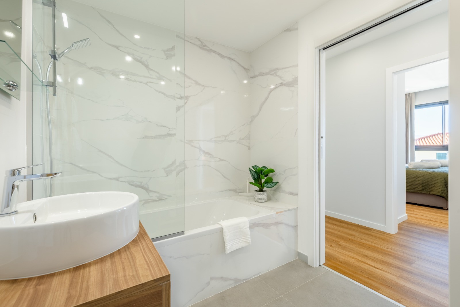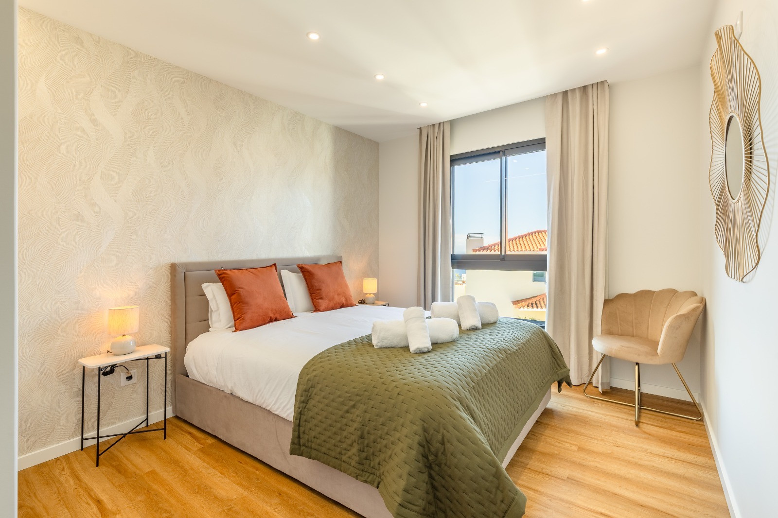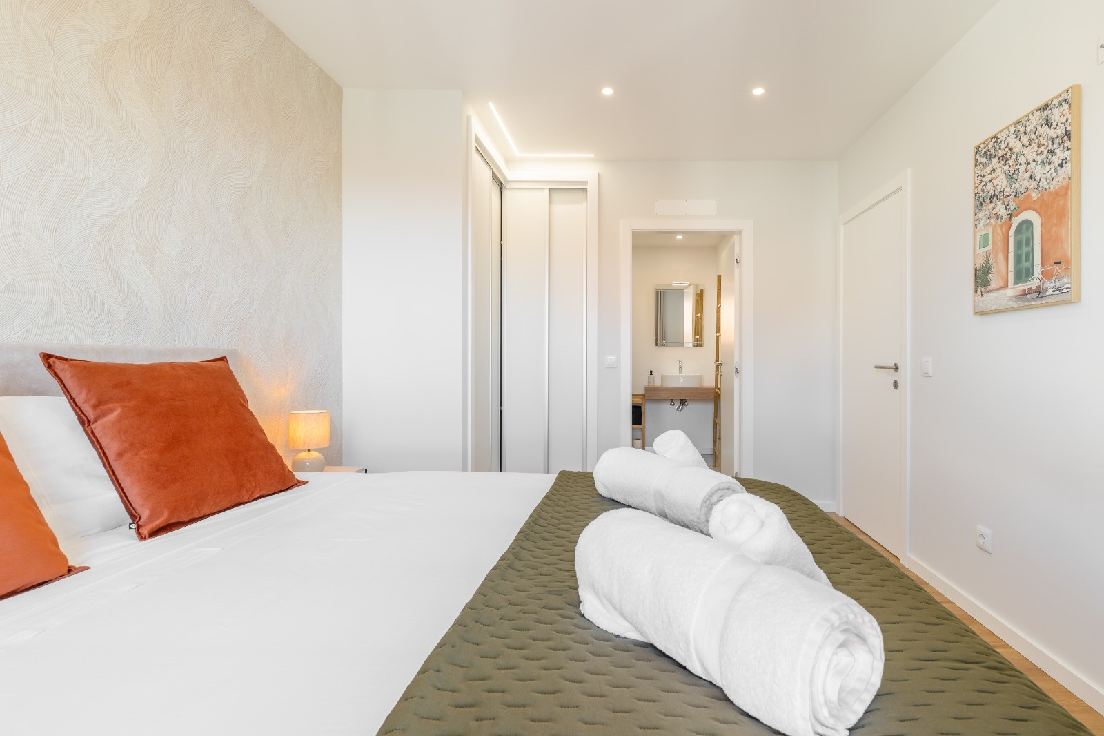 Dispone de dos dormitorios, cada uno con cama queen, que garantizan un buen descanso. Hay dos baños: uno en suite con ducha y otro con bañera. Se incluyen ropa de cama y toallas de baño.