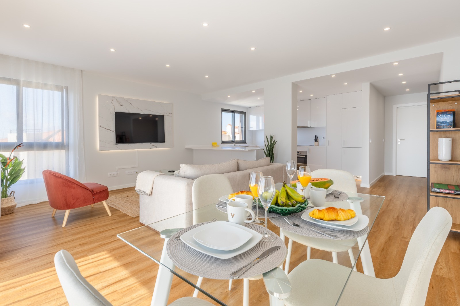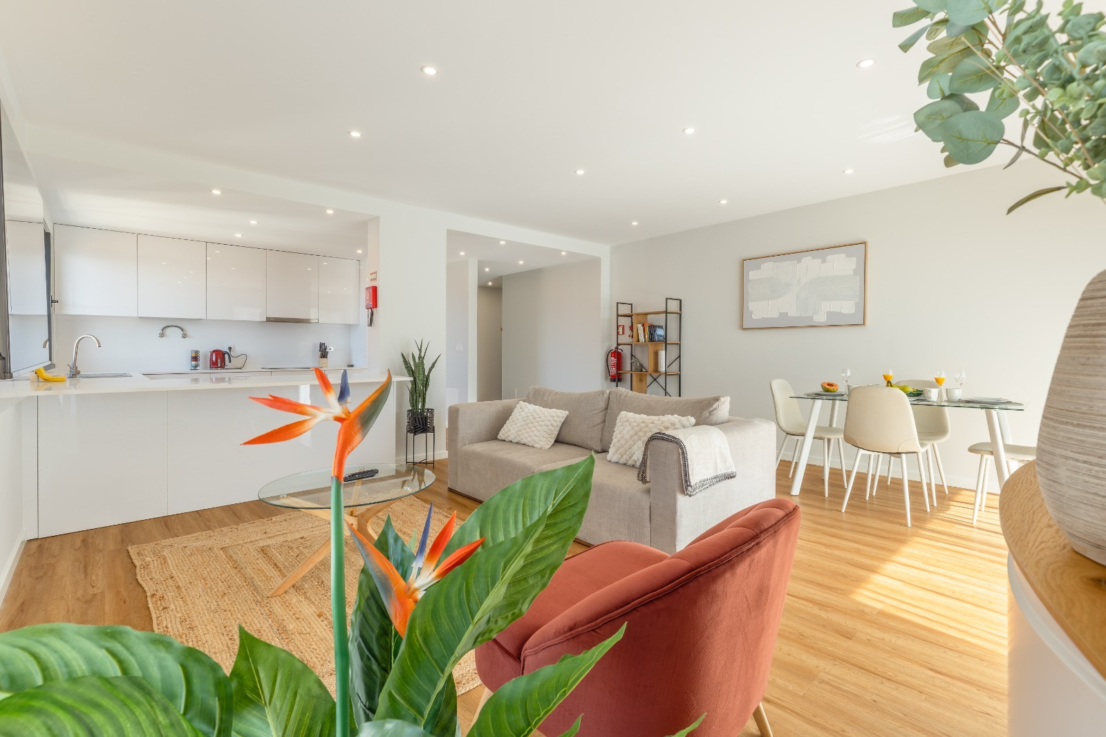 La cocina de estilo abierto está equipada con todo lo necesario para cocinar: frigorífico, congelador, horno, microondas, placa, lavavajillas, utensilios y vajilla. También encontrará lavadora y secador de pelo.