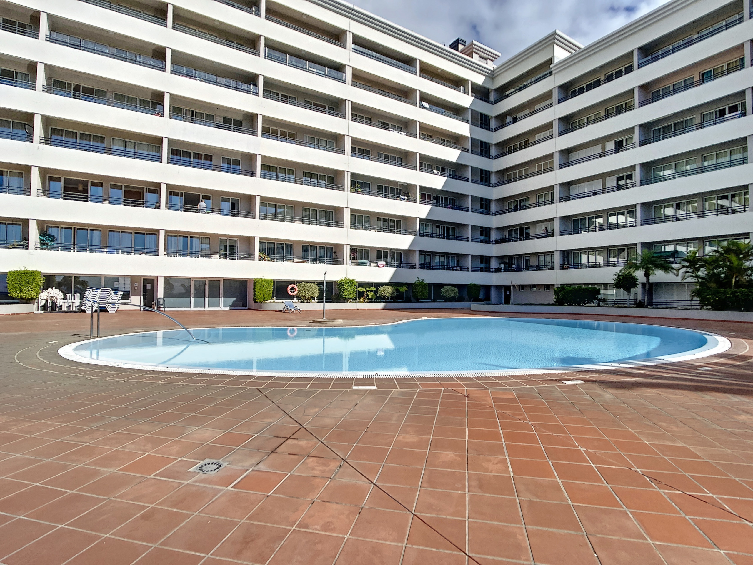 La piscina compartida también está disponible en el complejo de apartamentos, accesible durante todo el año para su relajación y ocio.