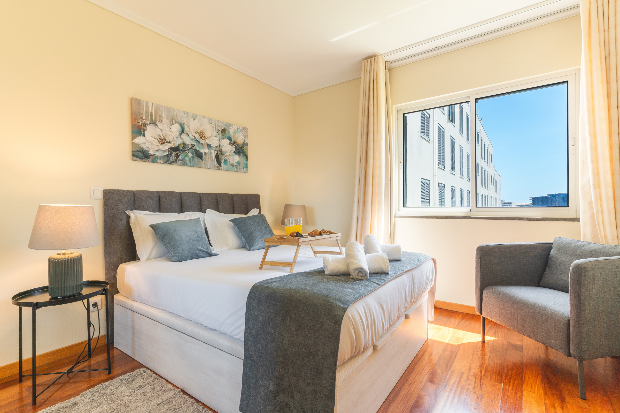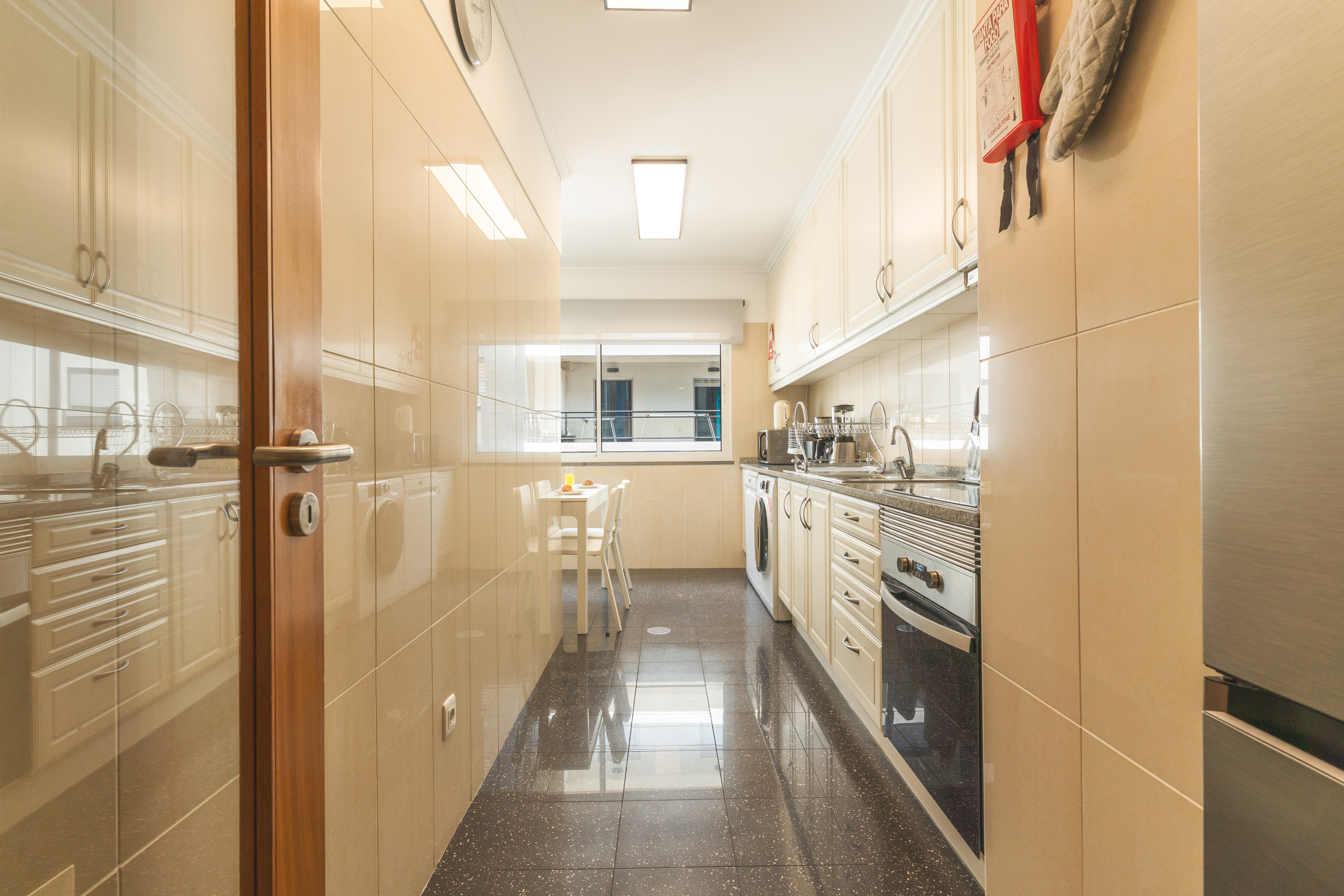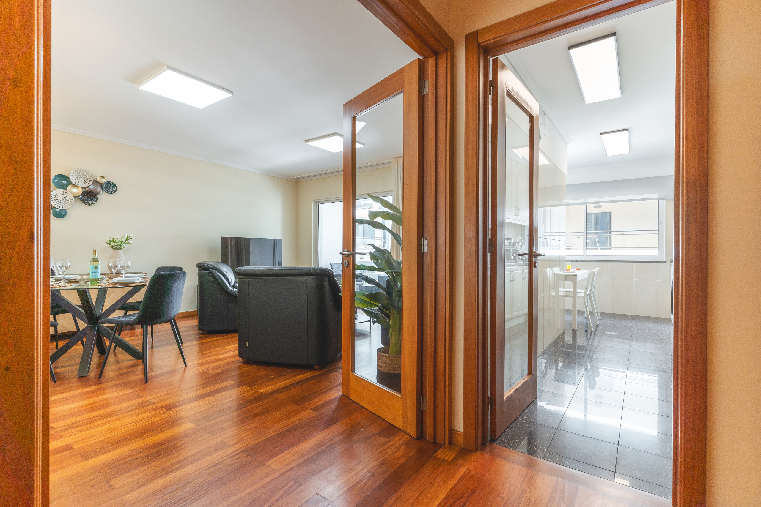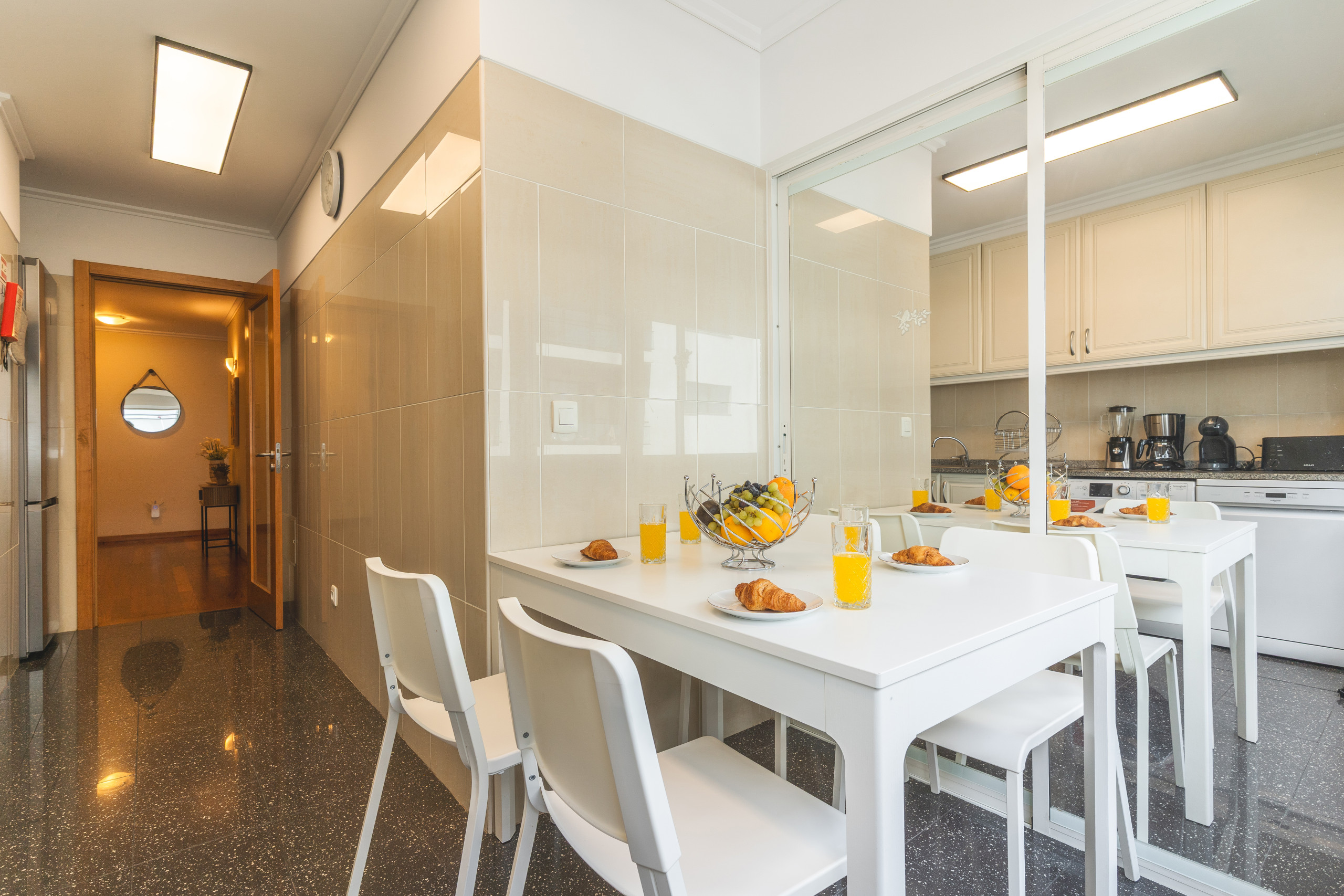 El apartamento cuenta con dos dormitorios, cada uno con cama de matrimonio, pensados para garantizar un buen descanso. El dormitorio principal dispone de baño privado con ducha, y el segundo baño tiene bañera.