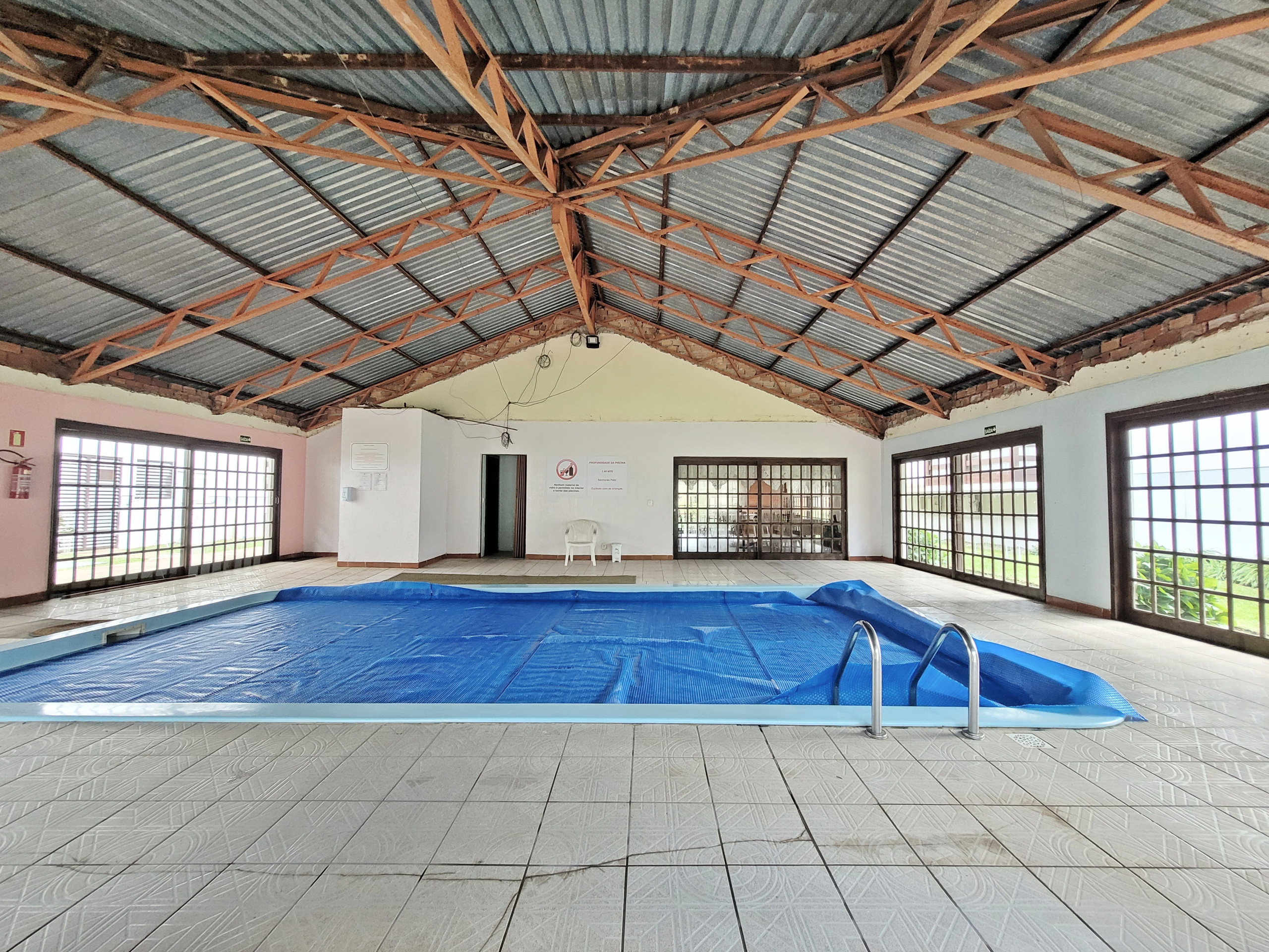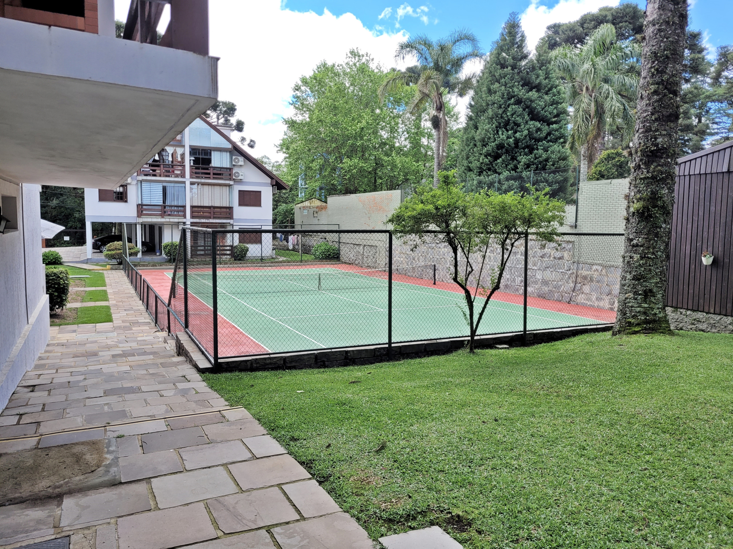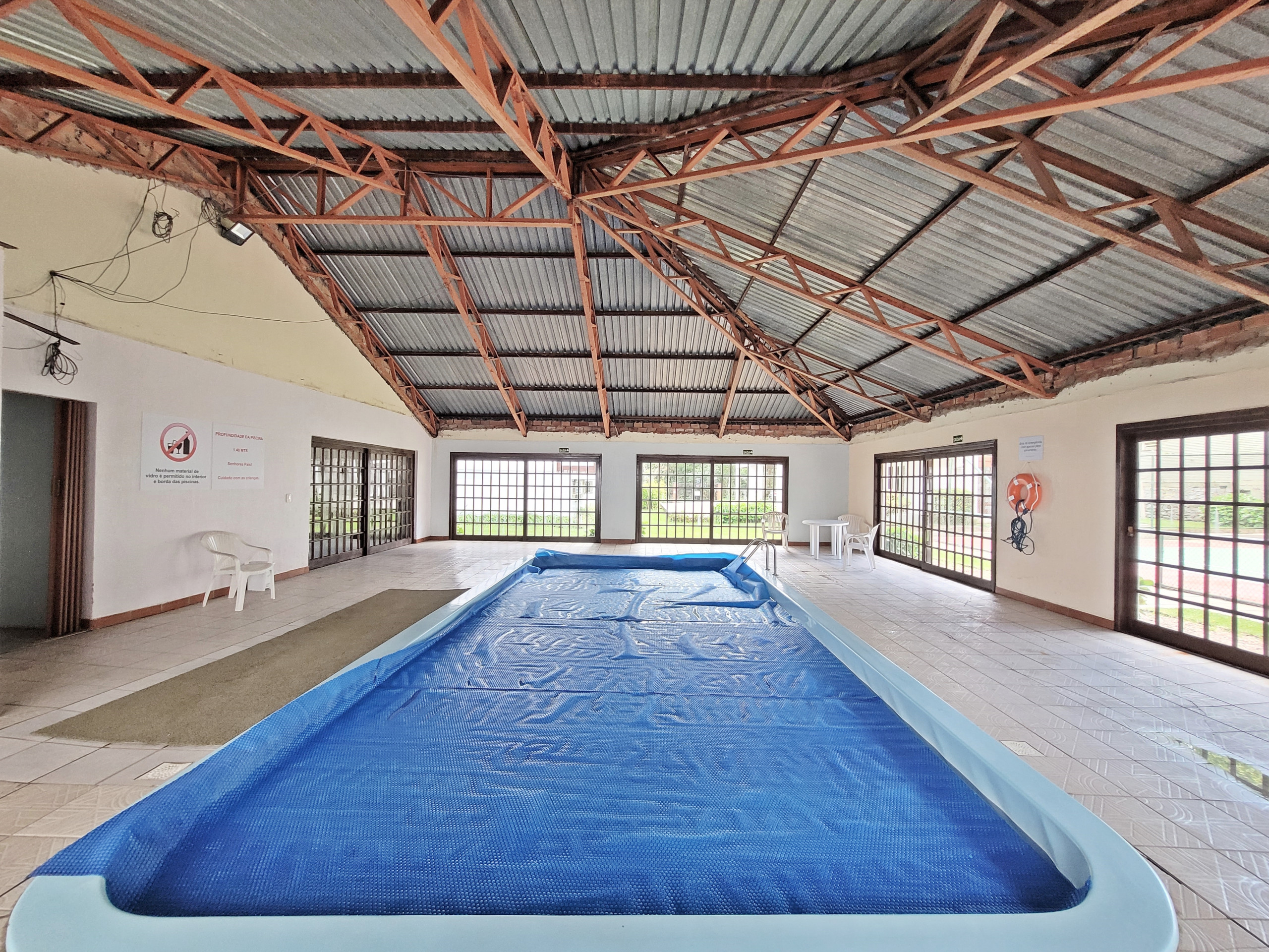 El condominio ofrece piscina climatizada y cancha de tenis.
