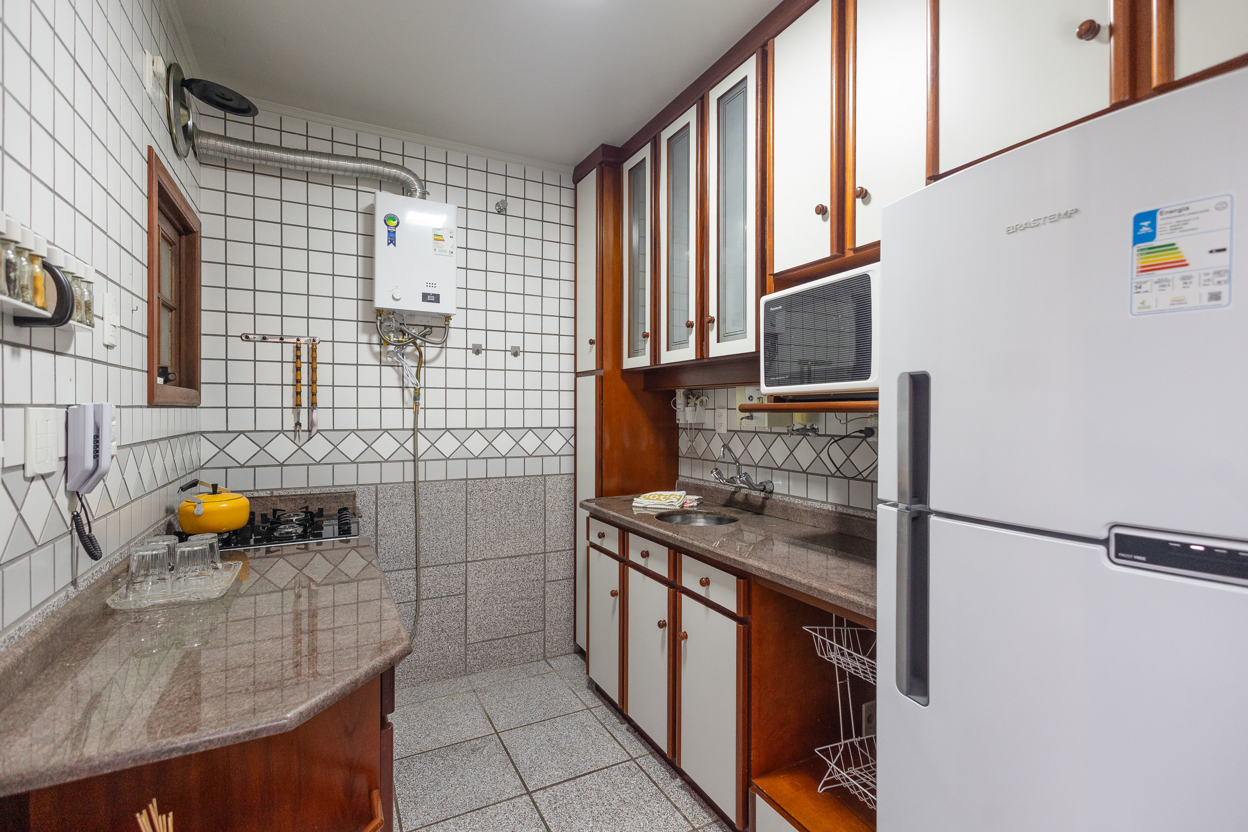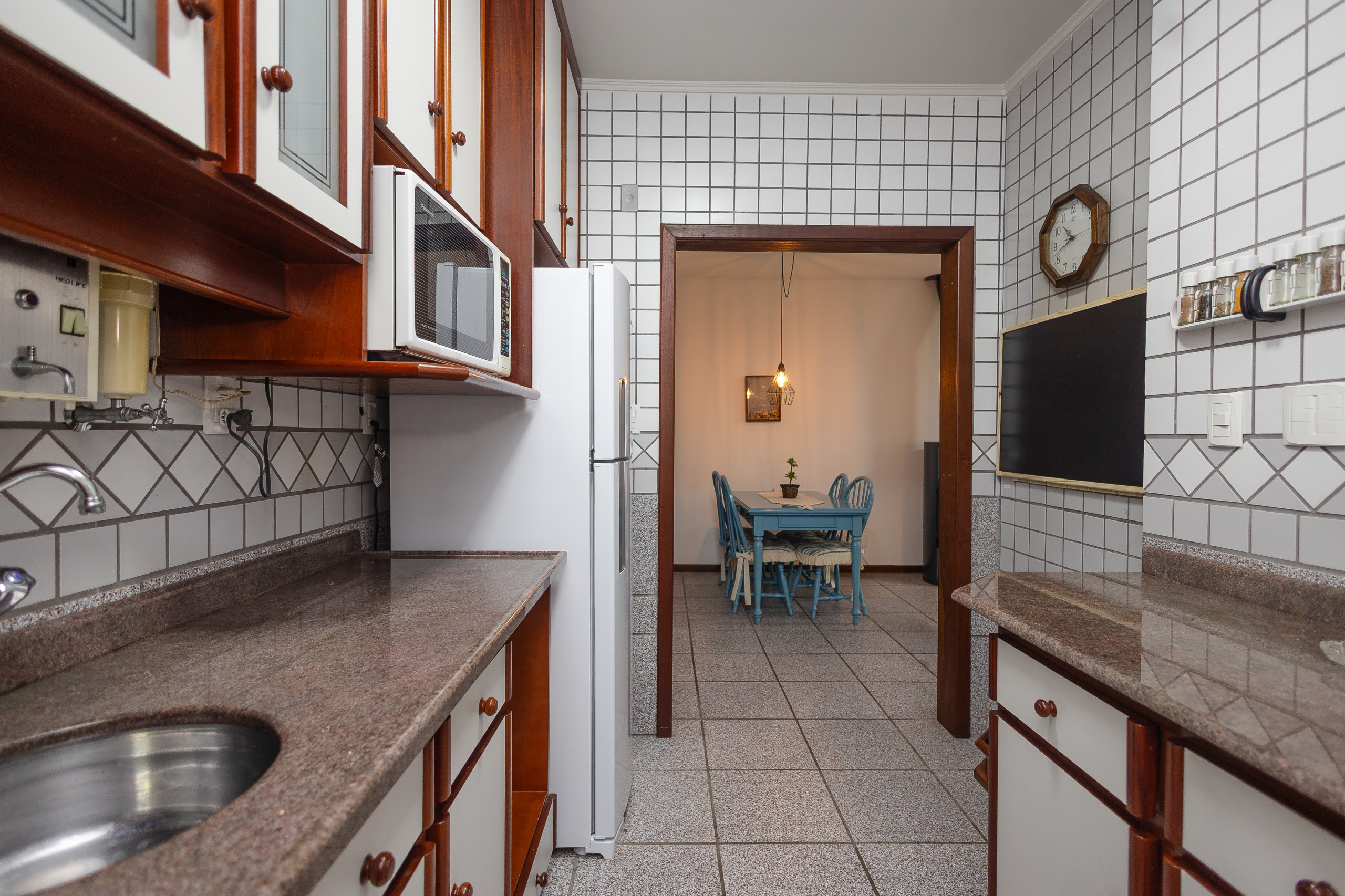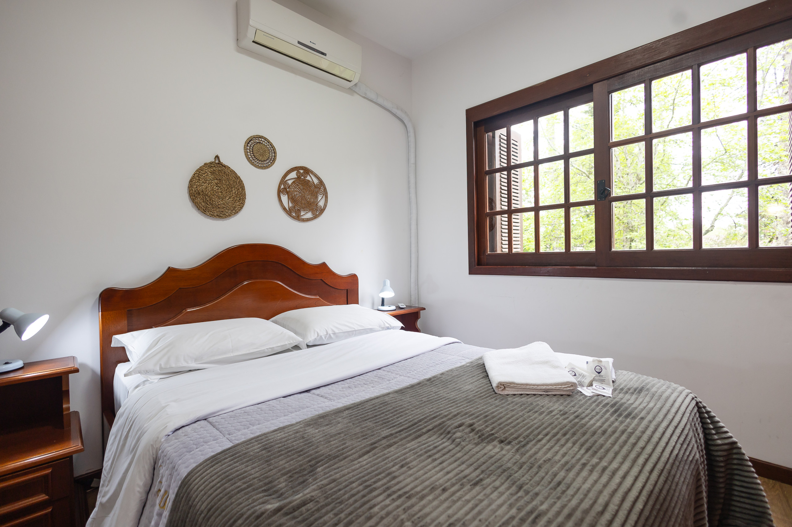 Insertado en un condominio arbolado y tranquilo, el inmueble cuenta con un dormitorio, baño social, cocina equipada, filtro de agua, barbacoa, sala con dos ambientes (estar y comedor), sofá-cama, wi-fi de alta velocidad, smart TV, calefactor chileno, balcón, ajuar completo y un espacio de estacionamiento. En la mesa podrán sentarse hasta 06 personas para una cena o un juego de cartas y el balcón permite contemplar el jardín mientras se disfruta de un vino o un chimarrão.