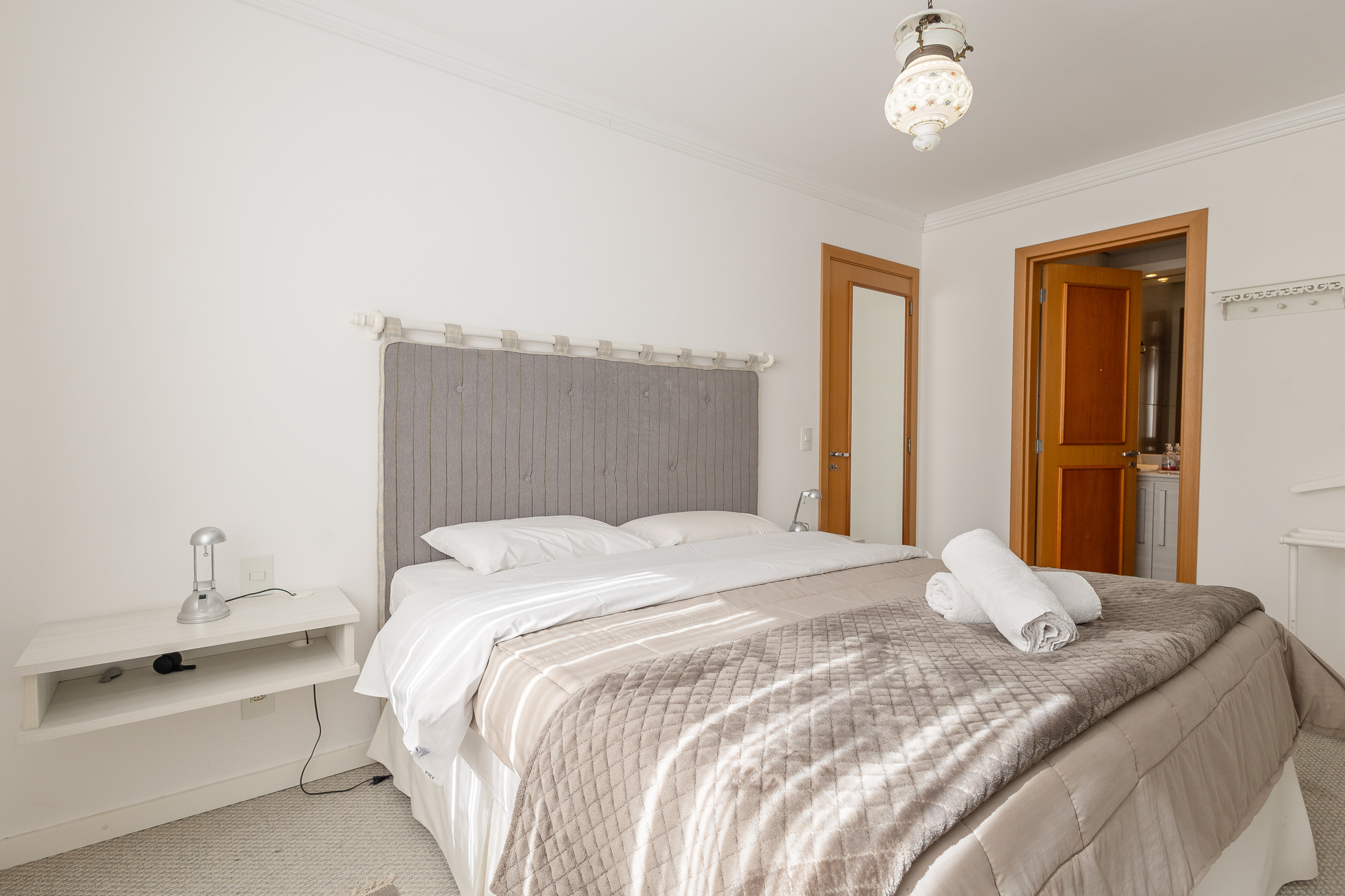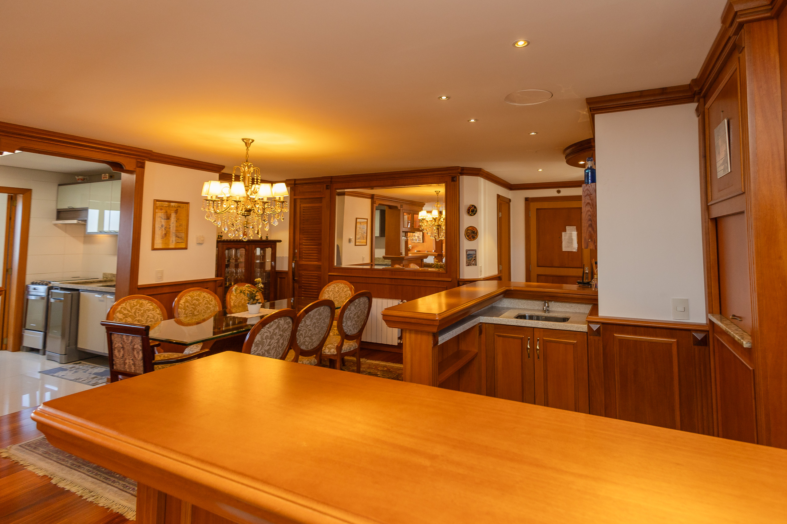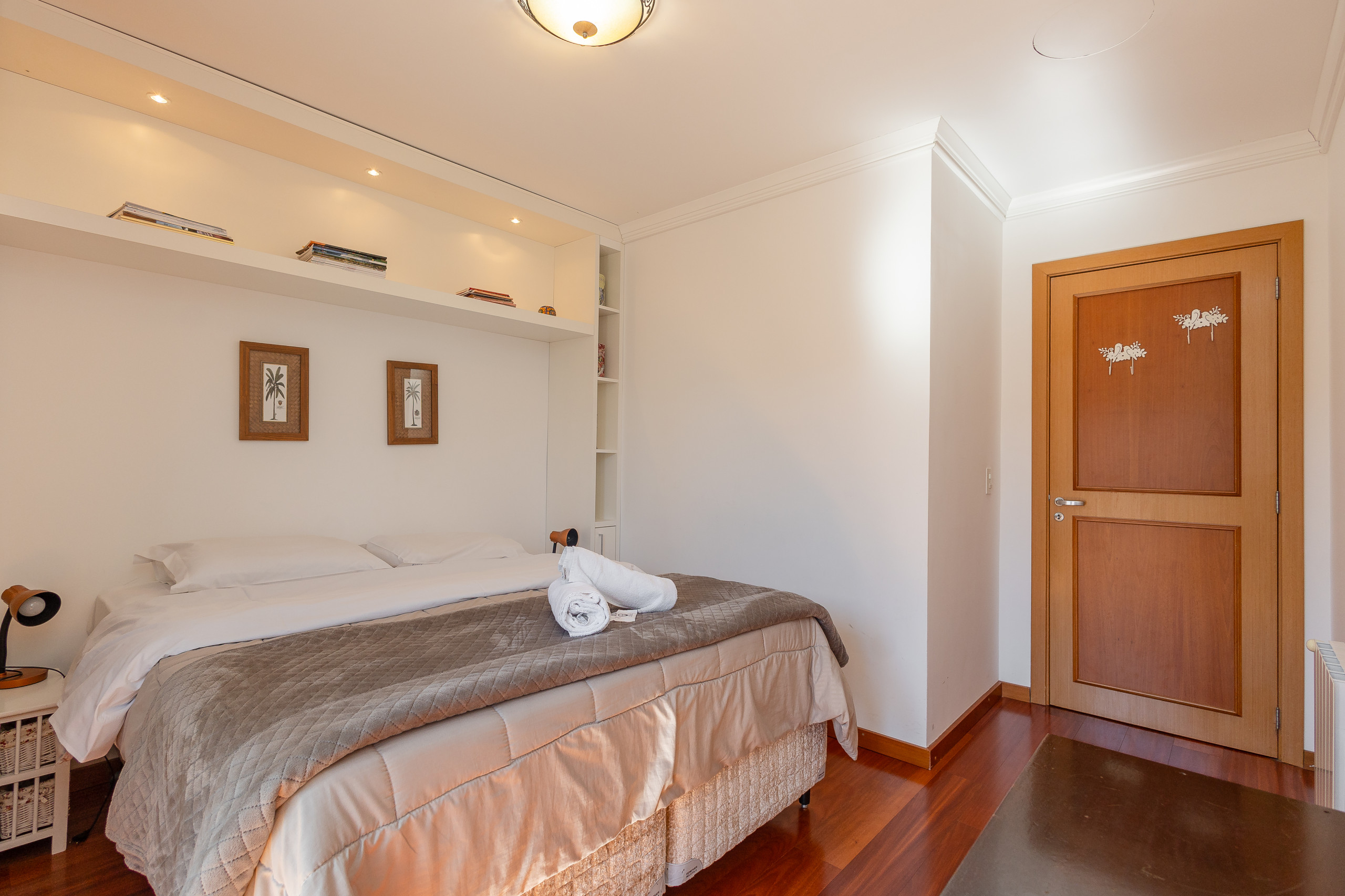 Espacioso apartamento distribuido en 3 suites, una de ellas con balcón, lavabo, amplio salón de 3 ambientes con estar, comedor y cocina americana integrada, área de servicio, internet Wi-Fi, un smart TV. Estacionamiento privado con 2 plazas de garaje, añade aún más tranquilidad a su estancia.