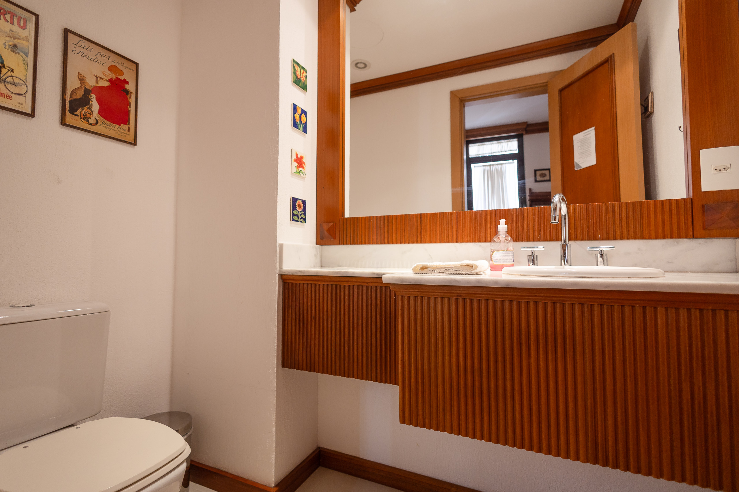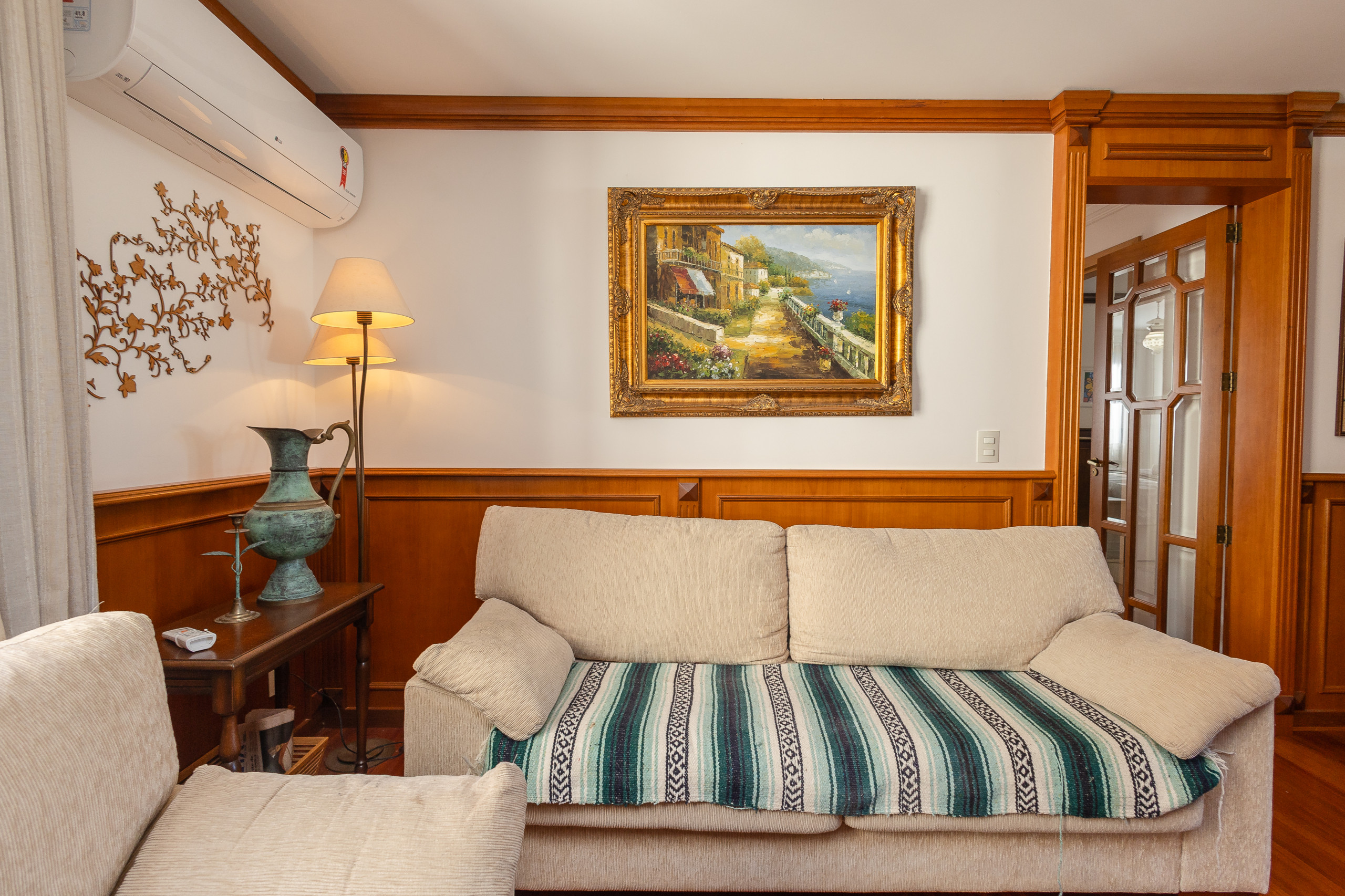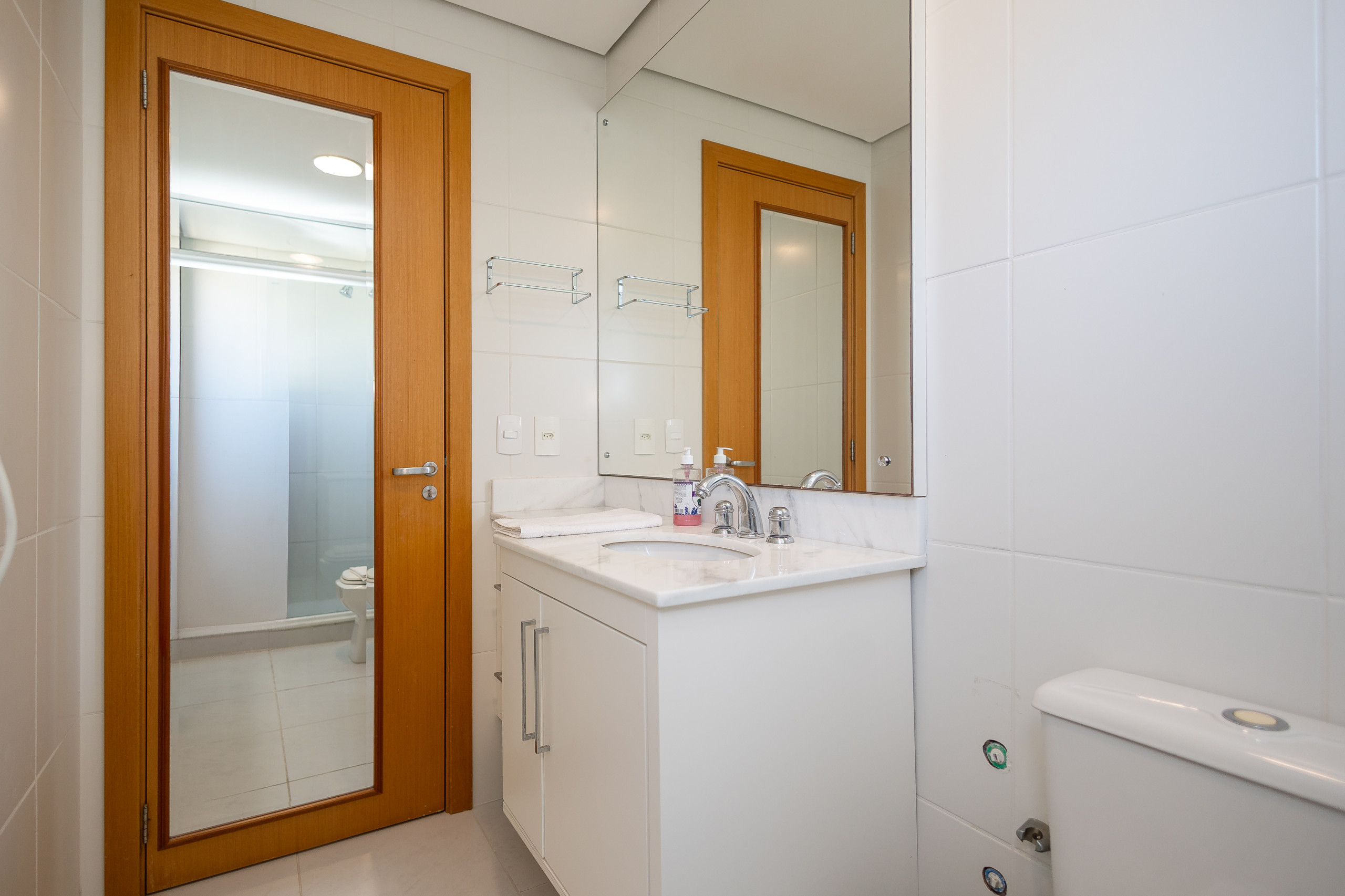 Espacioso apartamento distribuido en 3 suites, una de ellas con balcón, lavabo, amplio salón de 3 ambientes con estar, comedor y cocina americana integrada, área de servicio, internet Wi-Fi, un smart TV. Estacionamiento privado con 2 plazas de garaje, añade aún más tranquilidad a su estancia.