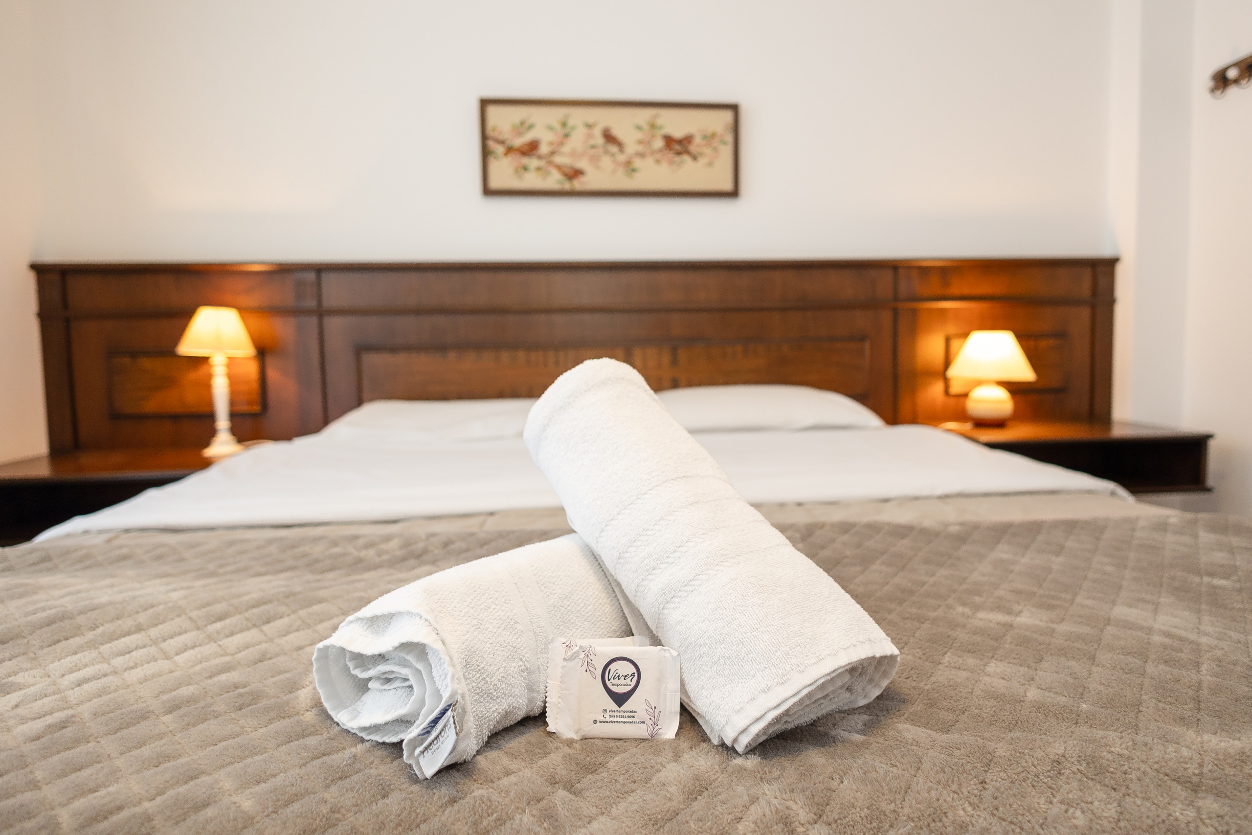 Las habitaciones cuentan con una cama de matrimonio, dos camas king size y dos camas auxiliares individuales, garantizando que todos tengan un descanso reparador después de un día de aventuras en la encantadora ciudad serrana.