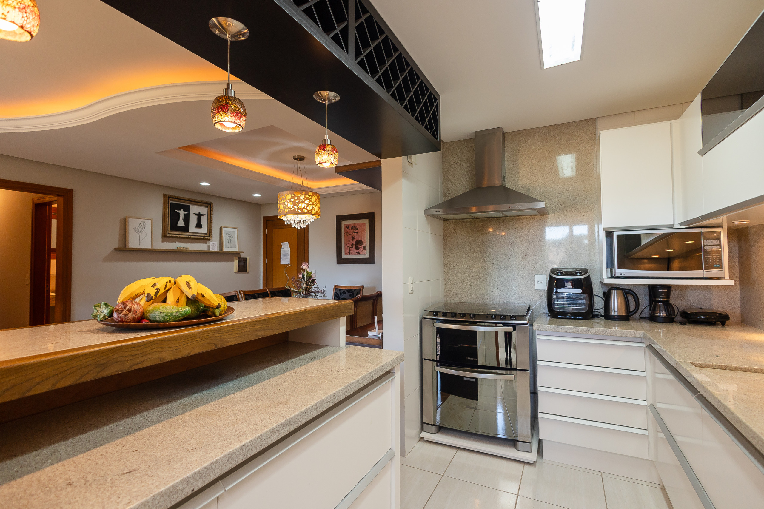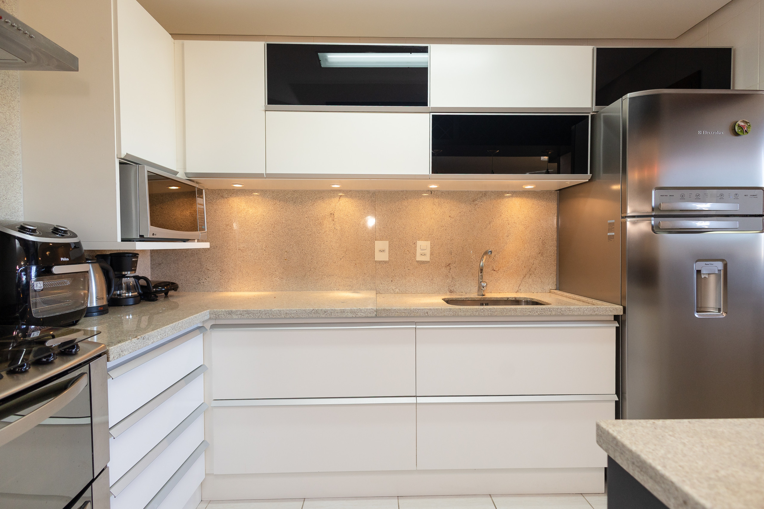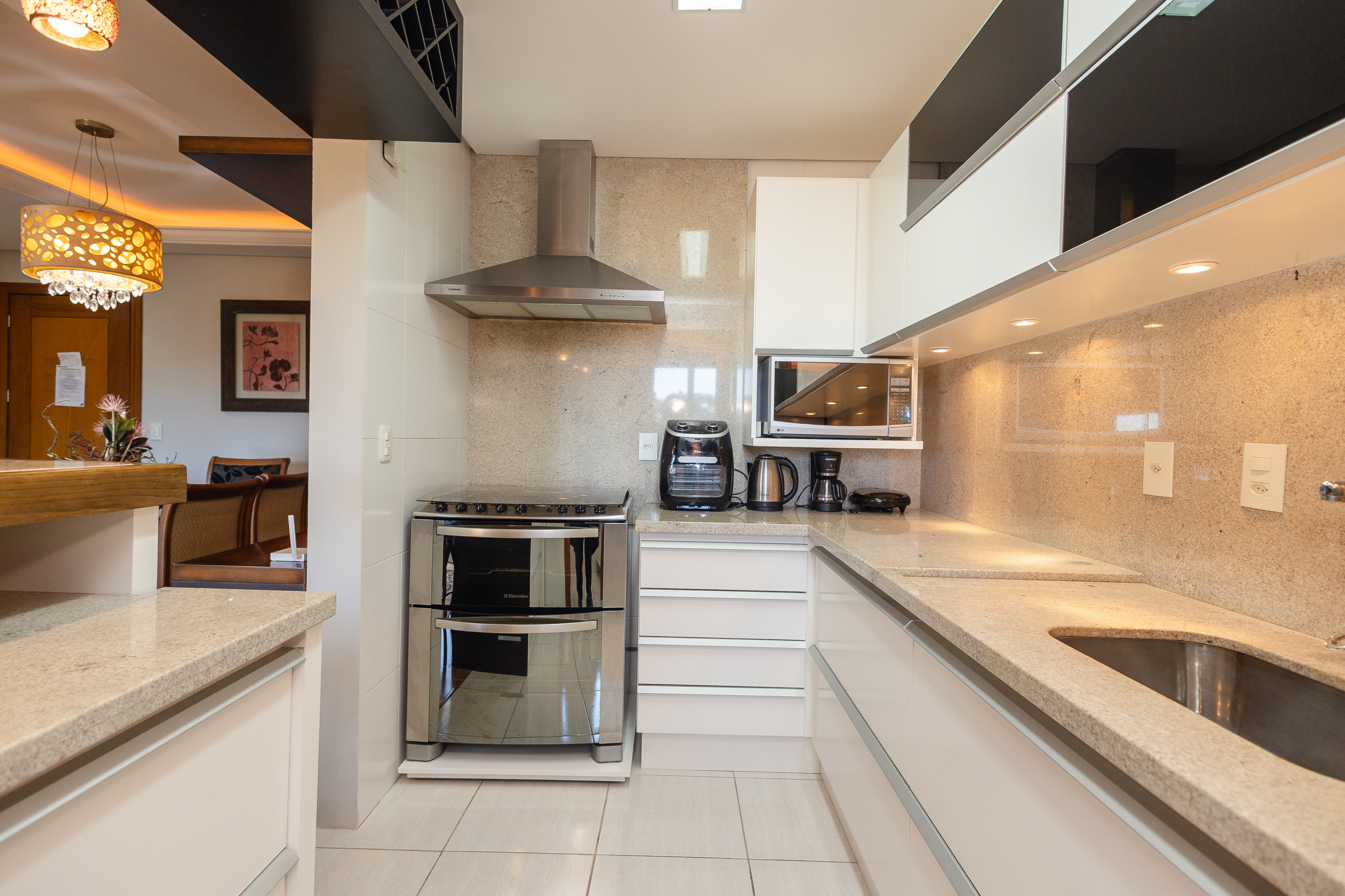 En la cocina completa tendrá a su disposición lavavajillas, horno y estufa, refrigerador con congelador, freidora de aire, sandwichera y licuadora!