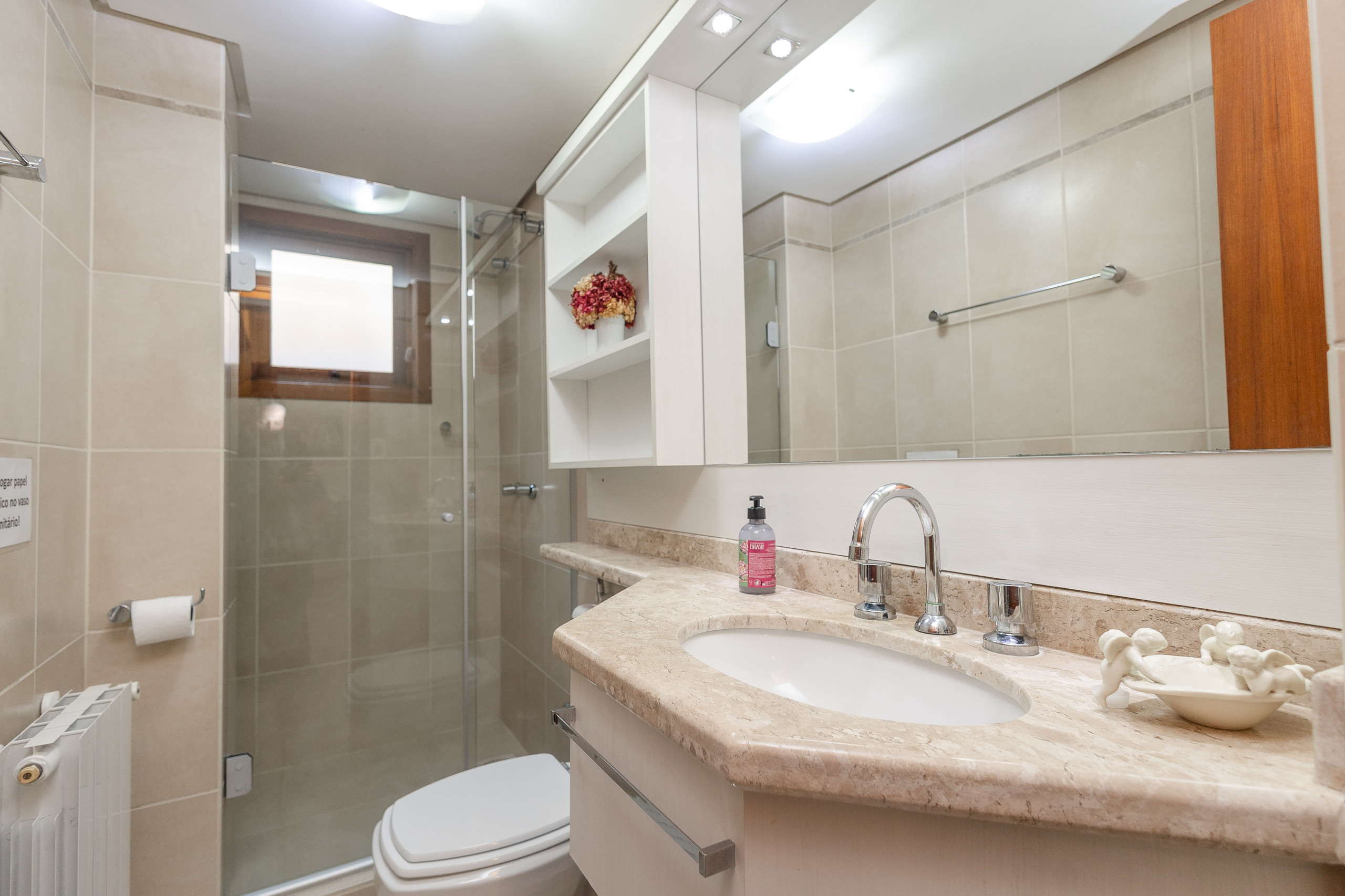 Ubicado en un área de 84m², el espacio es ideal para quienes buscan comodidad, practicidad y una estancia agradable en Gramado. Situado a aproximadamente 1 km de la calle cubierta, cuenta con supermercados, farmacias, gimnasio y restaurantes muy cerca, ¡permitiendo disfrutar del centro sin necesidad de coche!