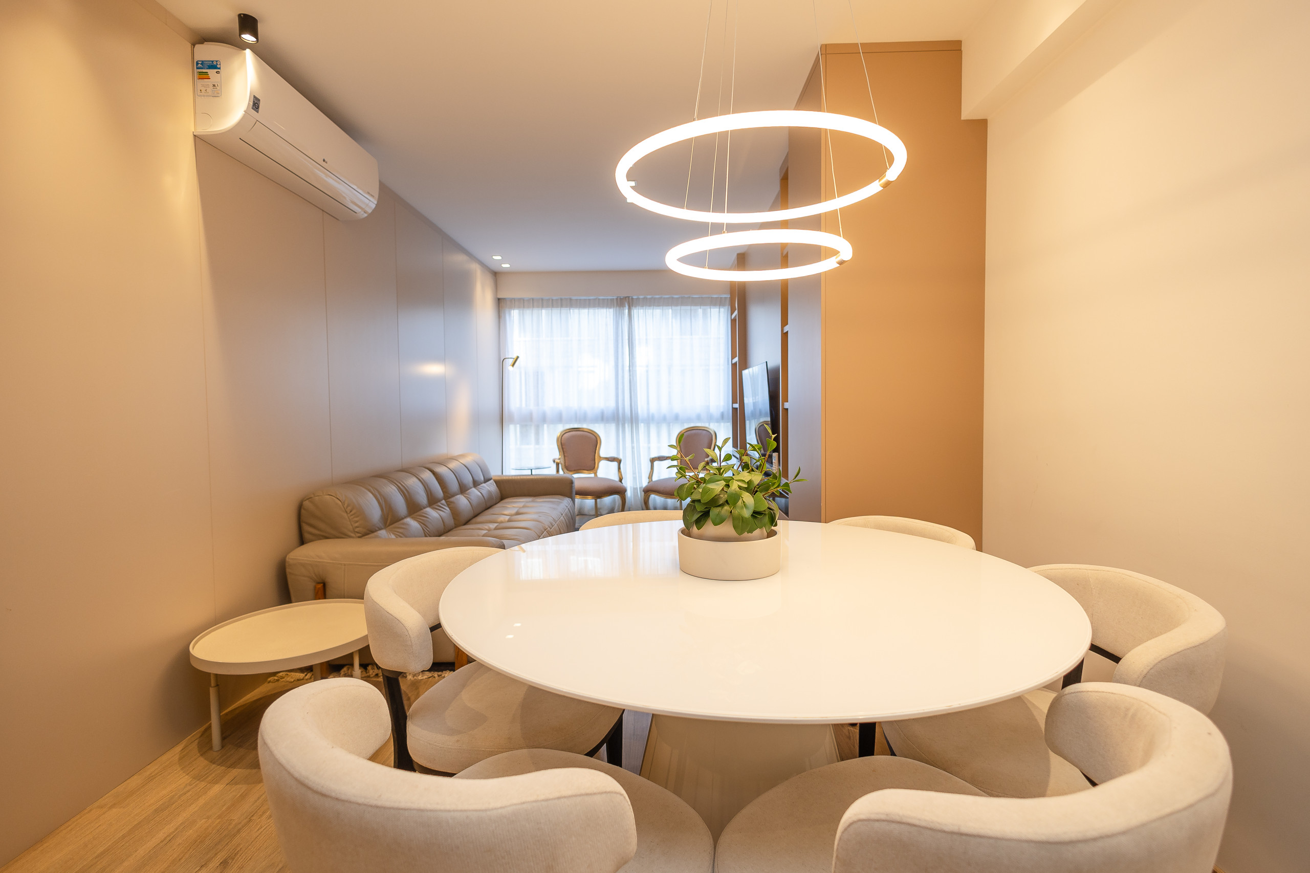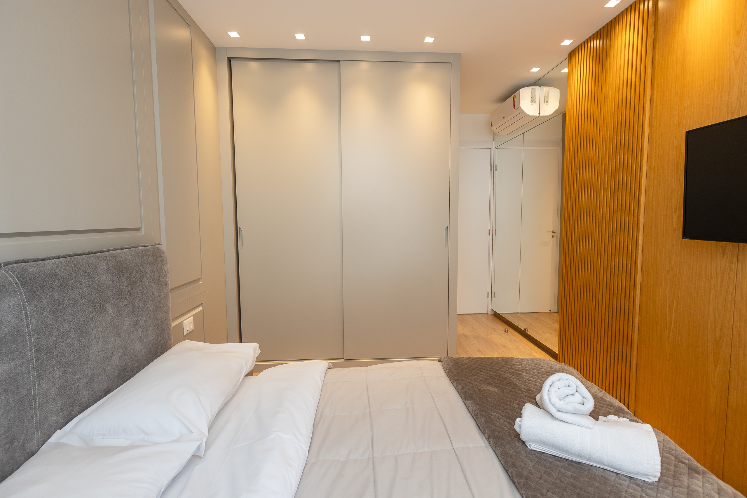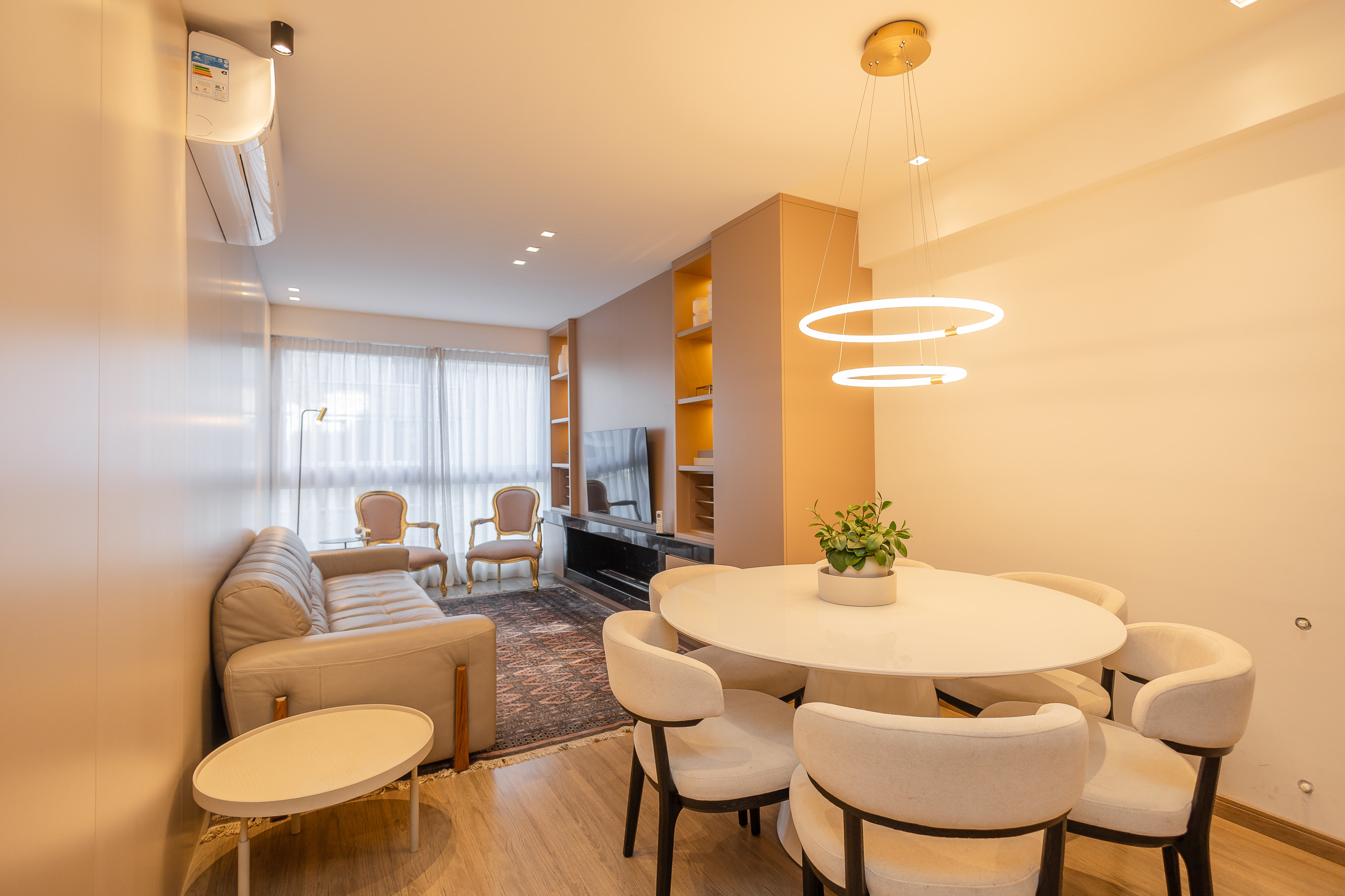 Apartamento moderno, decorado con muy buen gusto y cuidado, cuenta con sala de estar de 2 ambientes integrados y con chimenea, cocina completa con lavavajillas, 2 suites, lavabo. Todos los ambientes están equipados con smart TV y aire acondicionado caliente/frío. Un espacio de estacionamiento. ¡Inmueble muy bonito y confortable!
