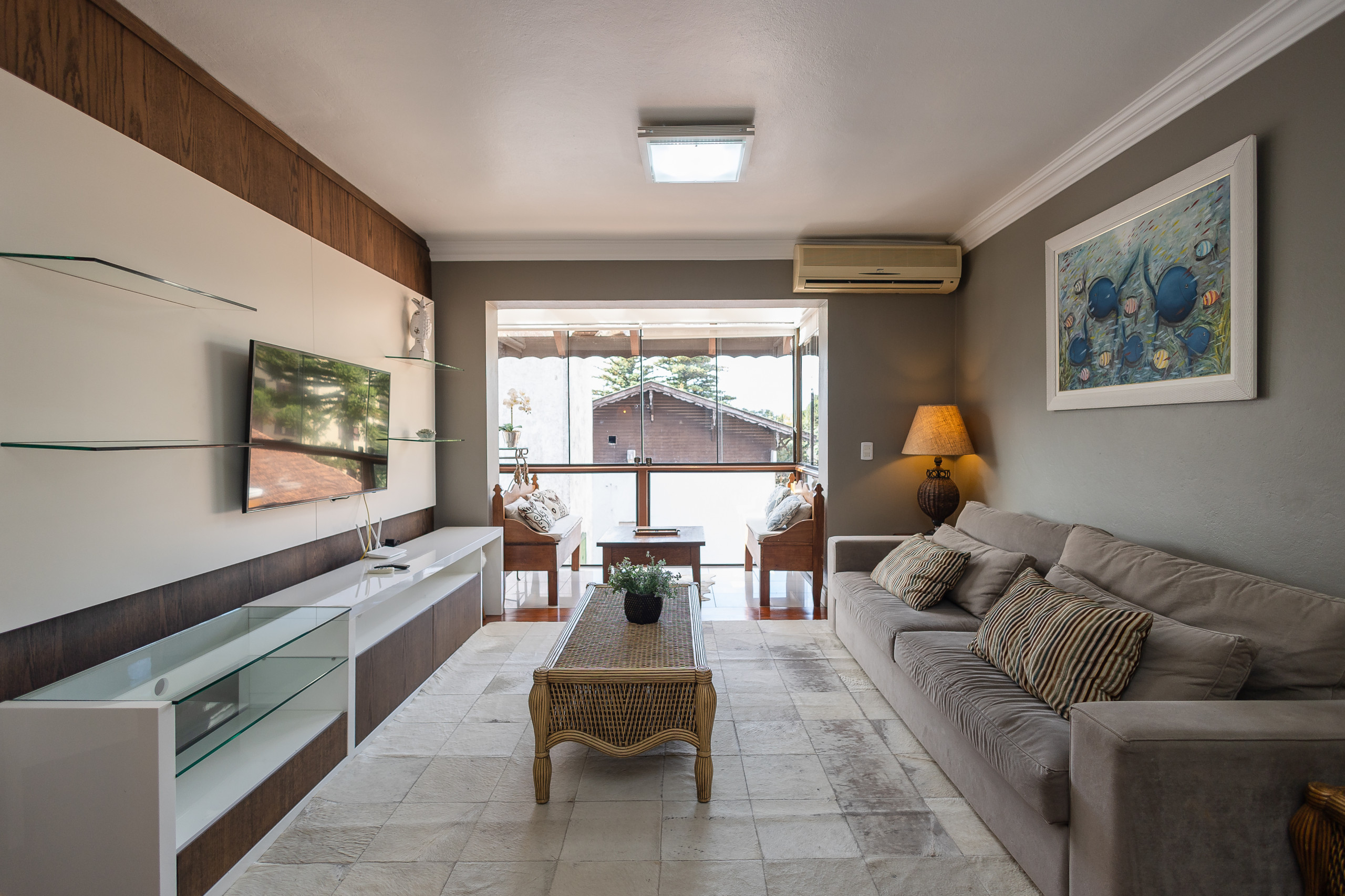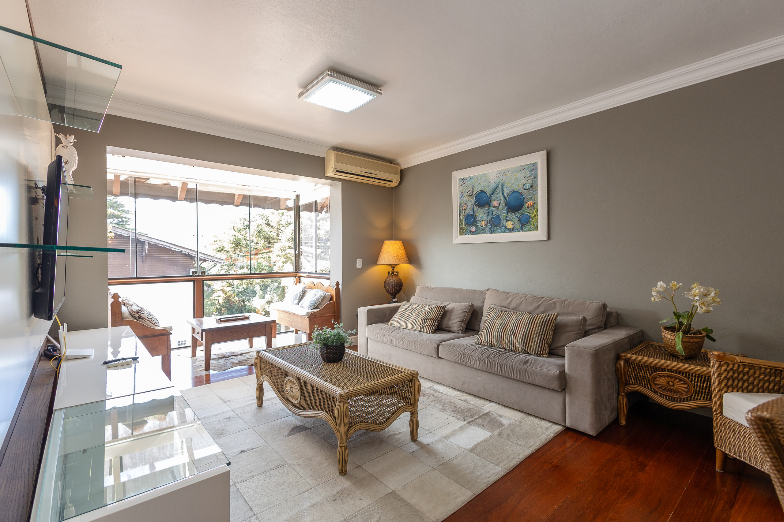 Este apartamento es su nueva oportunidad de vivir el centro de Gramado, a unos 60m de la Rua Coberta, ¡sin necesidad de coche! Acogedor en todos los sentidos, ofrecerá: una plaza de garaje, internet de alta velocidad, cuatro habitaciones (siendo una de servicio) y cuatro baños (siendo 2 aseos), split frío/calor en la sala de estar y en las habitaciones, barbacoa y ajuar completo para su estancia.