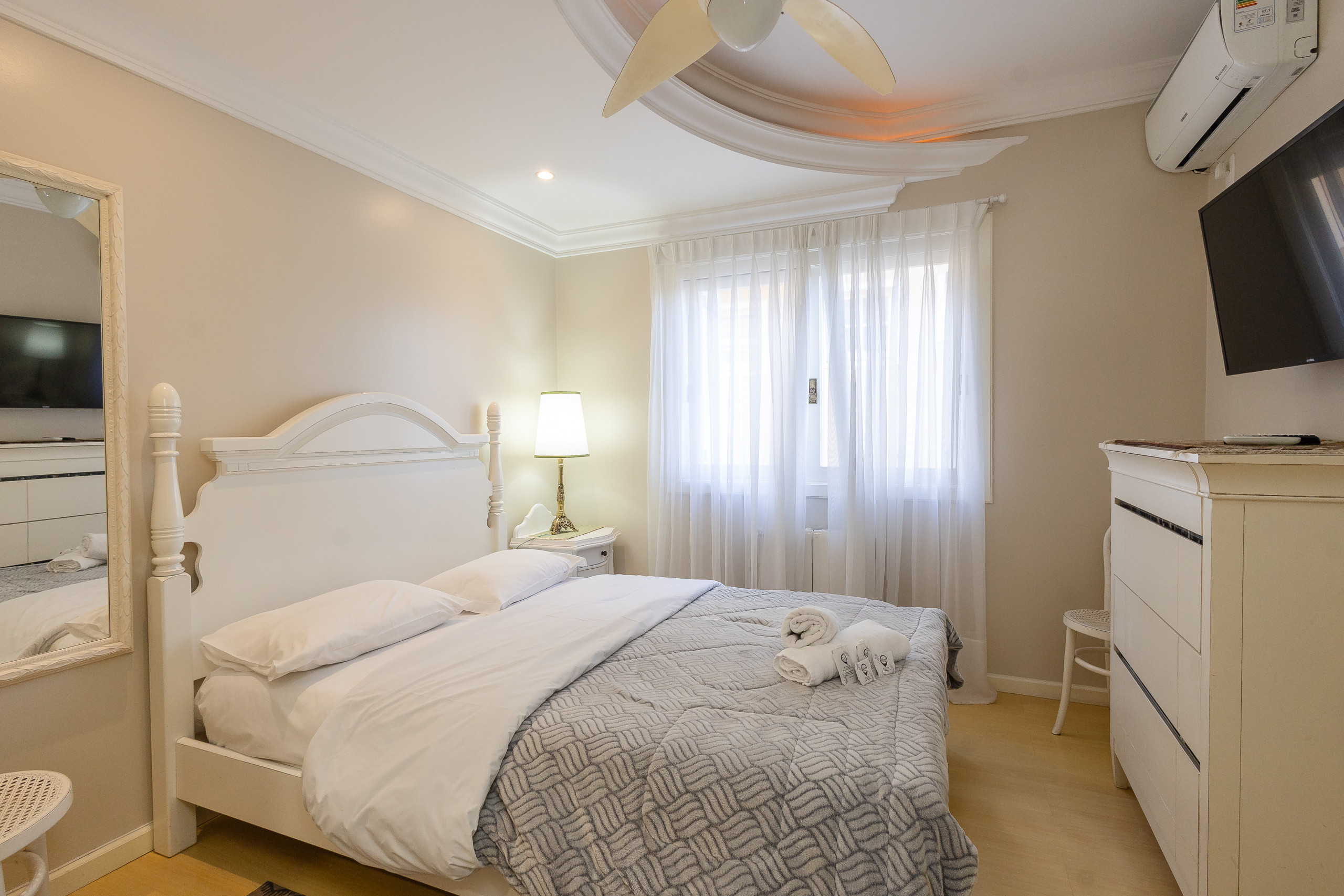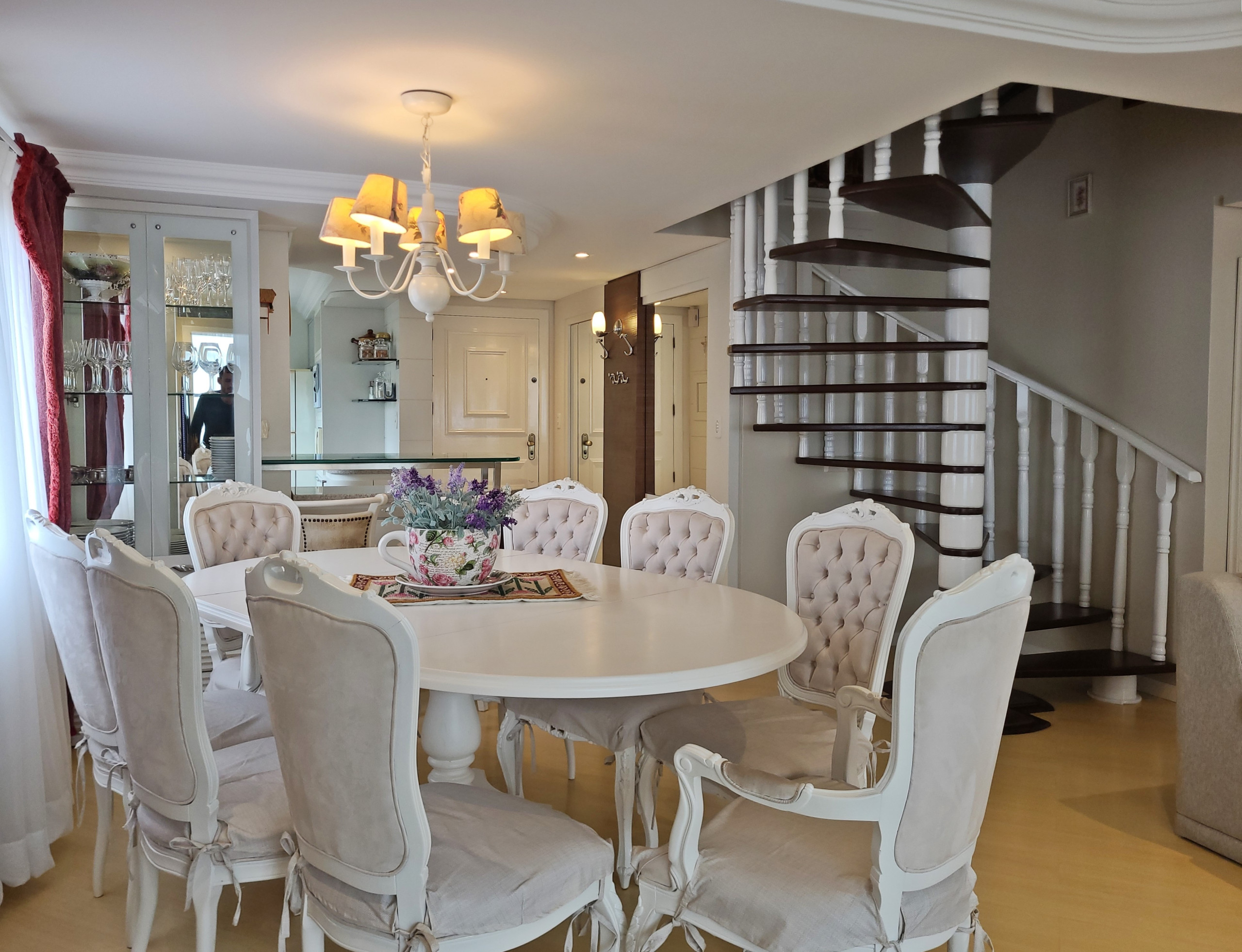 Apartamento dúplex amplio, con 4 suites y ajuar completo para su estancia! Ofrecemos wifi y dos plazas de garaje. Con un área de 180m2, el apartamento presenta en el nivel principal un salón con tres ambientes y calefactor (estar, comedor y barbacoa Gourmet), cocina completa, lavandería (con lavadora y secadora) y dos suites. En la planta superior hay otras dos suites. El salón y las suites cuentan con aire acondicionado caliente/frío. ¡Vas a amarlo!