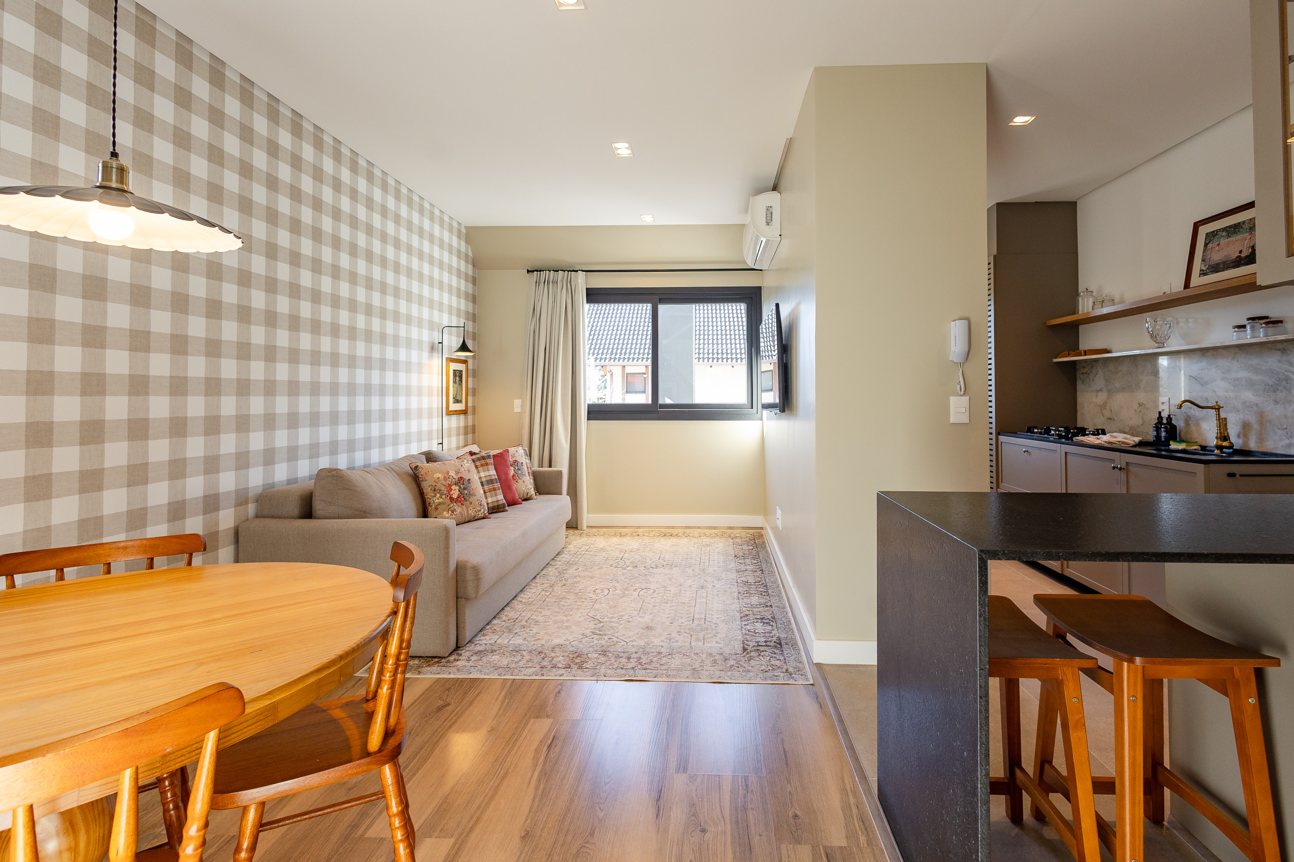 Bienvenido a nuestro moderno apartamento de un dormitorio, en el corazón de Gramado, a pocos pasos de las principales atracciones de la ciudad. Con suite y lavabo, el inmueble ofrece todo el confort para una estancia sin preocupaciones, con cama queen, sofá-cama de matrimonio, Smart TVs, lavadora y secadora, aire acondicionado caliente/frío, y ajuar de lujo. Además, cuenta con plaza de garaje. ¡Aproveche la ubicación central y reserve ahora para vivir lo mejor de Gramado!