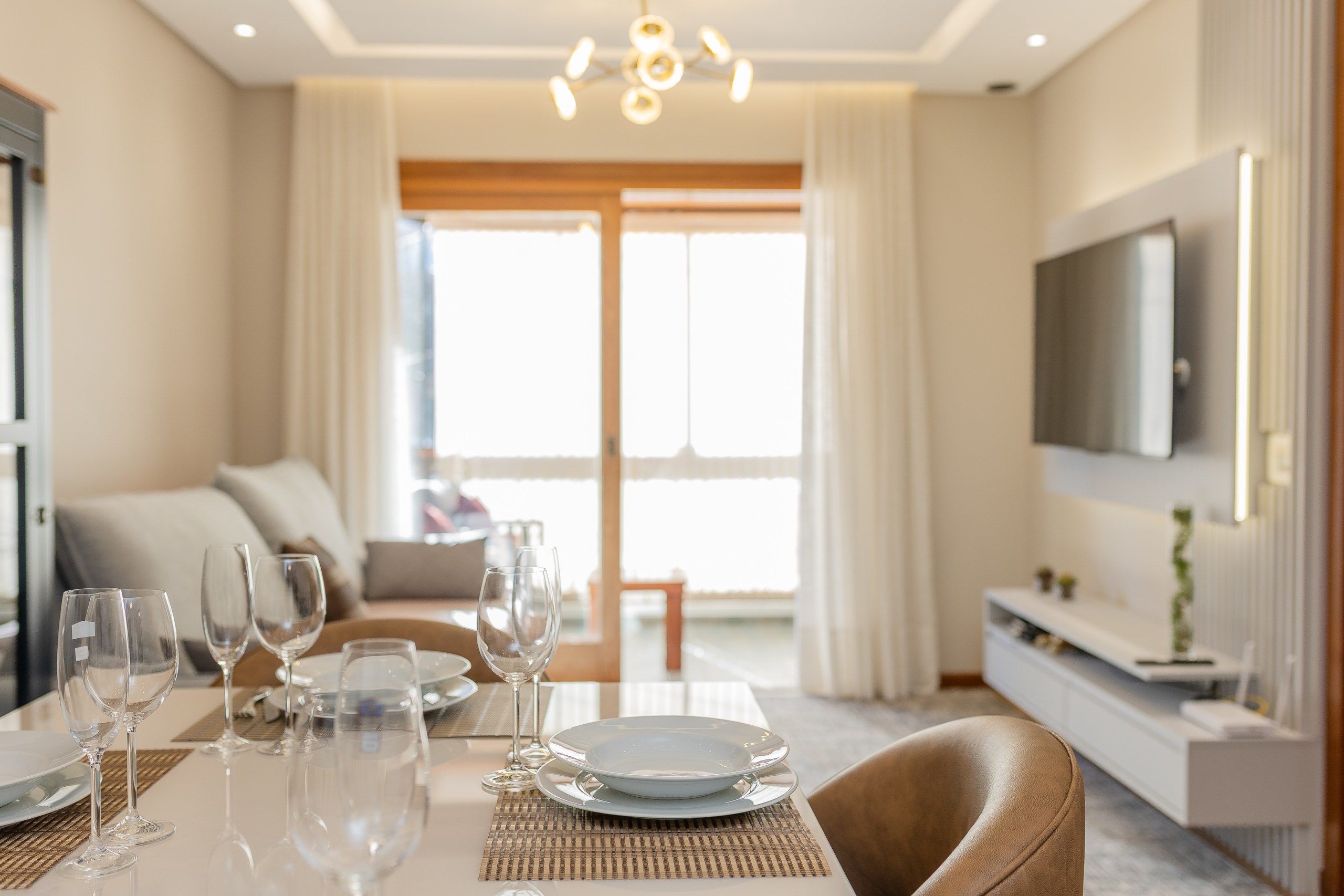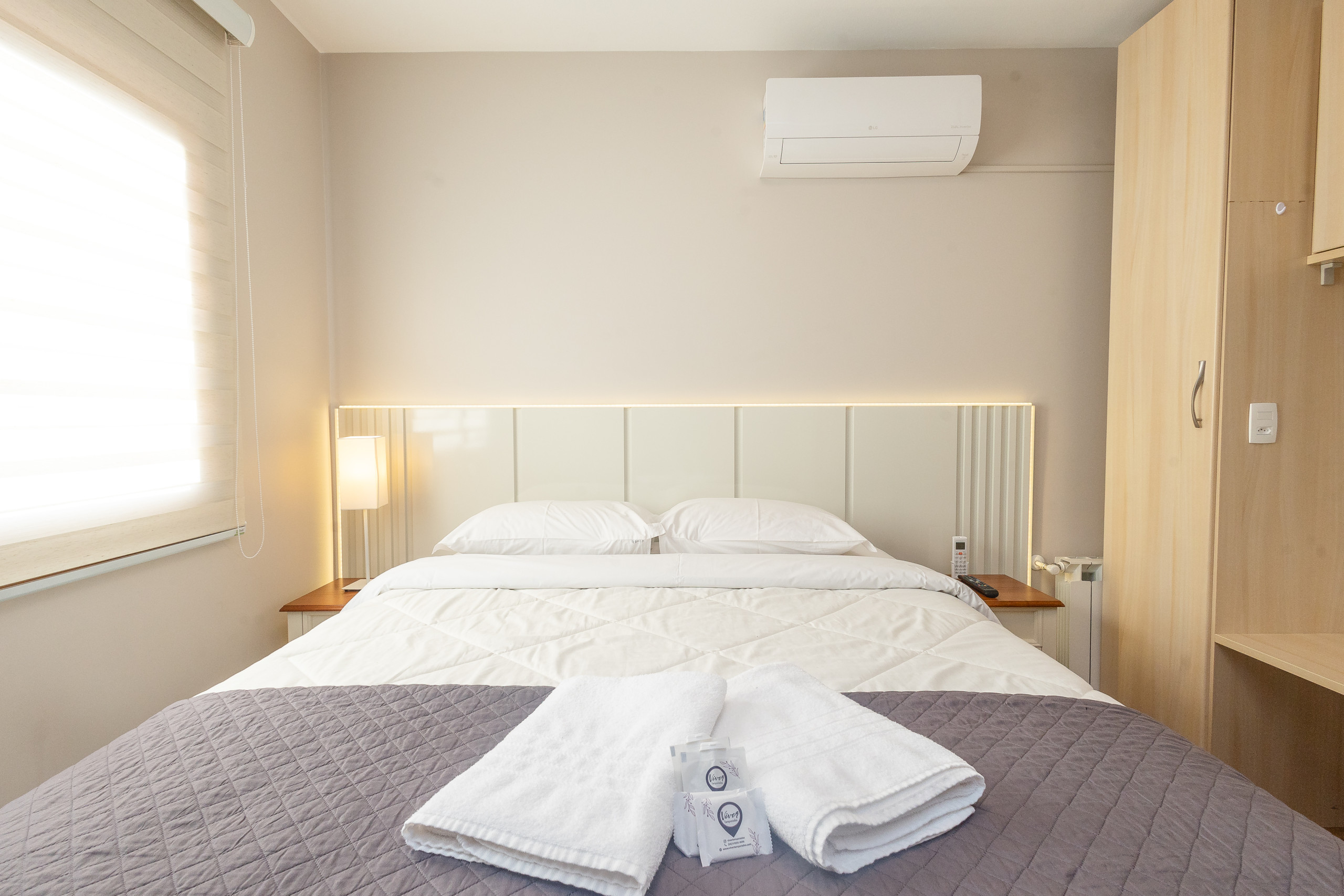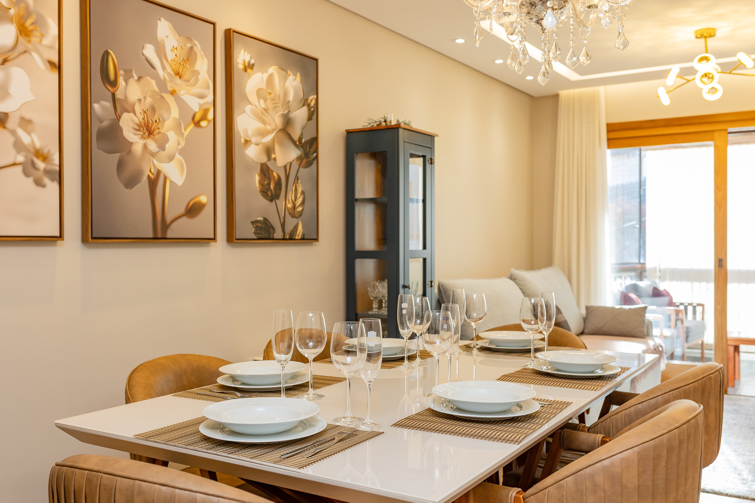El apartamento cuenta con dos habitaciones cómodamente equipadas, ofreciendo una distribución flexible de camas: una cama individual, dos camas queen size y un sofá-cama doble en la sala, garantizando que todos tengan un lugar acogedor para descansar. El aire acondicionado en las habitaciones proporciona el clima ideal para un sueño tranquilo.
