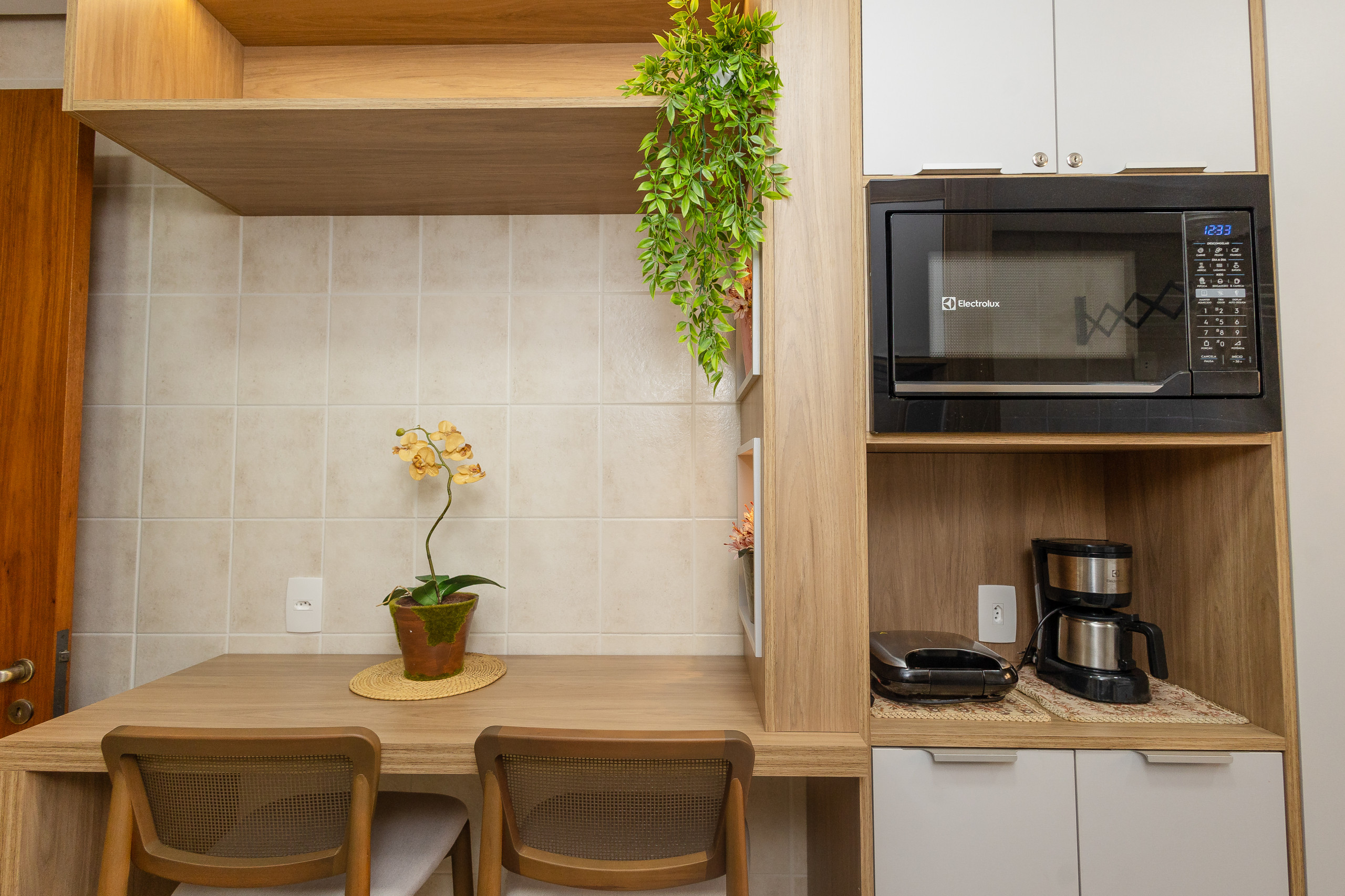 En la cocina independiente, encontrará todos los electrodomésticos necesarios para preparar deliciosas comidas en familia: refrigerador, congelador, lavadora, secadora, horno, microondas, además de utensilios completos para hacer la cocina un momento divertido. La cafetera y la licuadora son bonos extras para sus momentos de relajación.