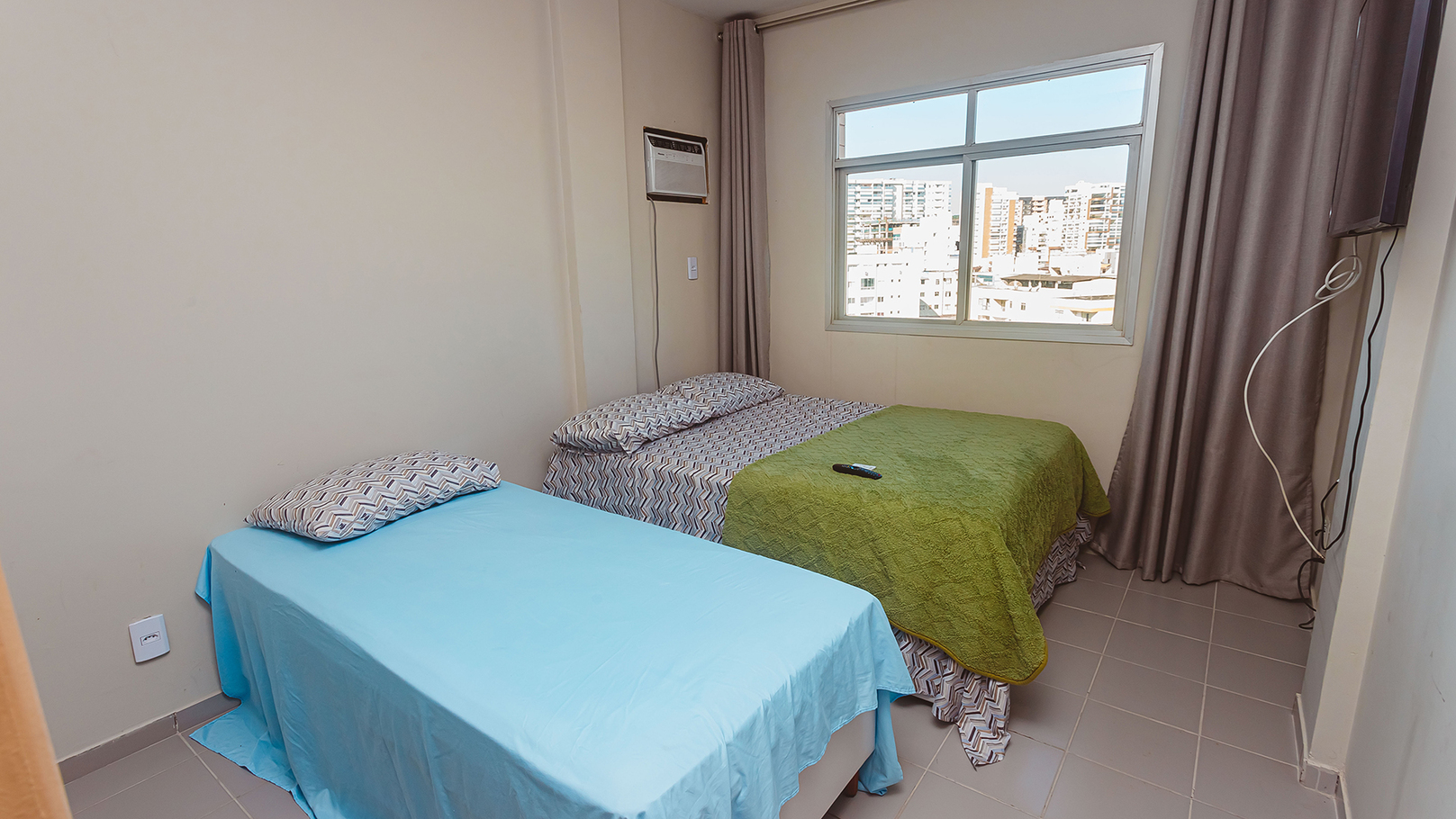 - Habitación 1 (suite): cama queen, cama individual, aire acondicionado y Smart TV 50