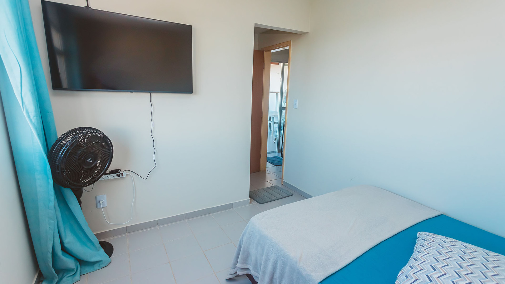 - Habitación 3 (planta superior): cama de matrimonio, ventilador portátil y Smart TV 50
