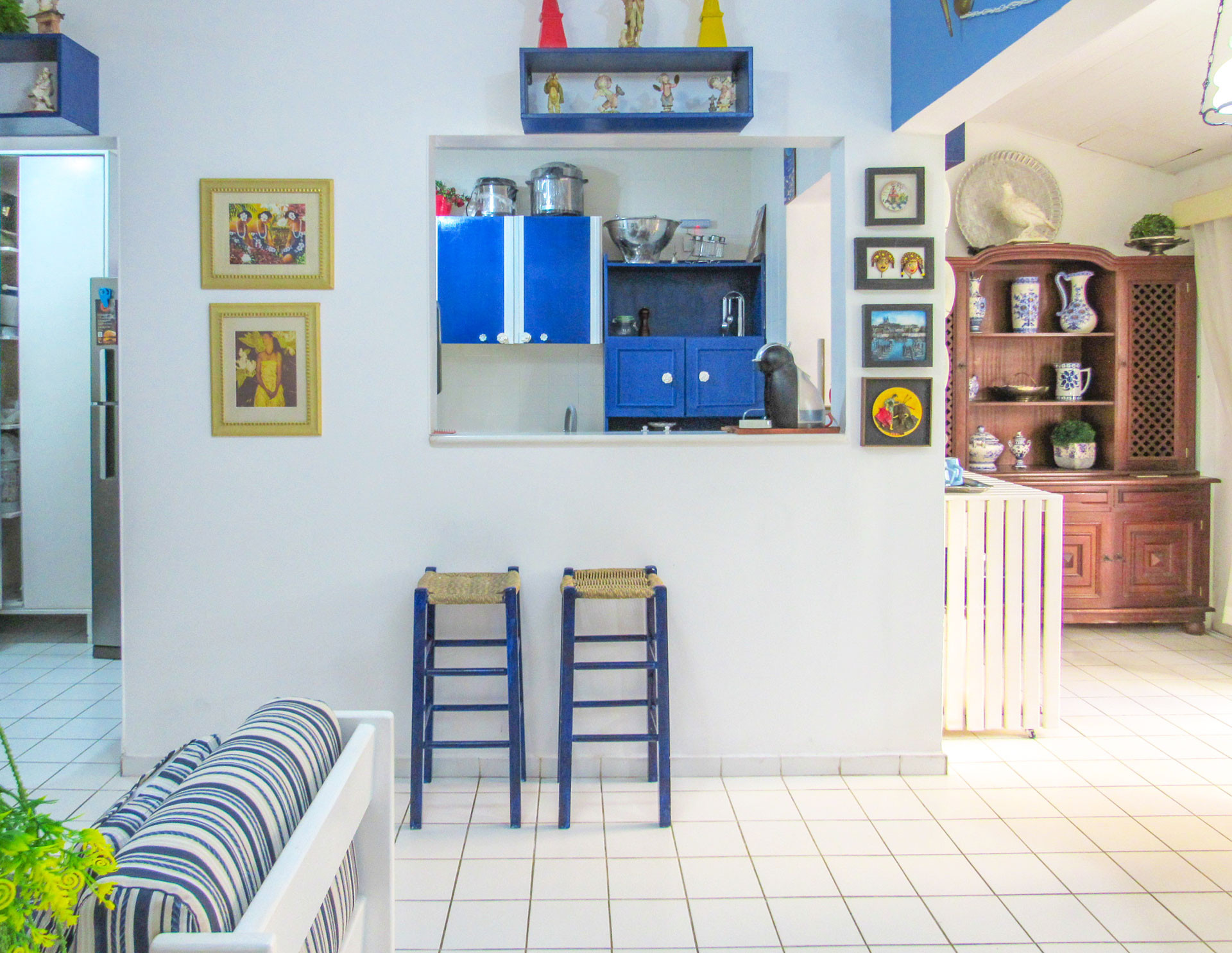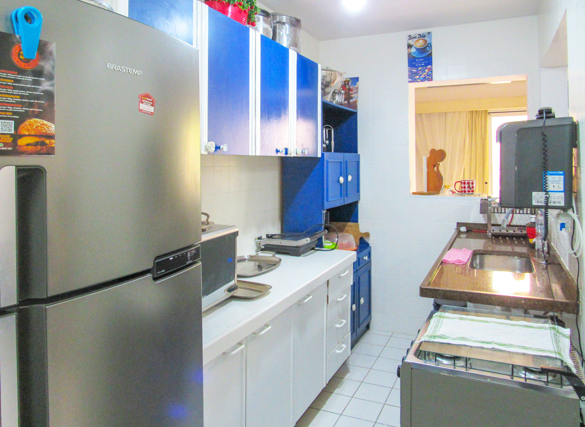- En la cocina americana encontrarás cocina, refrigerador, microondas, licuadora, freidora eléctrica, cafetera eléctrica, olla a presión eléctrica, parrilla, filtro de agua de pared, ollas, vajilla y utensilios variados