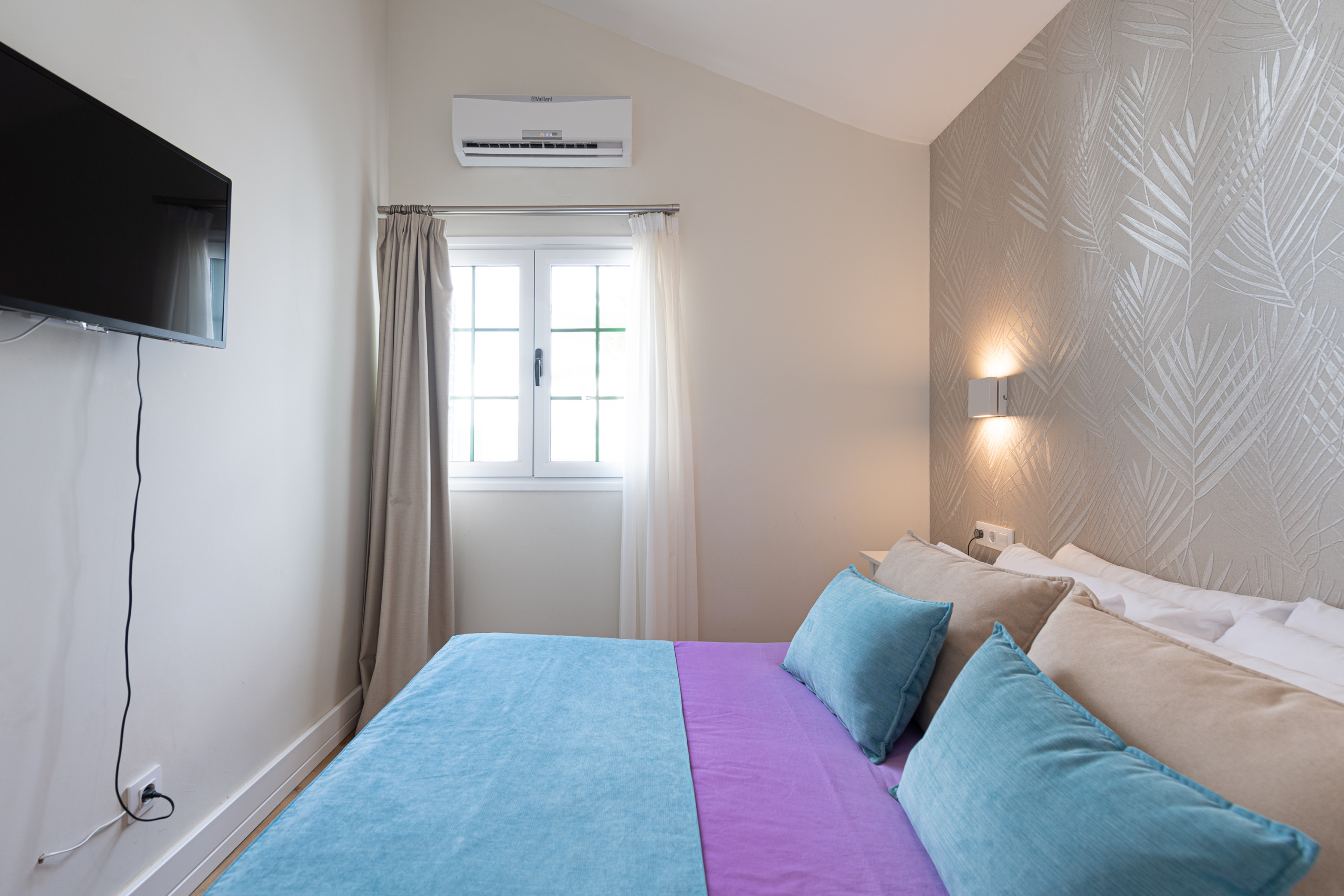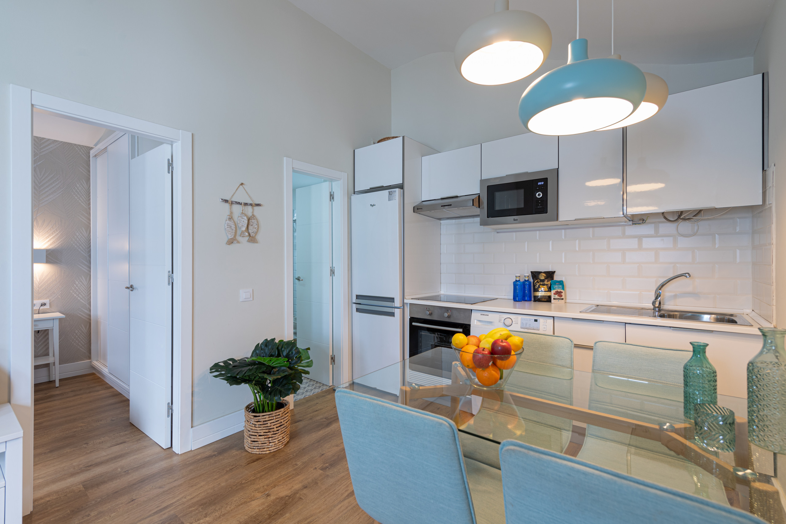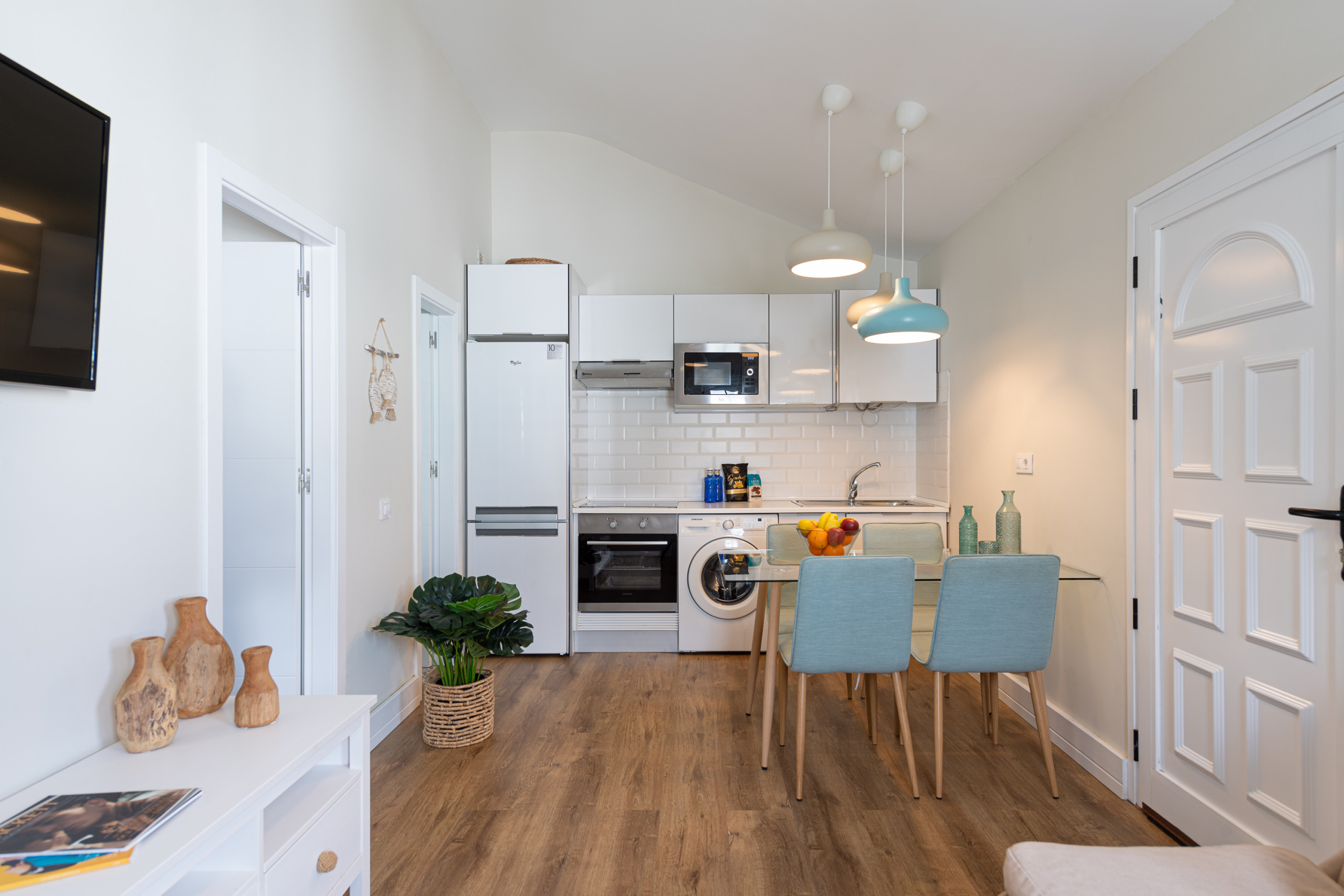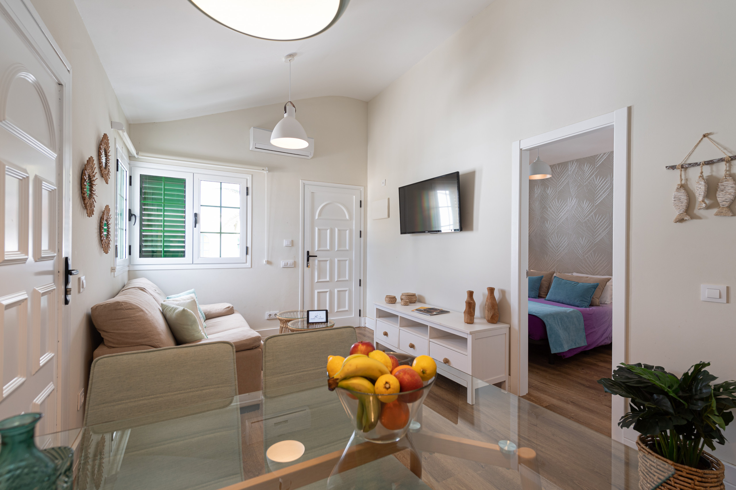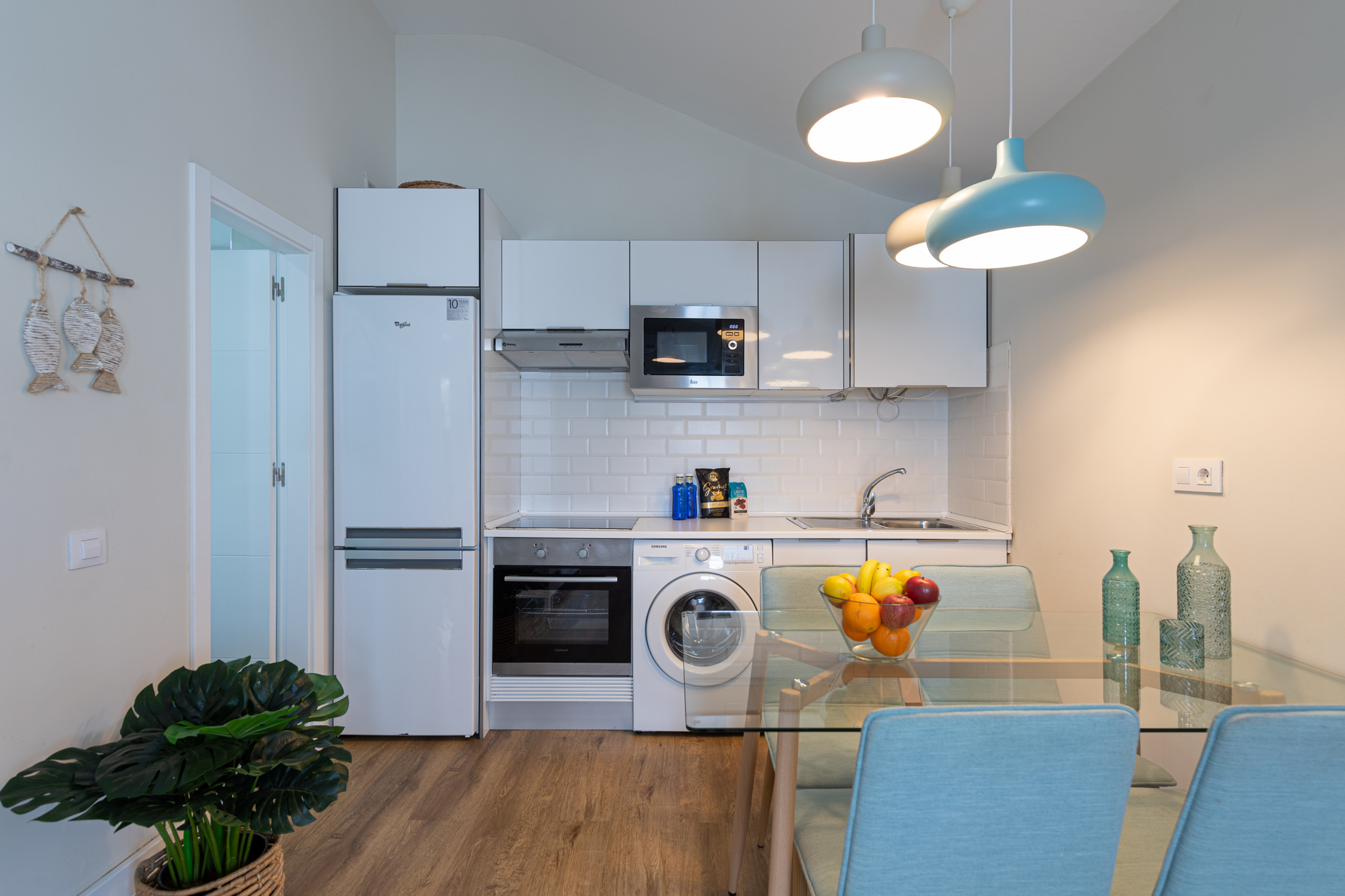 Tanto el dormitorio como el salón están climatizados y disponen de televisión para su entretenimiento. La cocina americana está completamente equipada con todo lo necesario para sentirse como en casa: vitrocerámica, nevera, horno, microondas, lavadora, cafetera, tostadora, hervidor, exprimidor y utensilios de cocina.