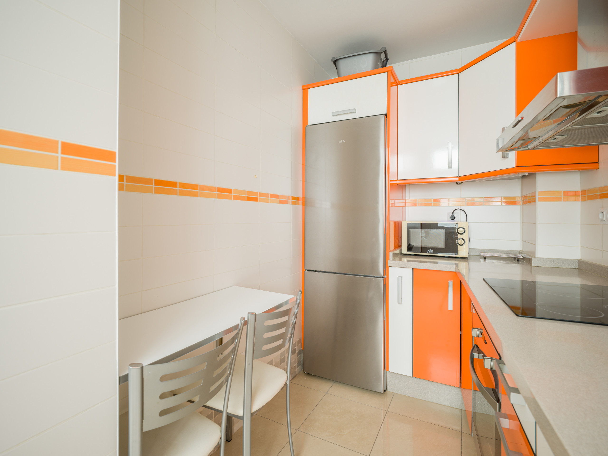 La cocina independiente, de inducción, está equipada con nevera, microondas, horno, congelador, lavavajillas, vajilla/cubertería, utensilios/cocina, cafetera, tostadora, hervidor de agua y exprimidor.