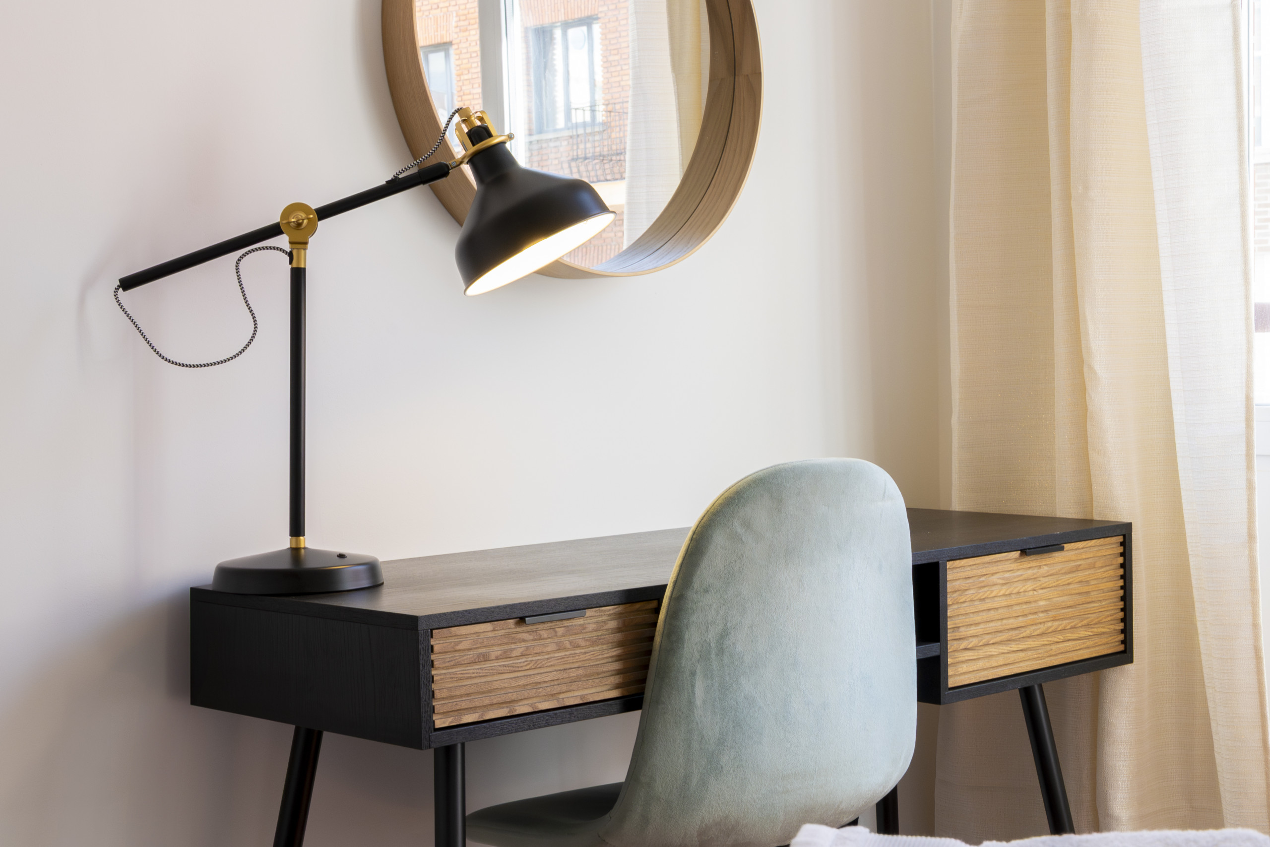 El dormitorio principal está equipado con una cómoda cama doble, un amplio armario para guardar tus pertenencias y un práctico escritorio, ideal si necesitas trabajar o estudiar durante tu estancia. Todo está pensado para que te sientas como en casa desde el primer momento.