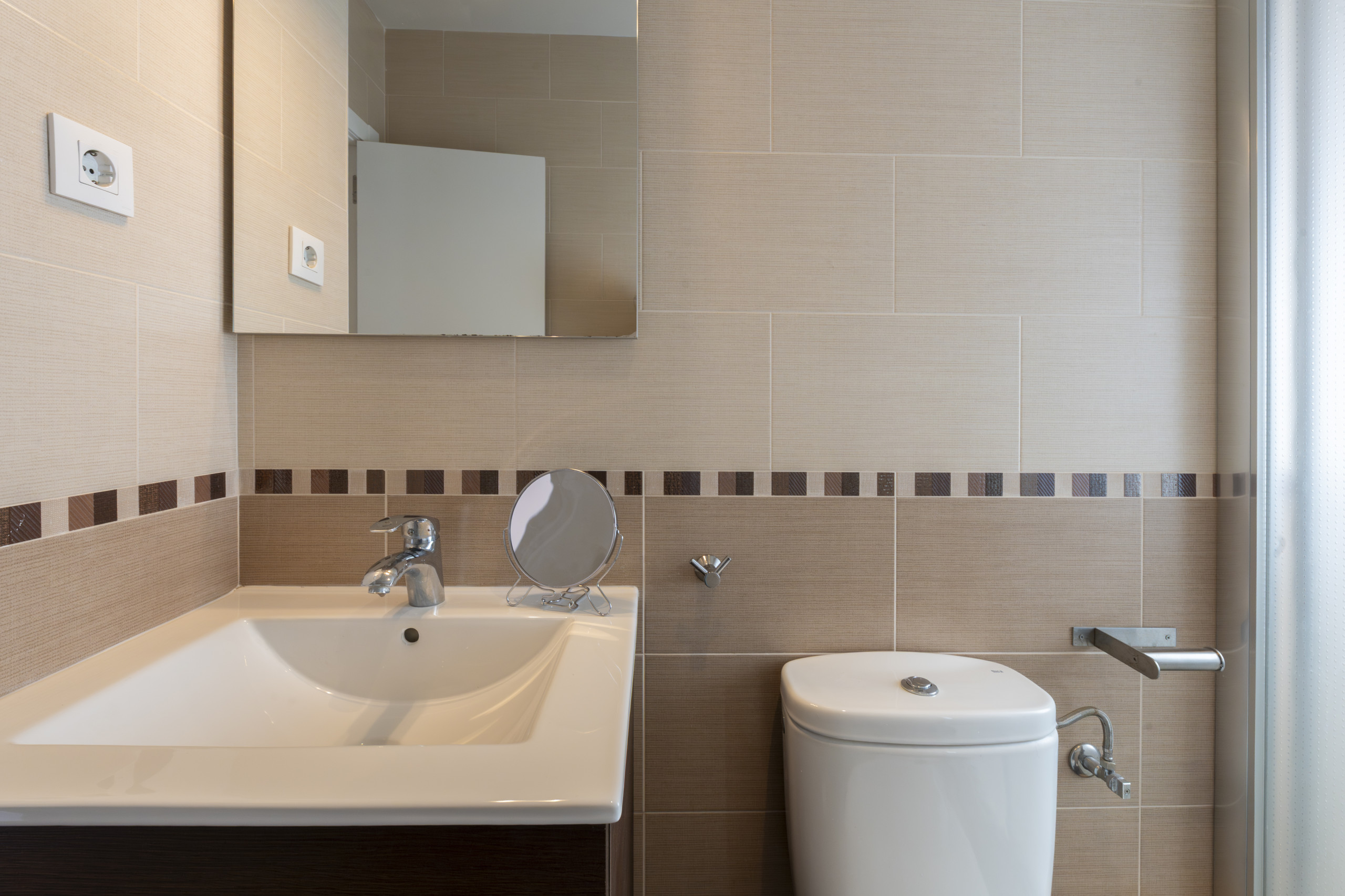 El baño es moderno y funcional, con un plato de ducha y secador de pelo, para que puedas prepararte con comodidad tanto por la mañana como por la noche.