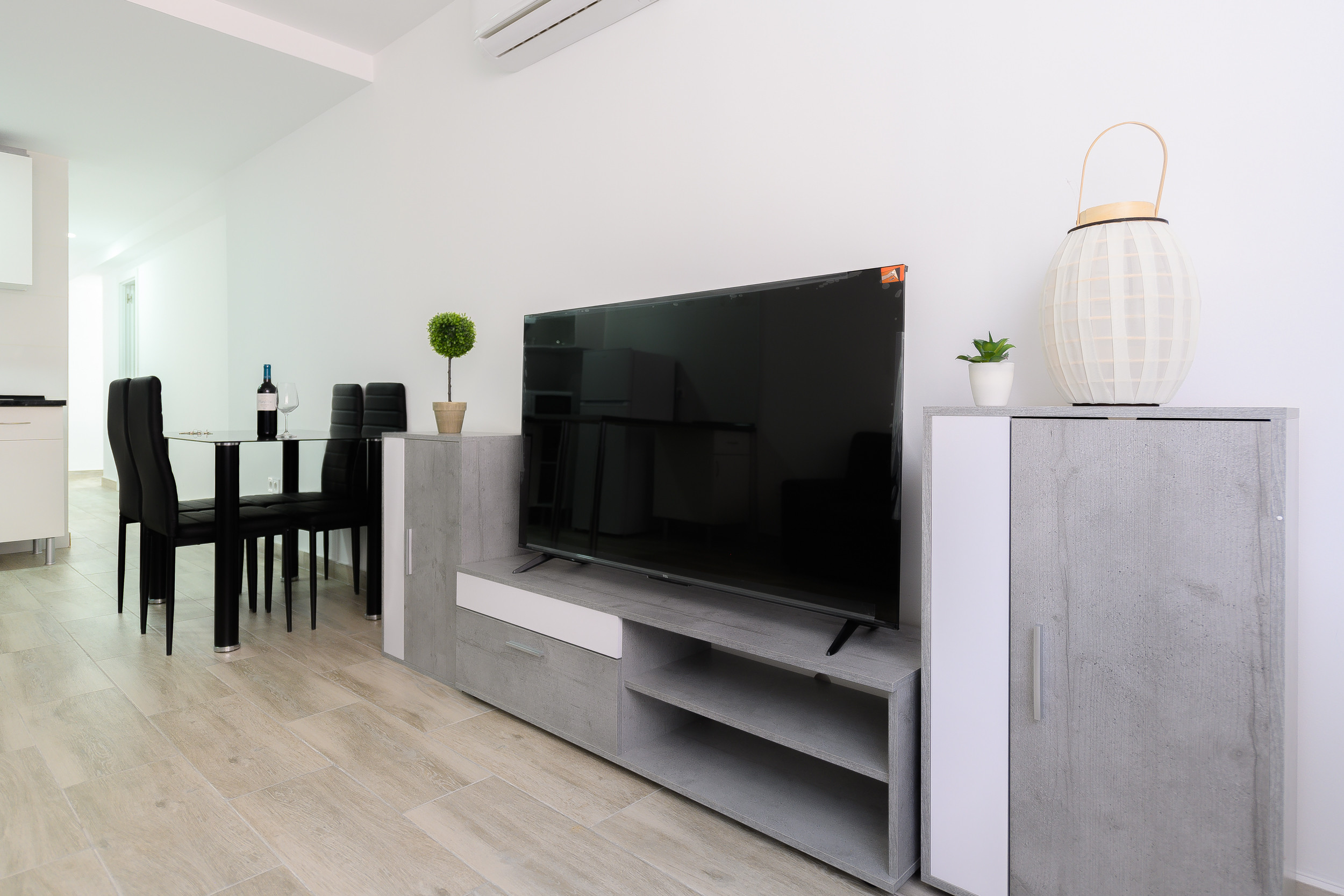 El salón es un espacio versátil, ideal para relajarse o recibir visitas. Equipado con un cómodo sofá cama, este lugar puede transformarse fácilmente en una zona para dormir en caso de que haya invitados. La televisión de pantalla plana, estratégicamente colocada frente al sofá, ofrece una gran experiencia audiovisual. Además, la conexión a internet ideal tanto para el ocio como para el trabajo remoto.