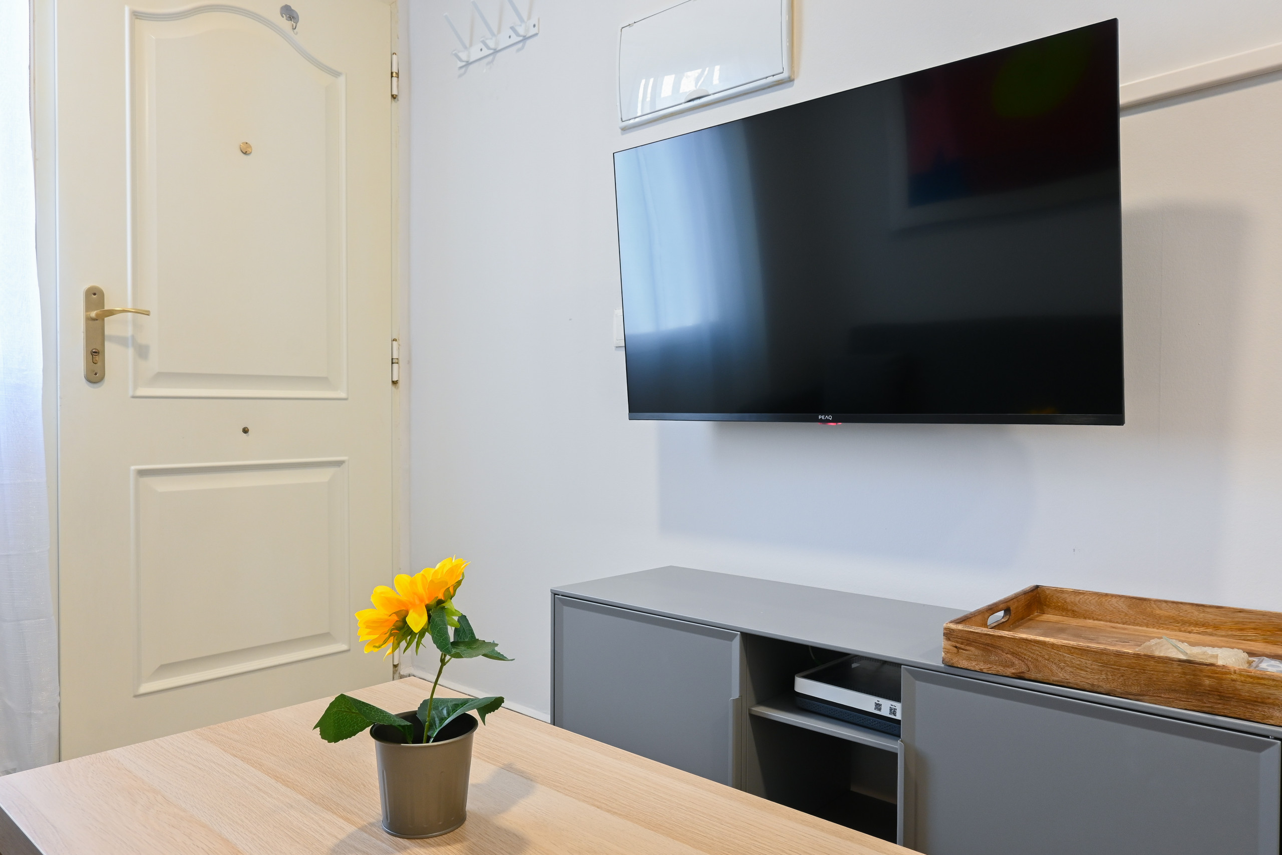 El salón es el corazón de esta vivienda, un espacio versátil que no solo invita a relajarse en su cómodo sofá cama, sino que también está preparado para el entretenimiento con una televisión y acceso a internet de alta velocidad. Este es el lugar perfecto para disfrutar de sus series favoritas o trabajar desde casa con total comodidad.