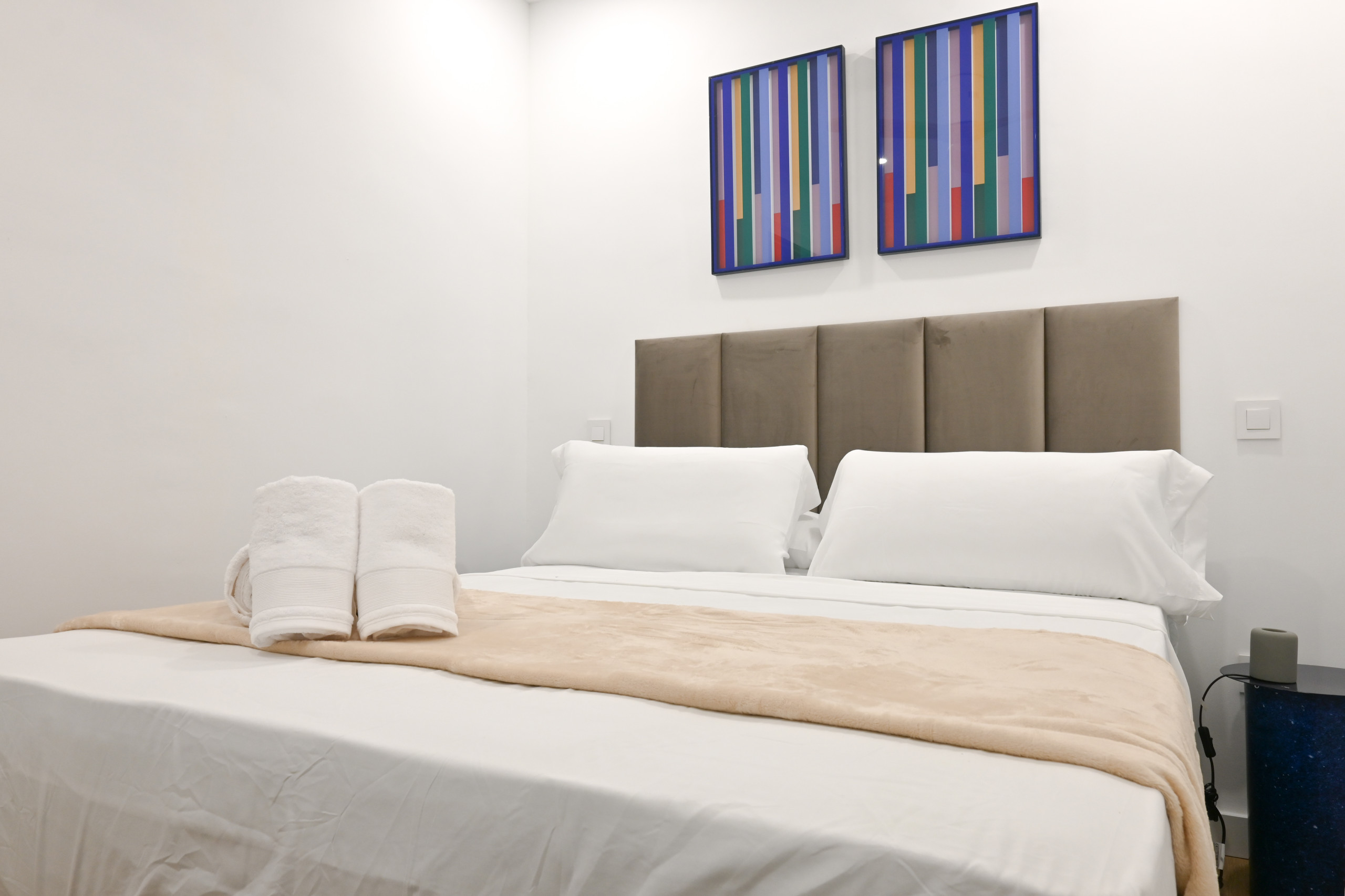 Cada uno de los tres dormitorios ha sido amueblado con exquisito gusto, presentando cómodas camas matrimoniales que prometen noches de sueño reparador. Los suaves tonos y los detalles decorativos cuidadosamente seleccionados añaden un toque de sofisticación y calidez a cada habitación, creando un ambiente sereno y acogedor que invita al descanso y la relajación.