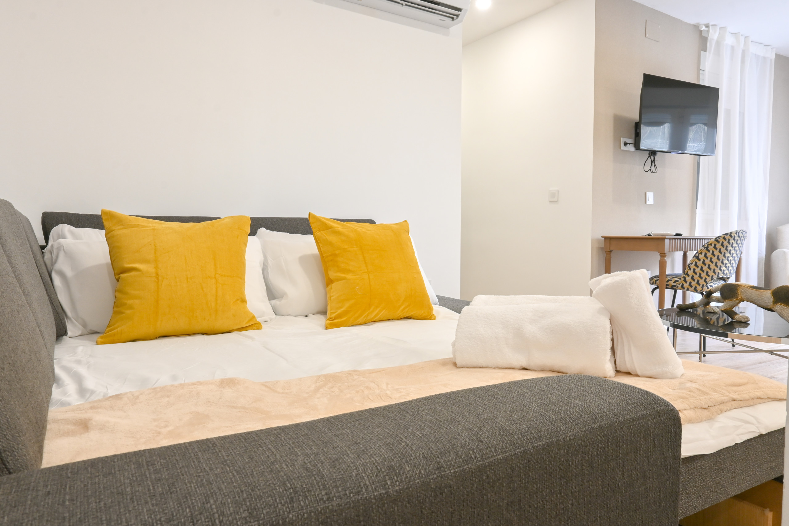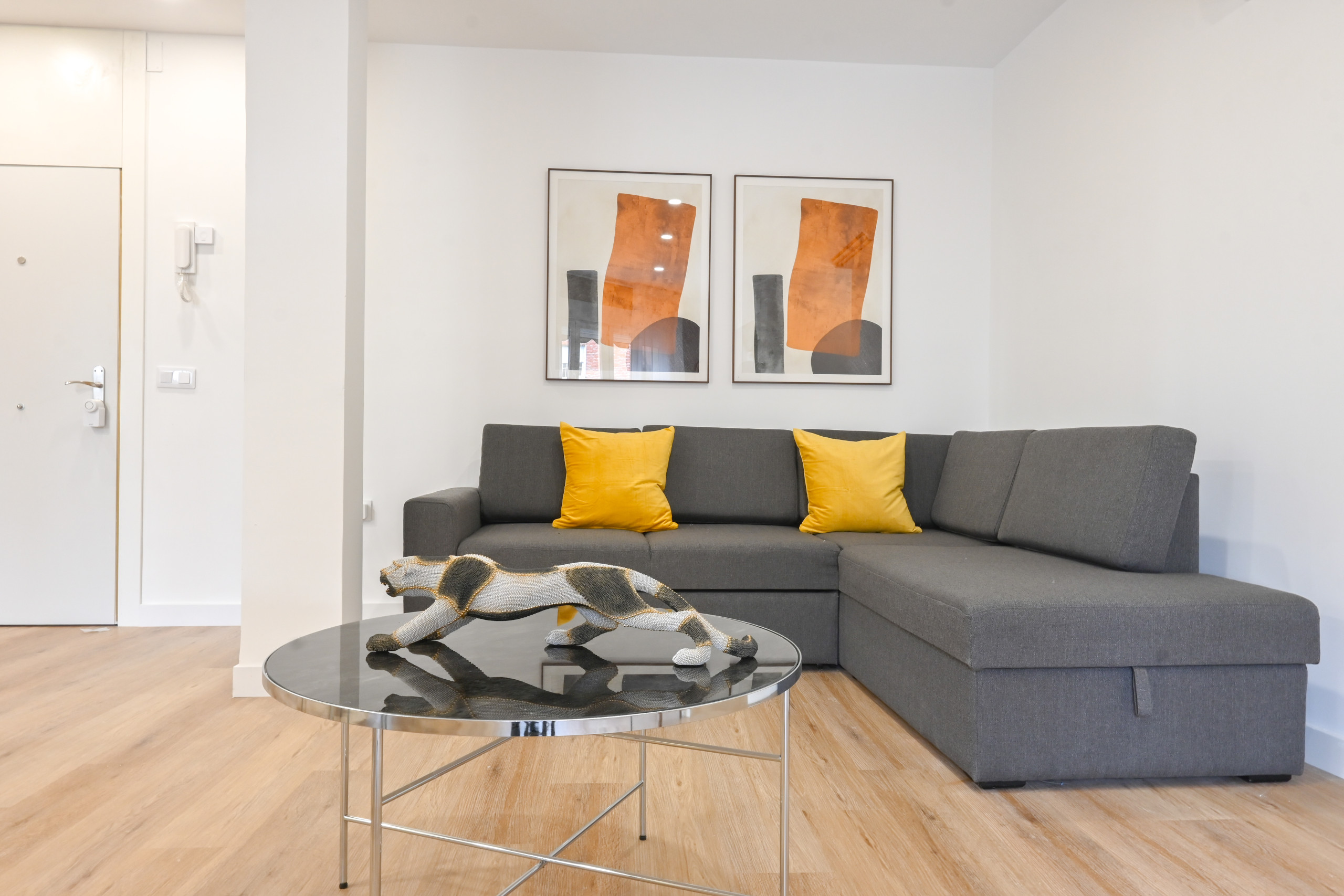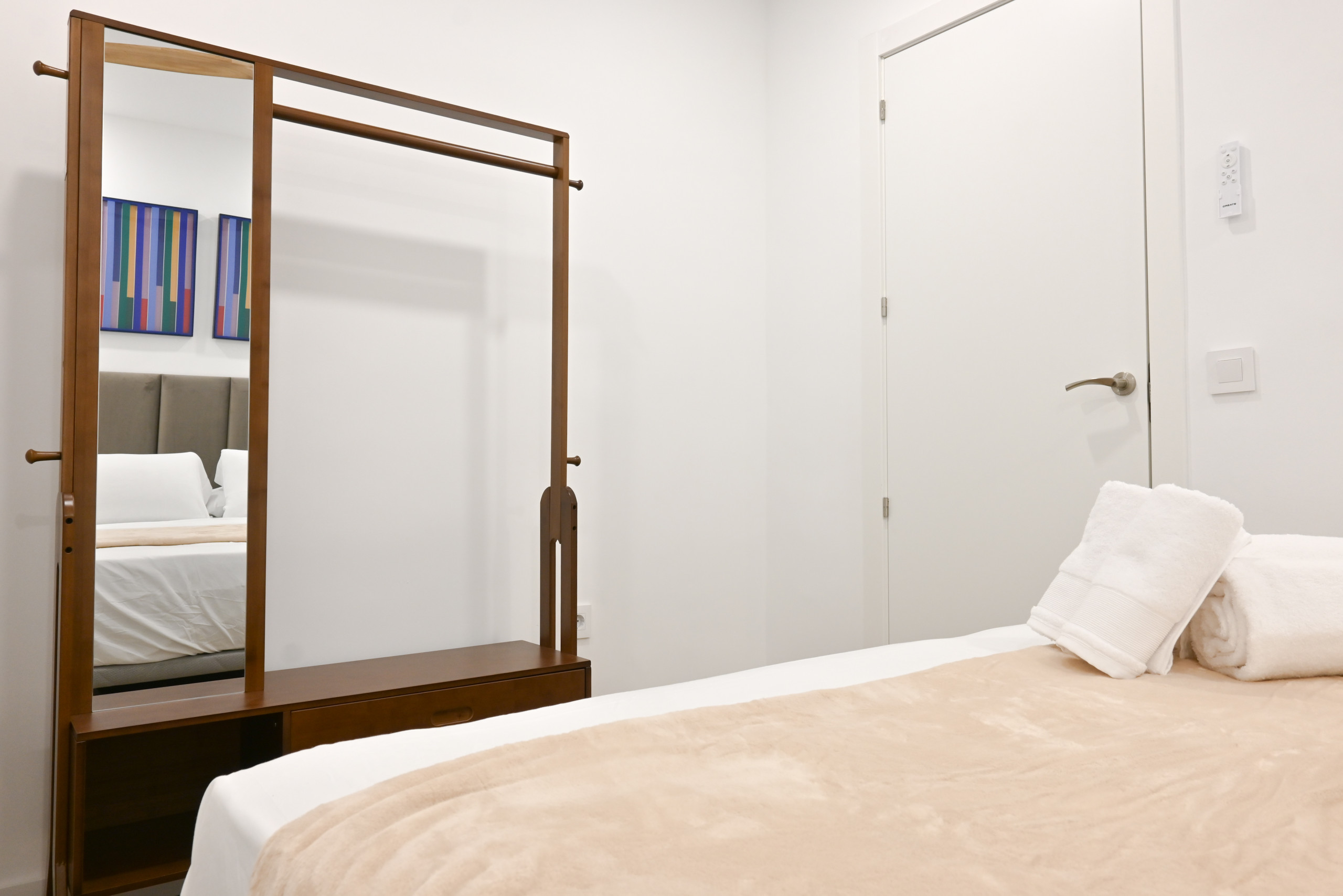 Además, el apartamento cuenta con una cómoda mesa de escritorio, proporcionando un espacio dedicado para trabajar o estudiar desde la comodidad de tu hogar. Un elegante sillón invita a disfrutar de momentos de lectura o simplemente a relajarte mientras contemplas las vistas de la tranquila zona que rodea la vivienda.