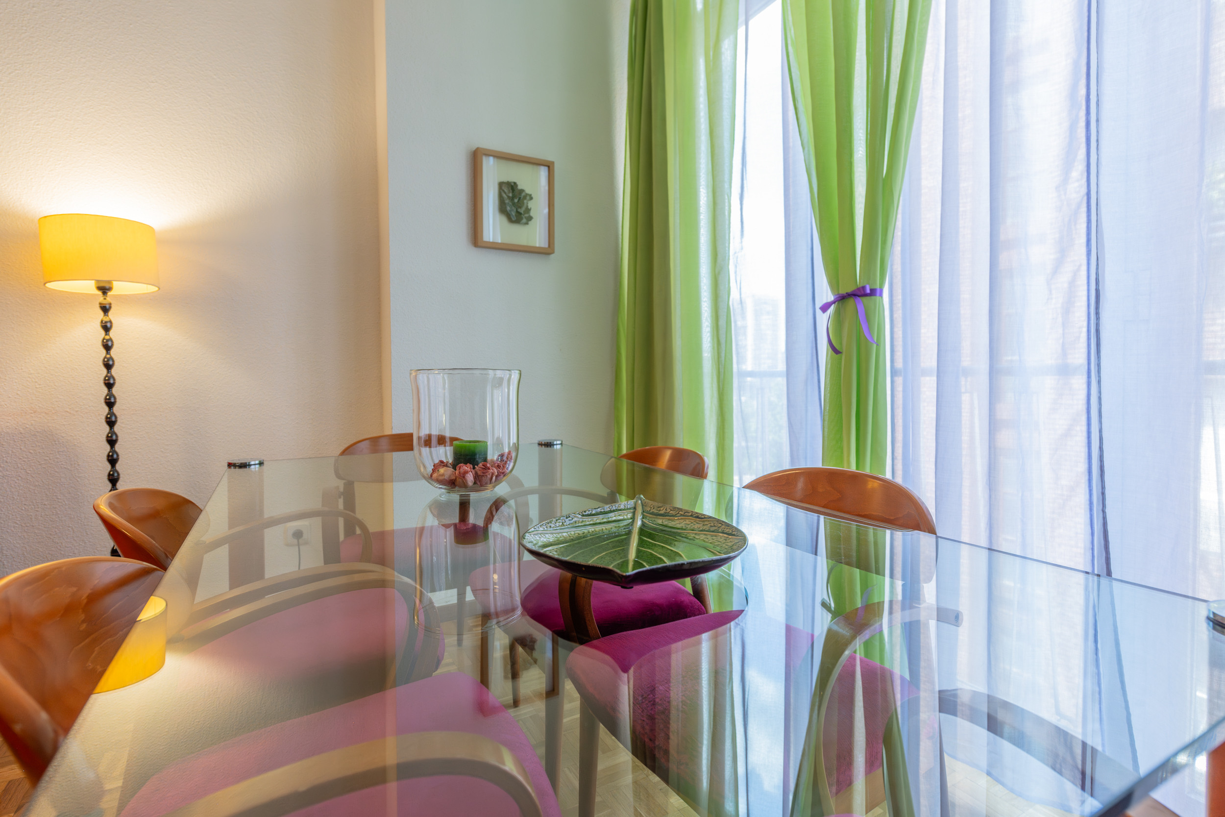 La cocina independiente está completamente equipada con modernos electrodomésticos, incluyendo nevera, horno, microondas y lavavajillas, así como todos los utensilios necesarios para preparar deliciosas comidas caseras. La ubicación del apartamento en una zona vibrante y céntrica te asegura un fácil acceso a tiendas, restaurantes y atracciones locales, además de excelentes conexiones con el transporte público para explorar la ciudad.