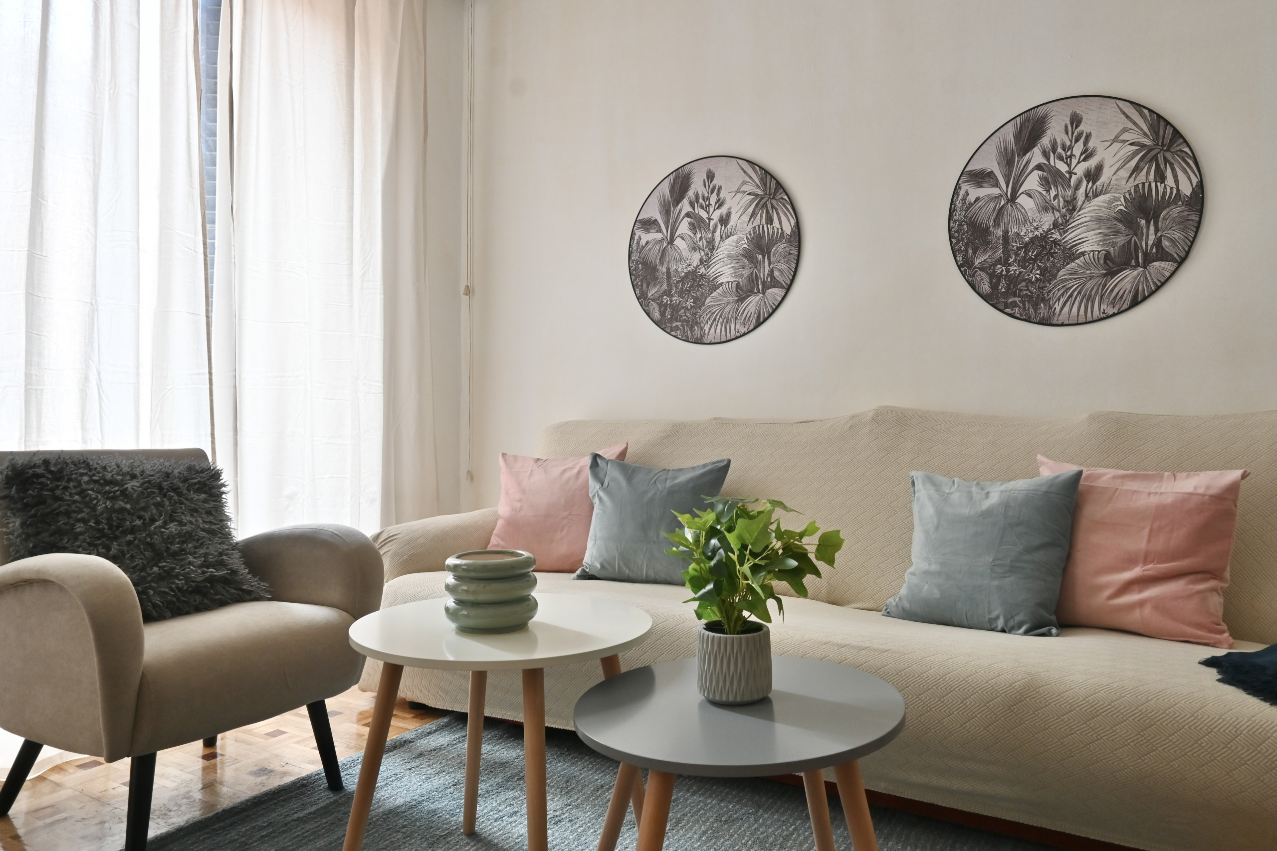 El salón comedor es el corazón de la vivienda, amplio, luminoso y decorado con un estilo contemporáneo. Grandes ventanales permiten que la luz natural llene el espacio, creando un ambiente cálido y acogedor. Desde el salón, se accede a balcones que ofrecen vistas encantadoras a la calle, permitiendo disfrutar del ajetreo y bullicio característicos de Malasaña.