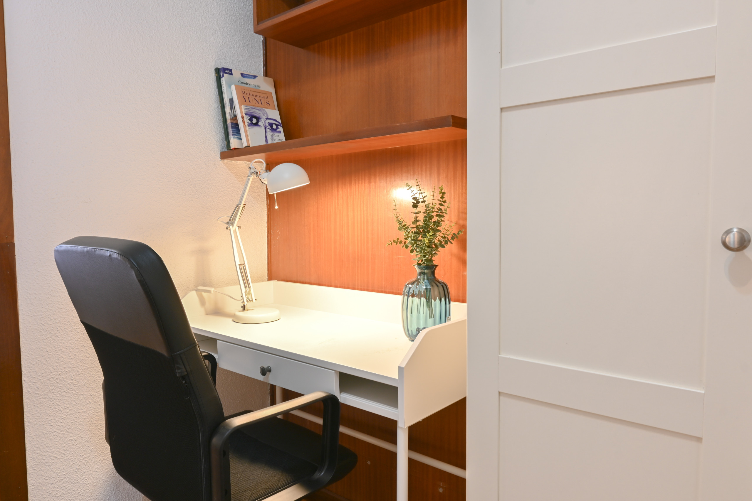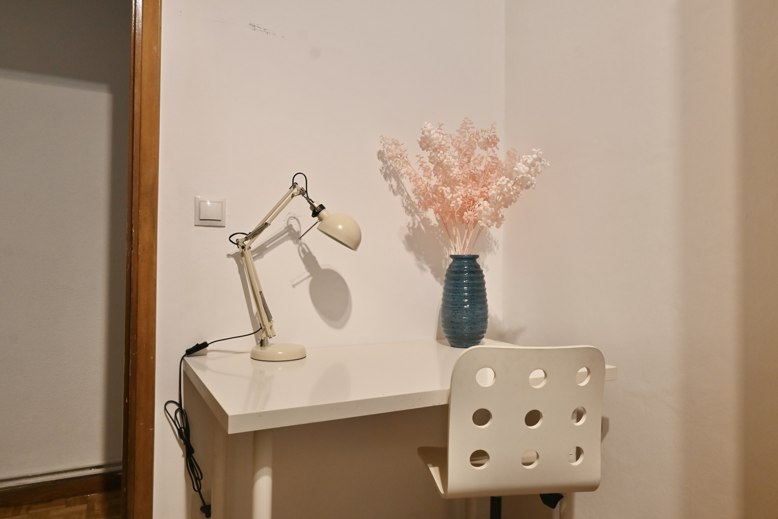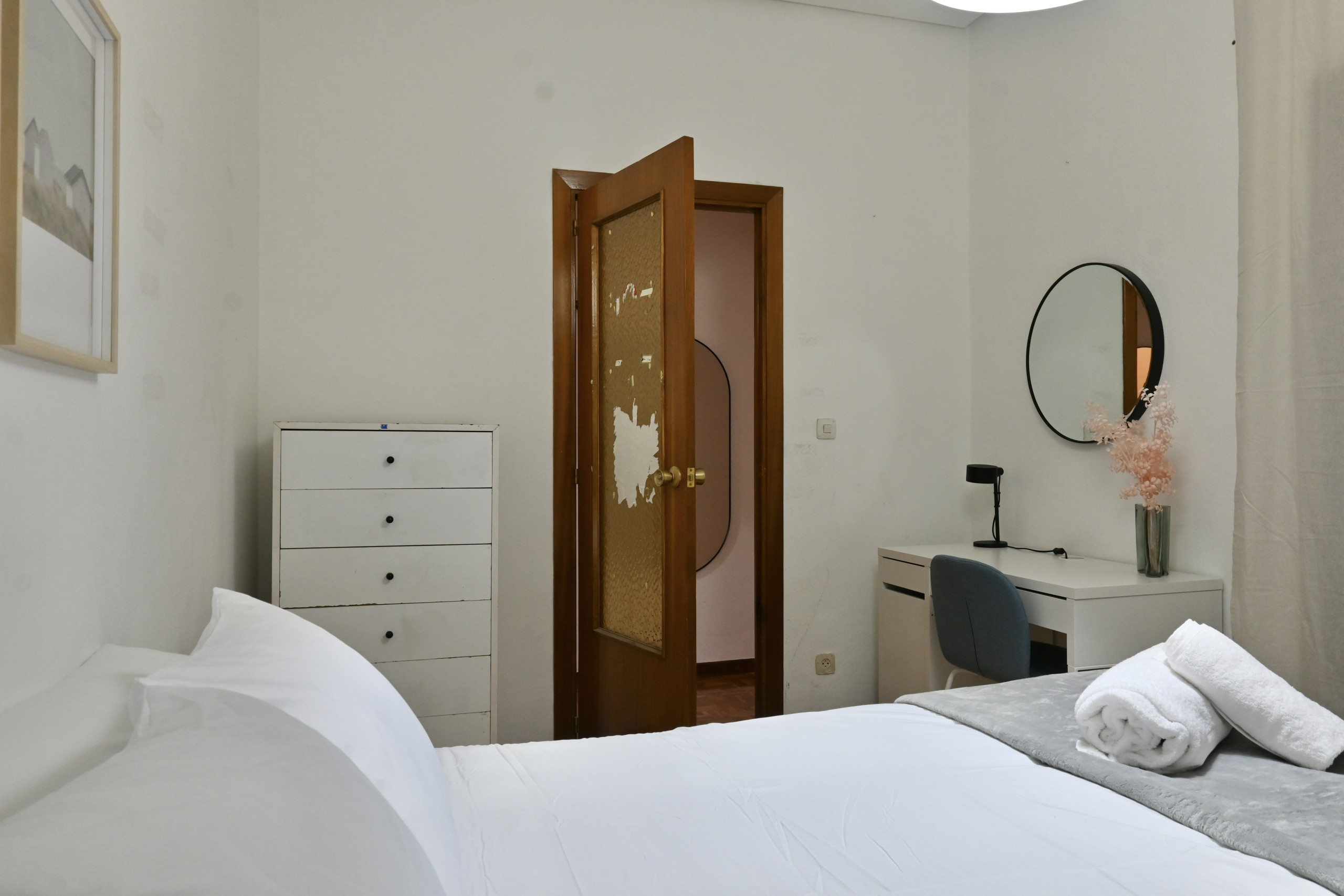Cada uno de los cuatro dormitorios presenta una cama matrimonial, ofreciendo un lugar acogedor y relajante para descansar. Las habitaciones están cuidadosamente decoradas, creando ambientes únicos y llenos de personalidad. Cada dormitorio cuenta también con una mesa de escritorio, proporcionando un espacio tranquilo y funcional para trabajar o estudiar.