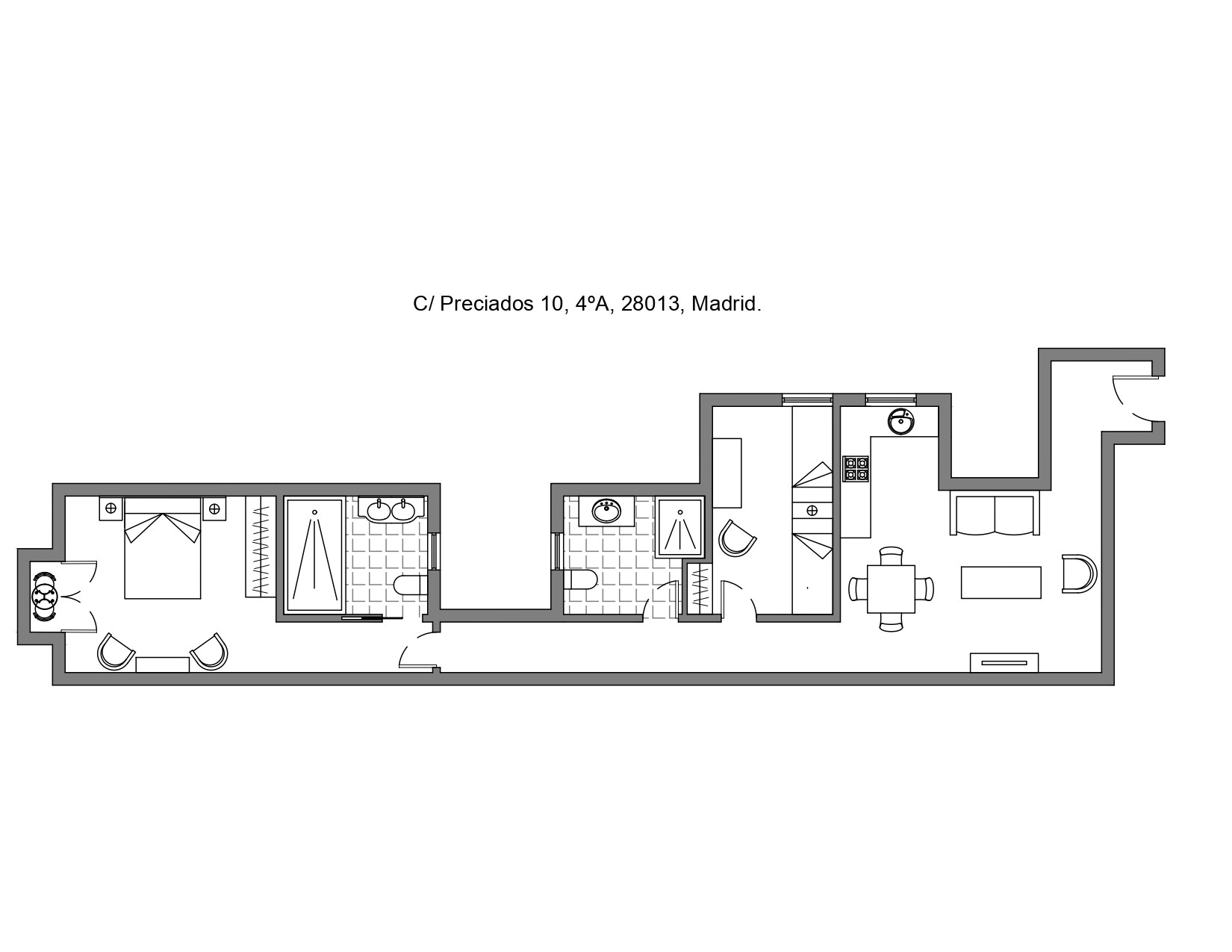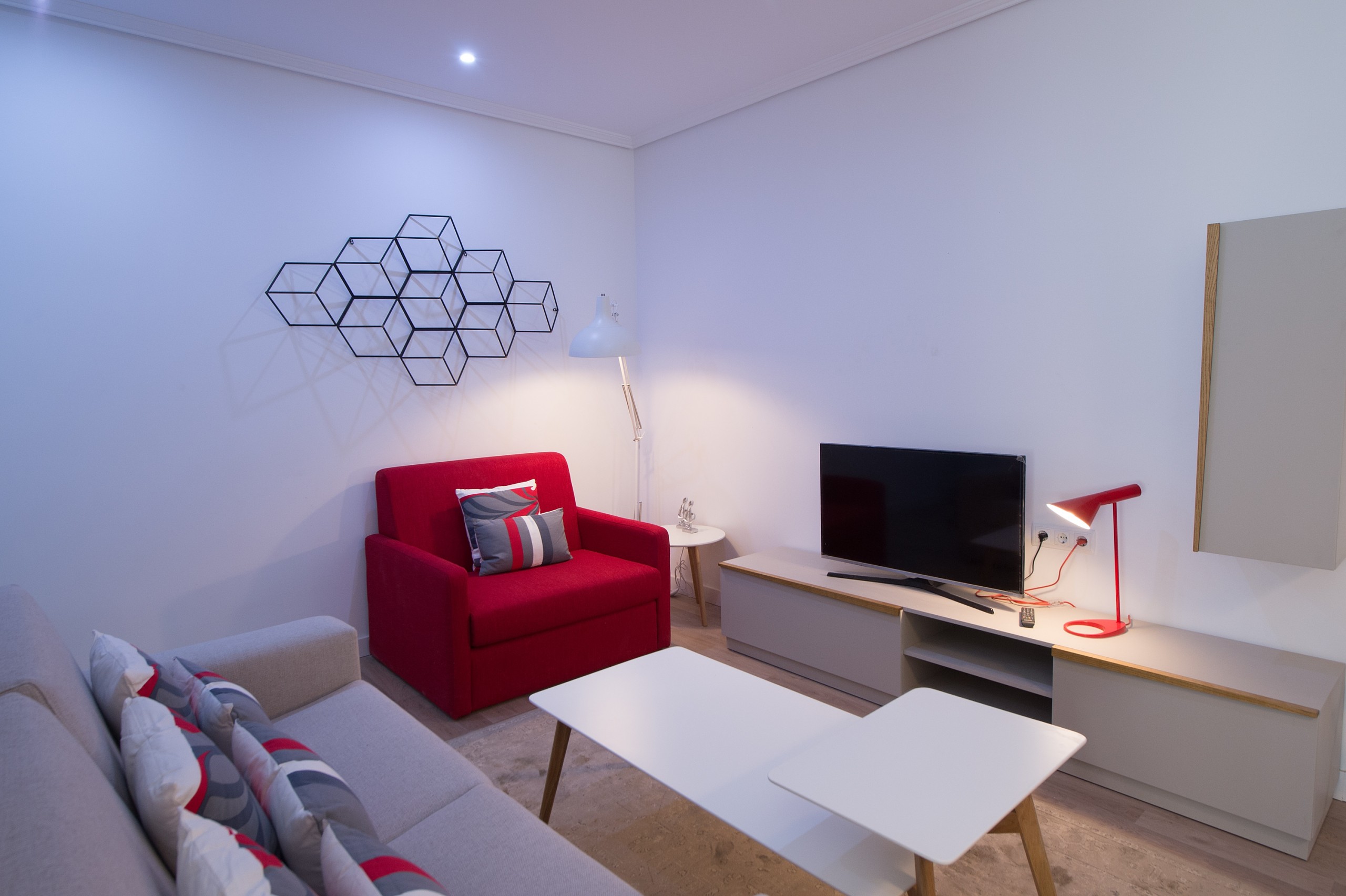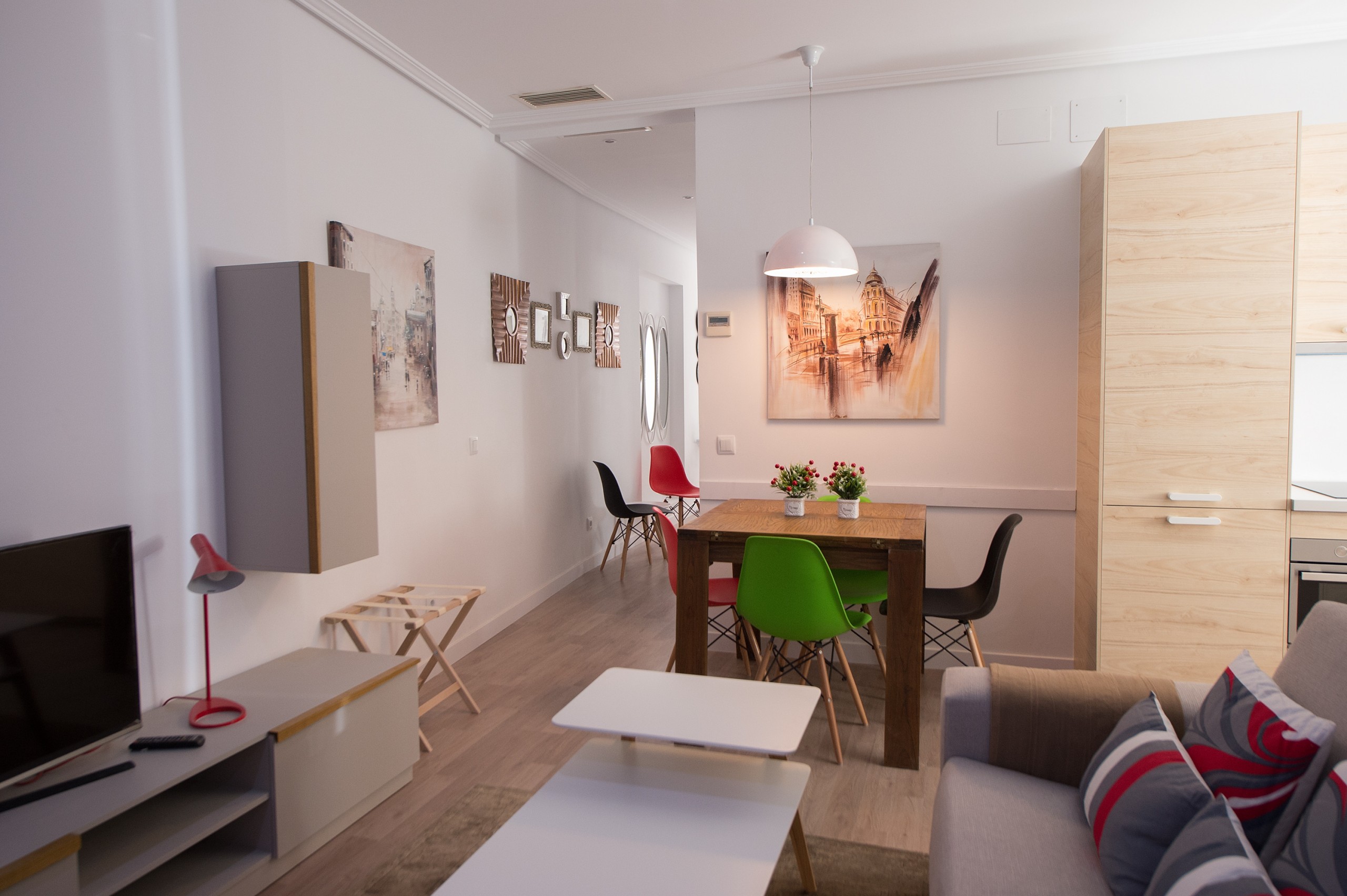Piso nuevo compuesto de dos habitaciones, una de ellas con cama de 150, con baño en suite para dos personas, y balcón a la calle del Carmen y la otra con cama de 150, con capacidad para dos personas. En el salón, un sofá cama con chaise-longue, con capacidad para una persona