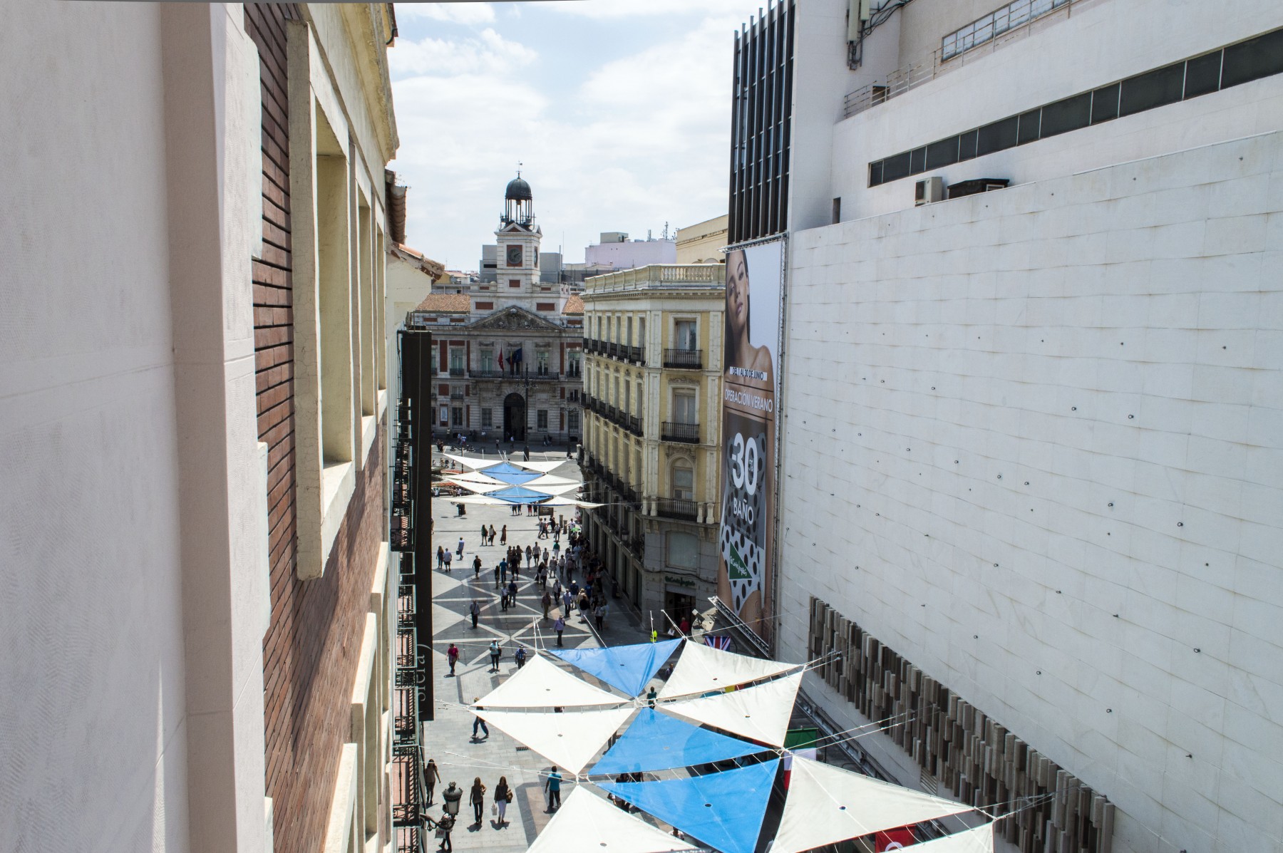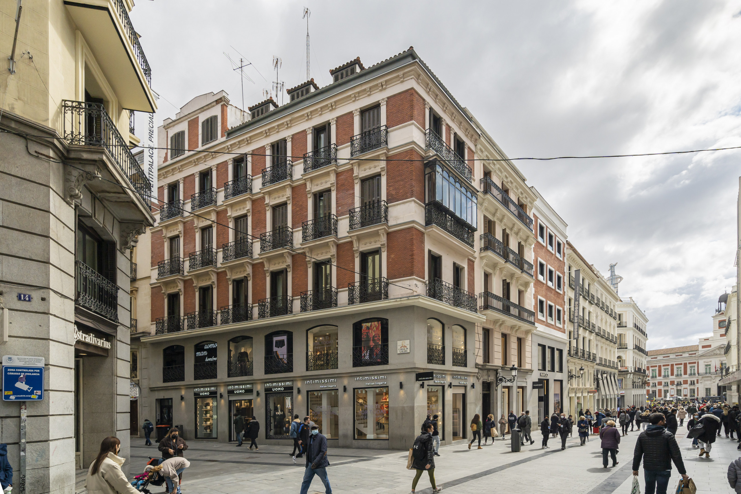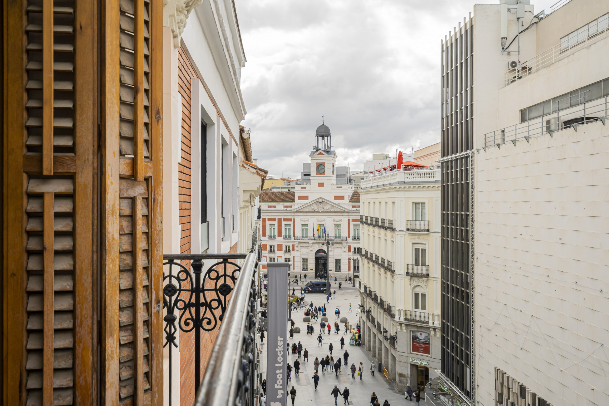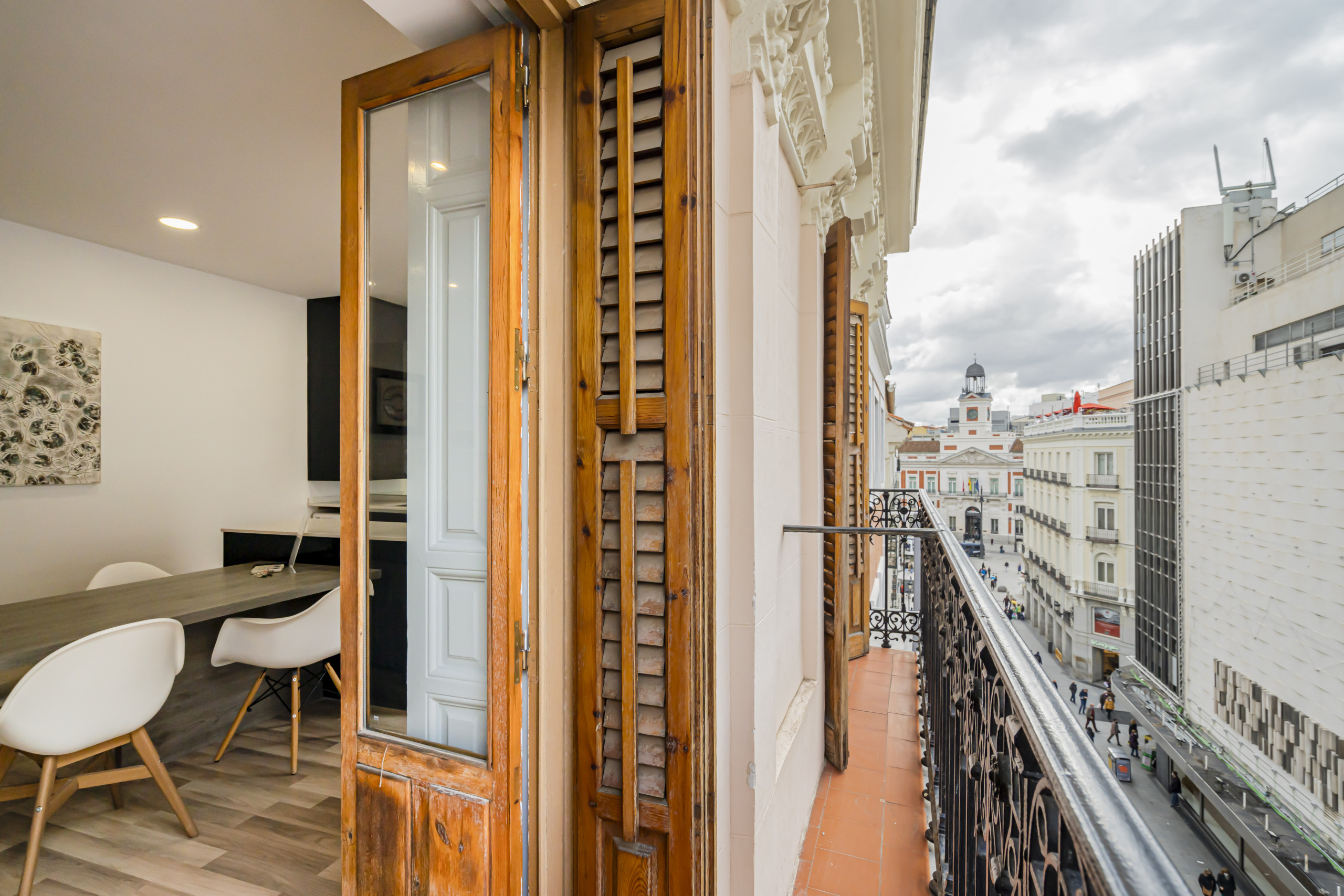 El inmueble está situado a escasos metros de la puerta más famosa de la capital española, en cuanto sales del edificio, se divisa el mítico reloj de la Puerta del Sol.